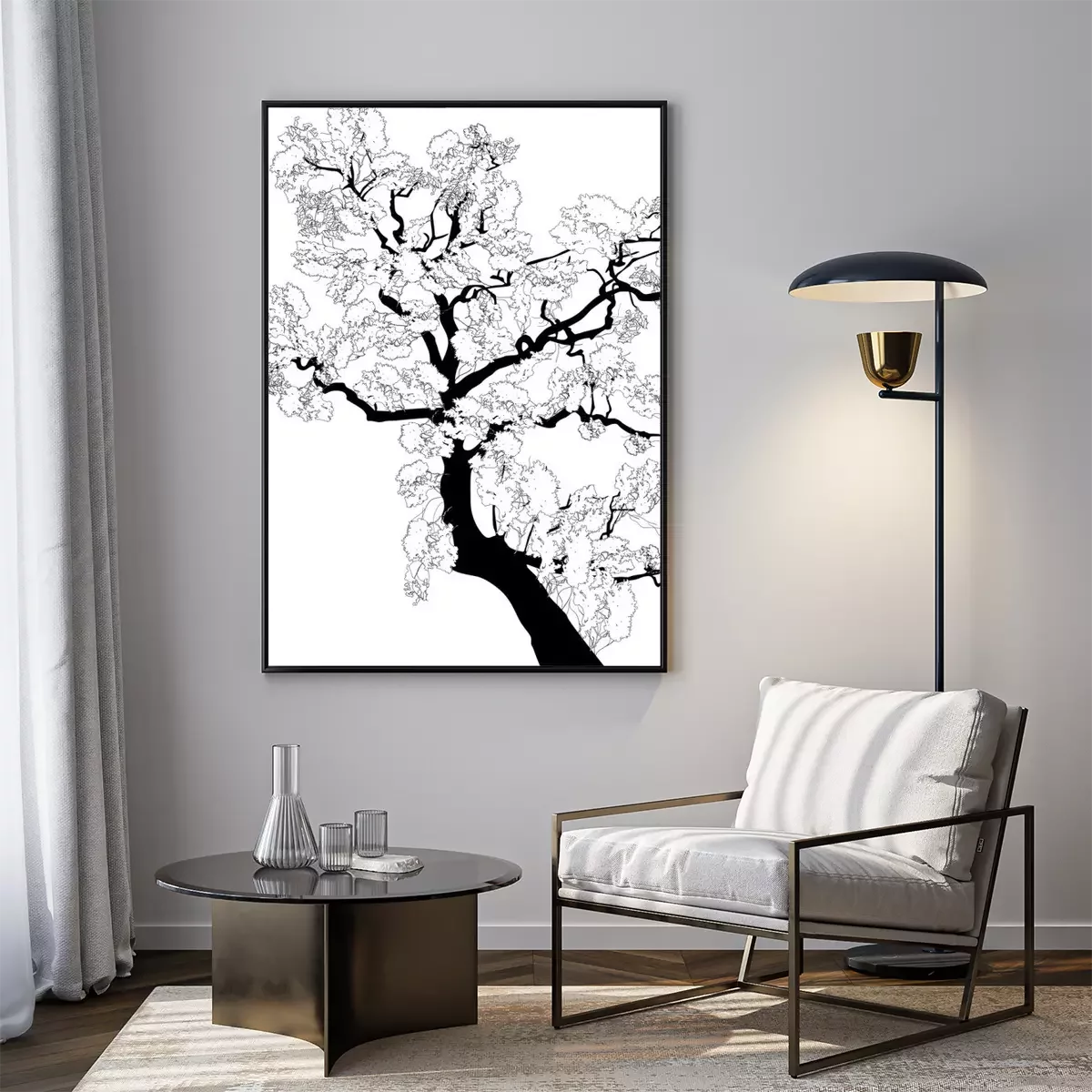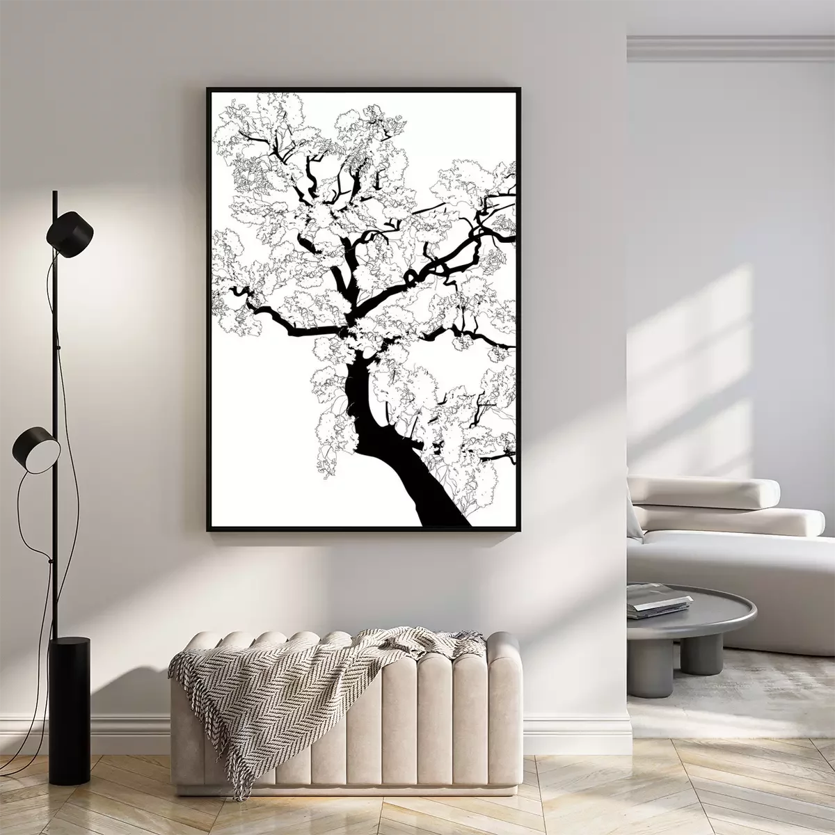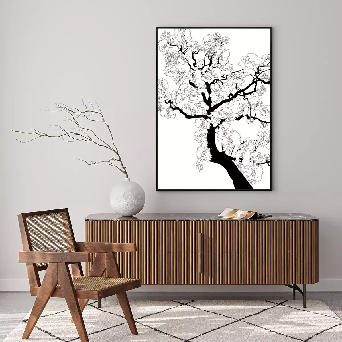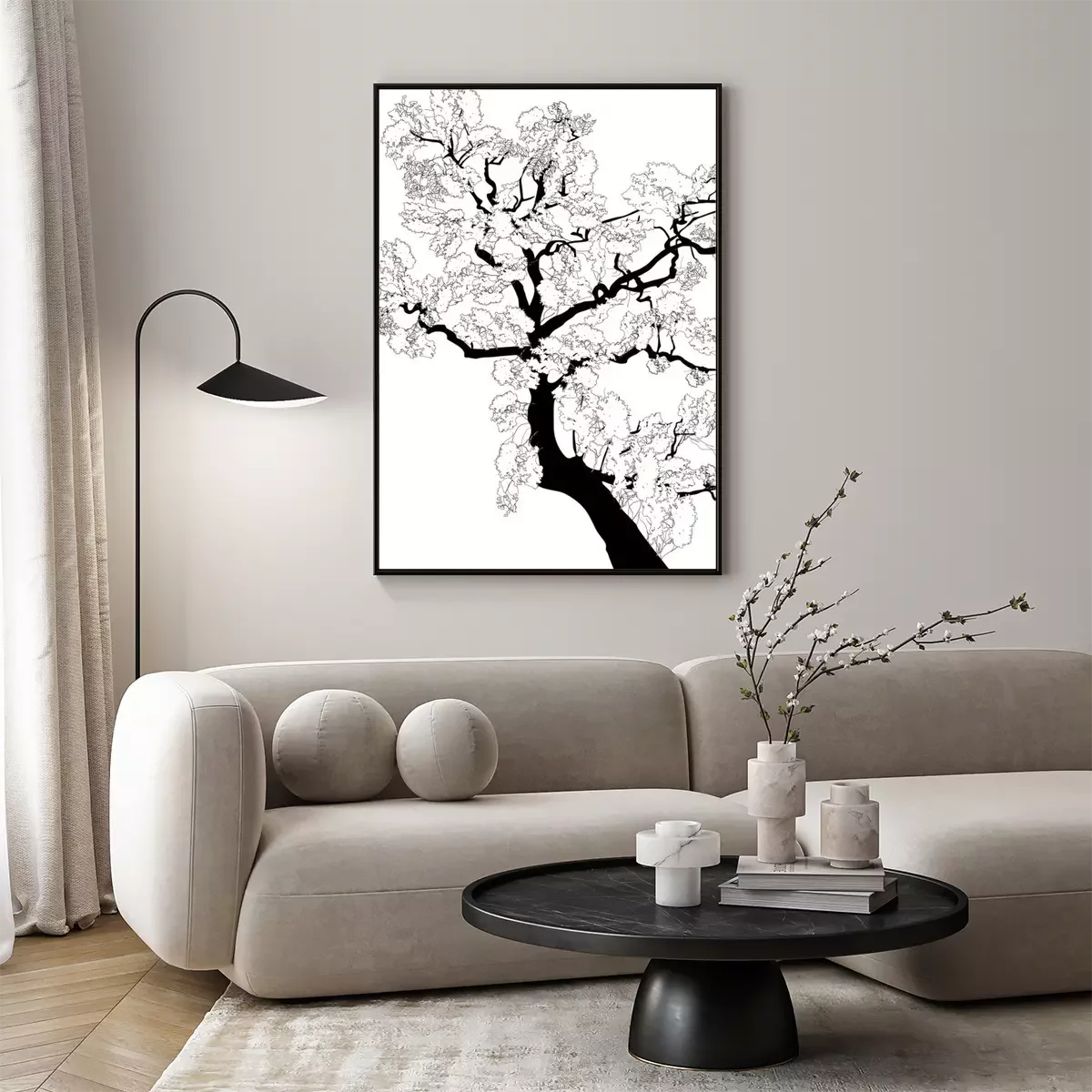 Poster: Schwarz-weiße Grafik mit Ast eines Baumes