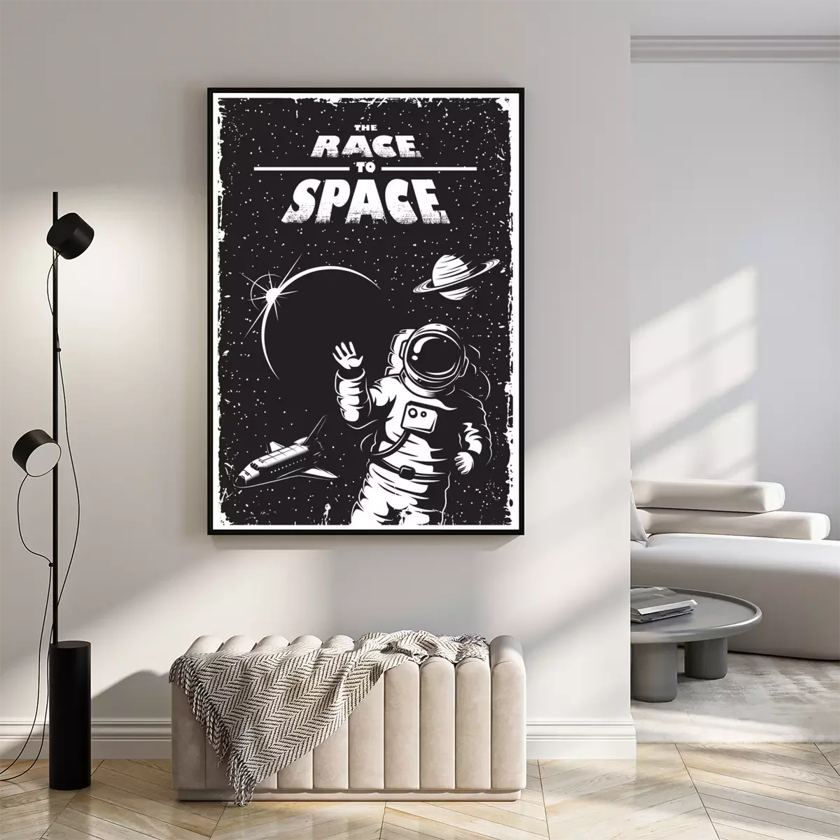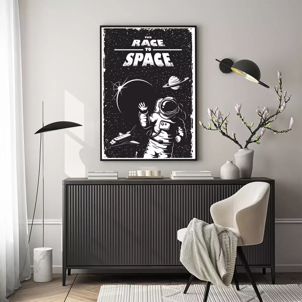 Poster: Schwarz-weiße kosmische Illustration Vintage