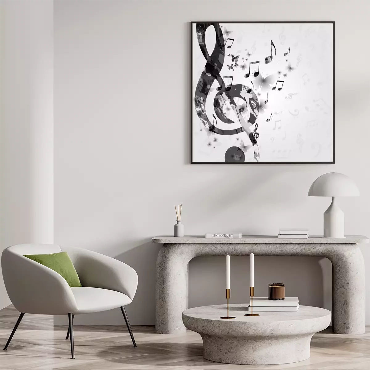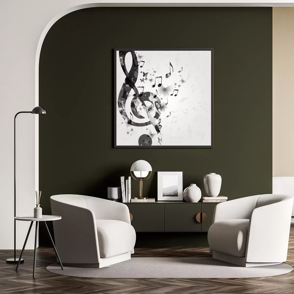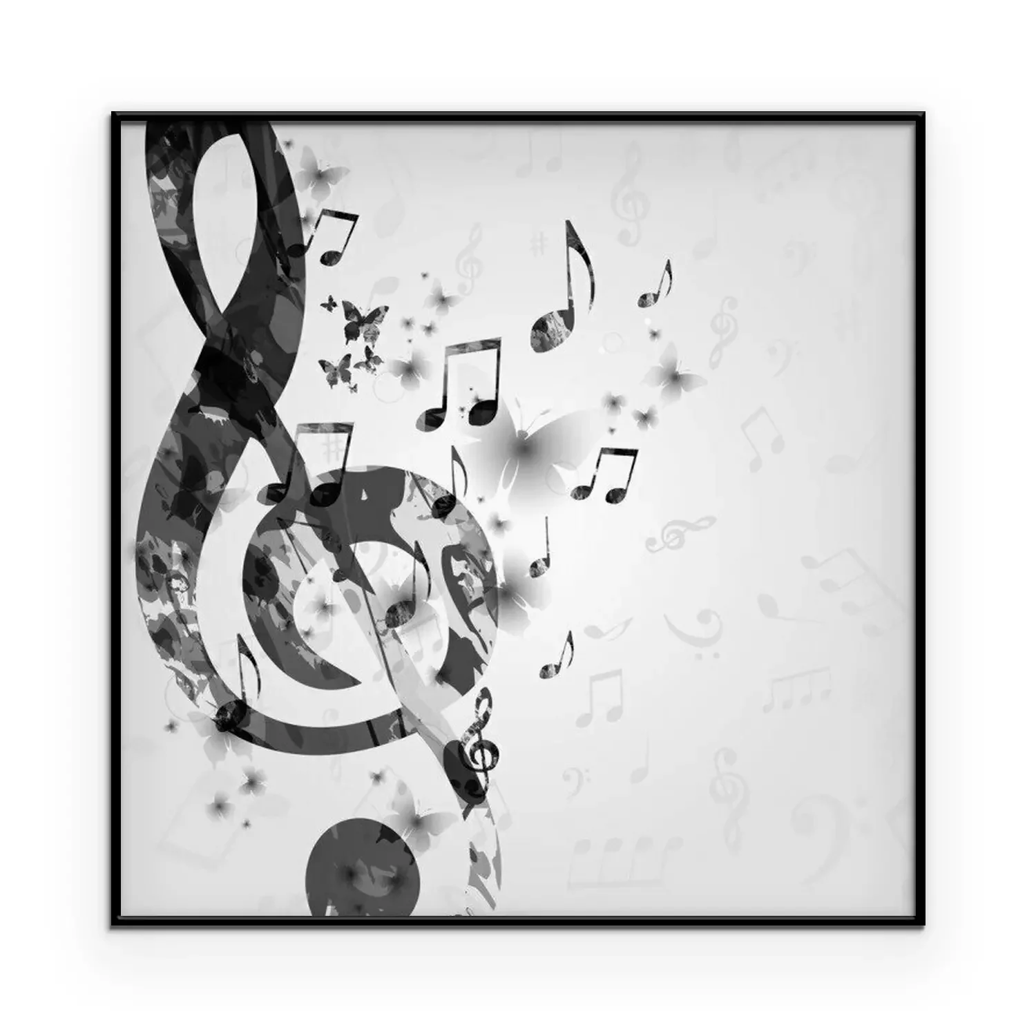 Poster: Schwarz-weiße Noten und Schmetterlinge