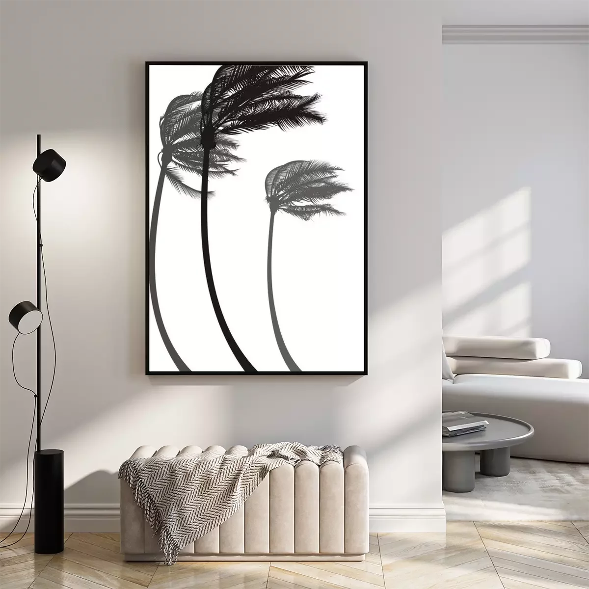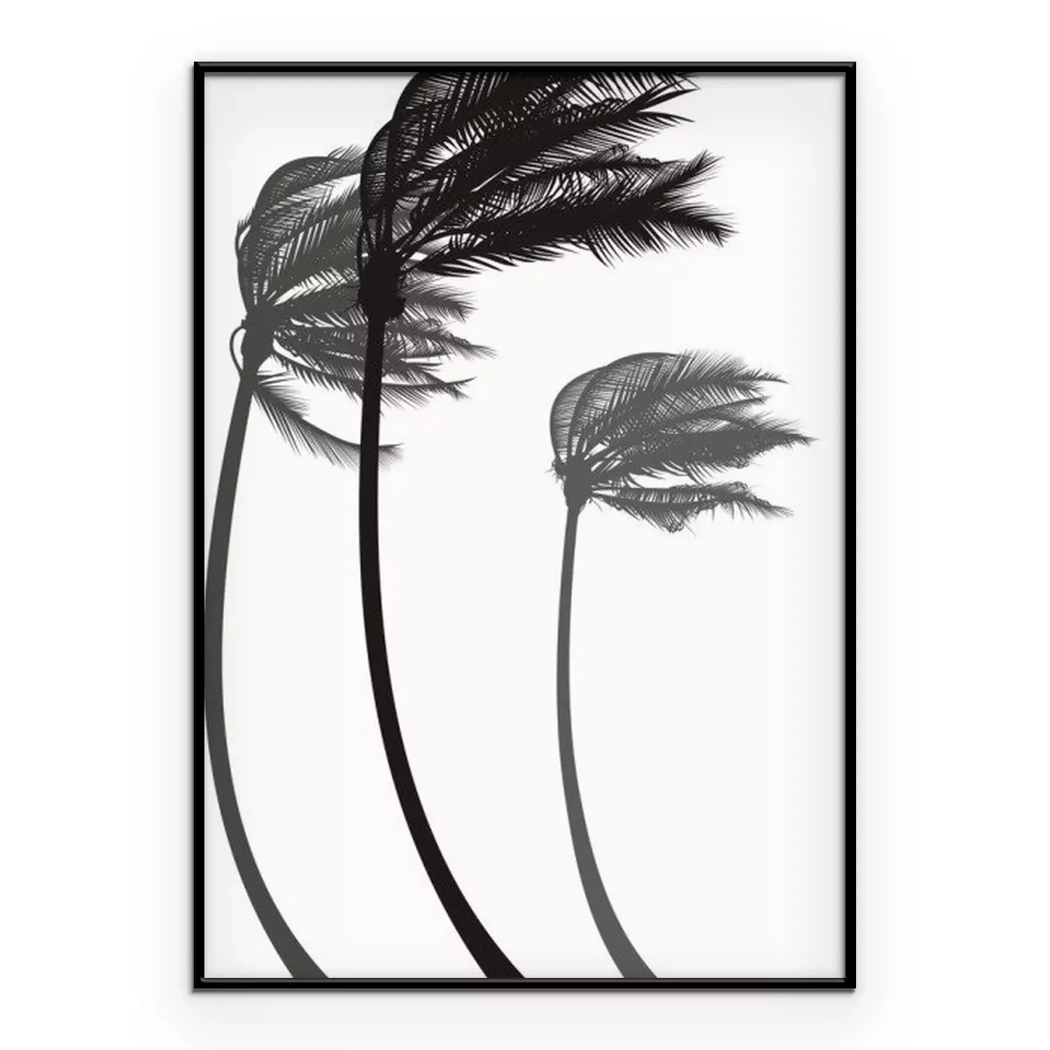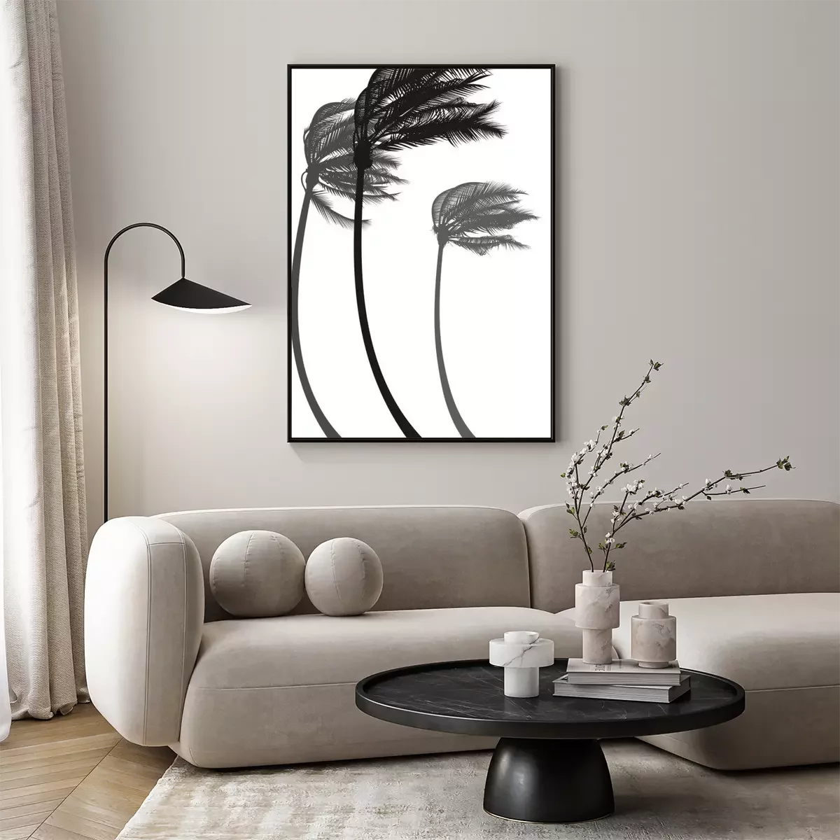 Poster: Schwarz-weiße Palmen während eines Sturms
