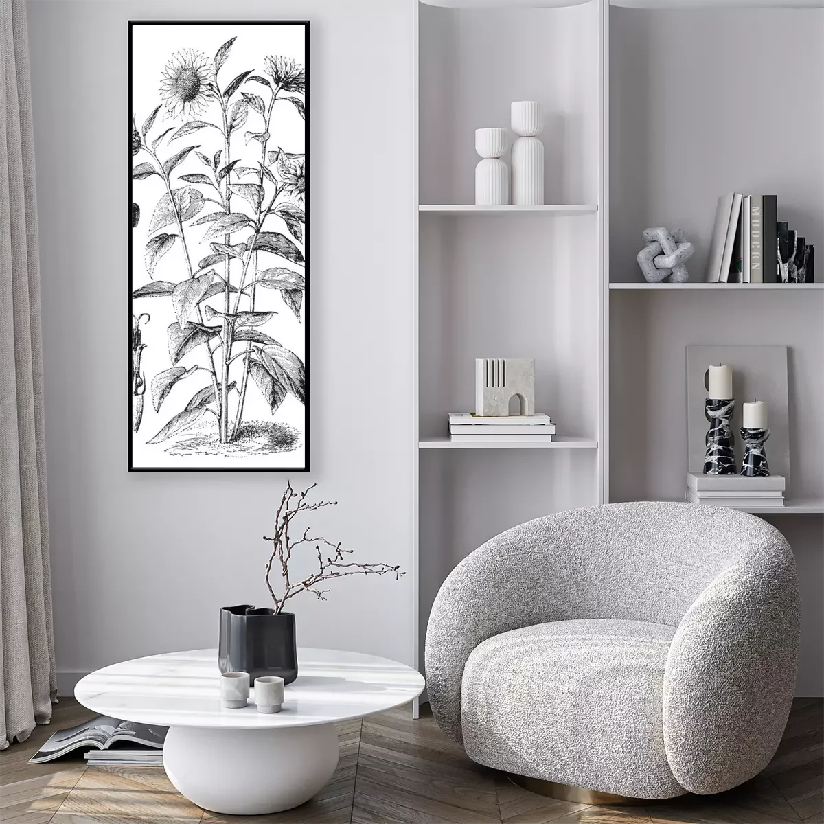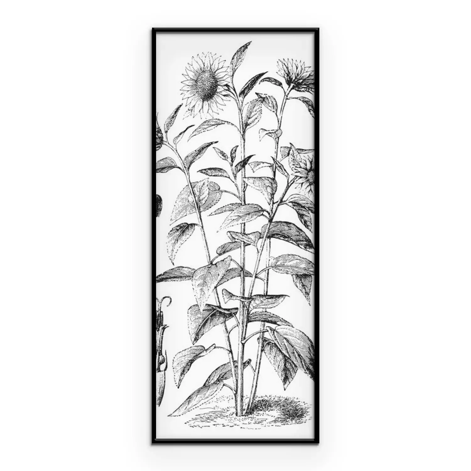 Poster: Schwarz-weiße Sonnenblumen wachsen aus dem Boden