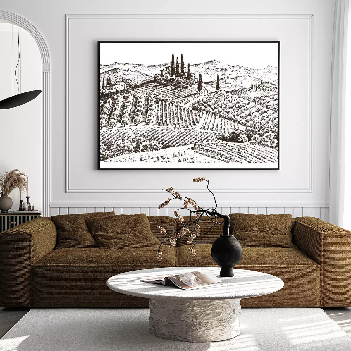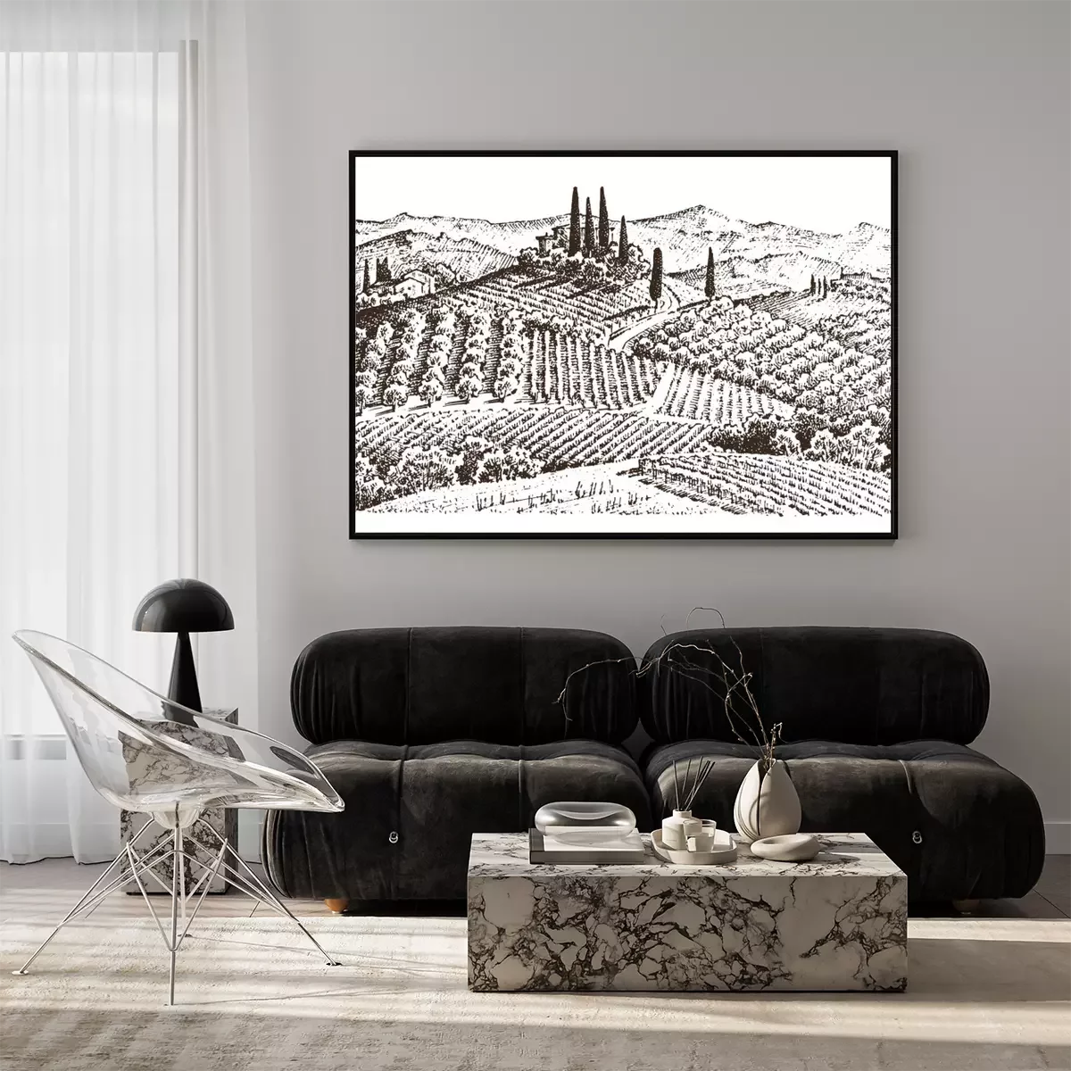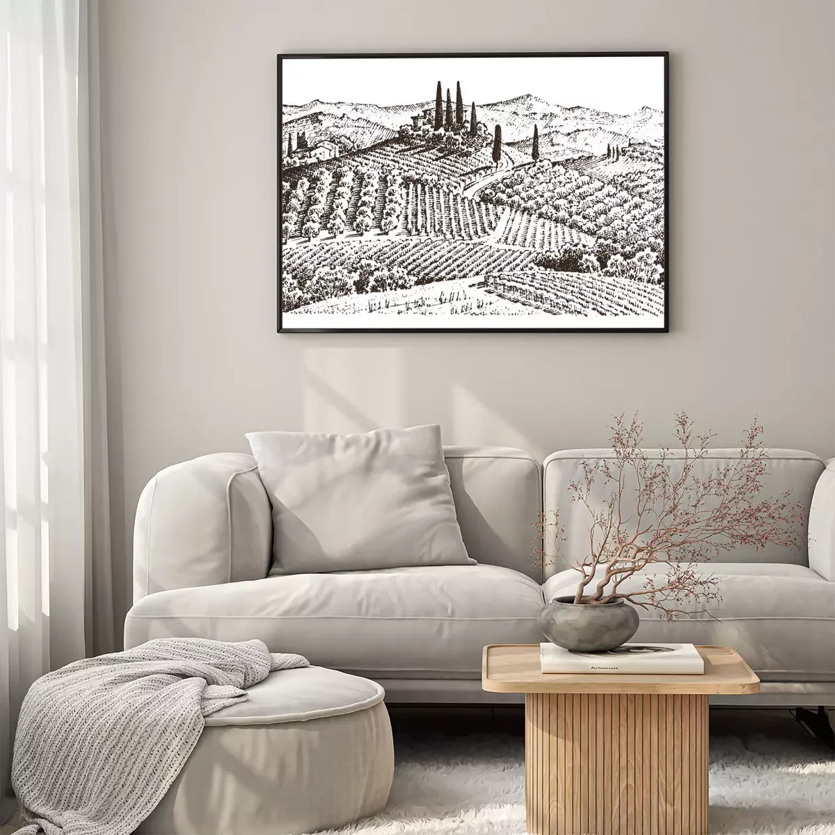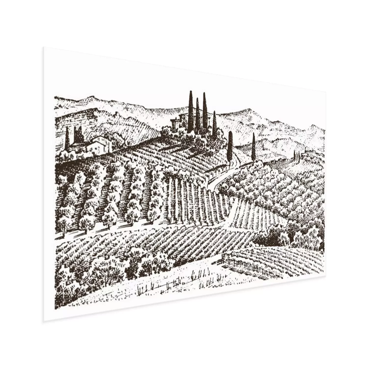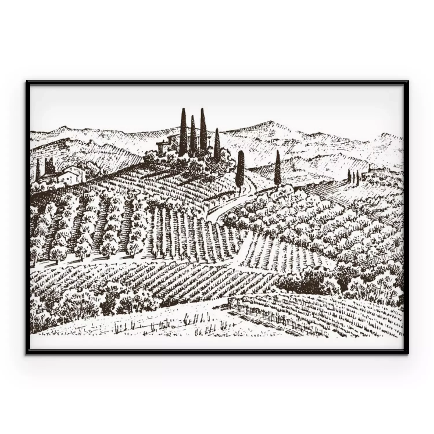 Poster: Schwarz-weiße Zeichnung der Toskana