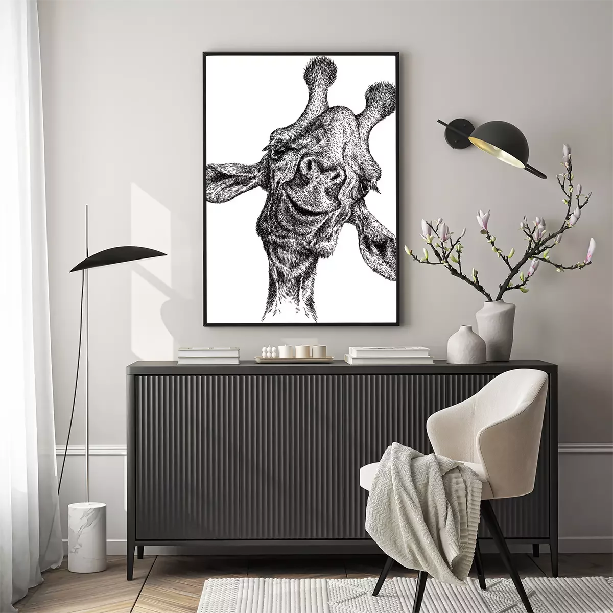 Poster Schwarz-weißer Giraffenkopf