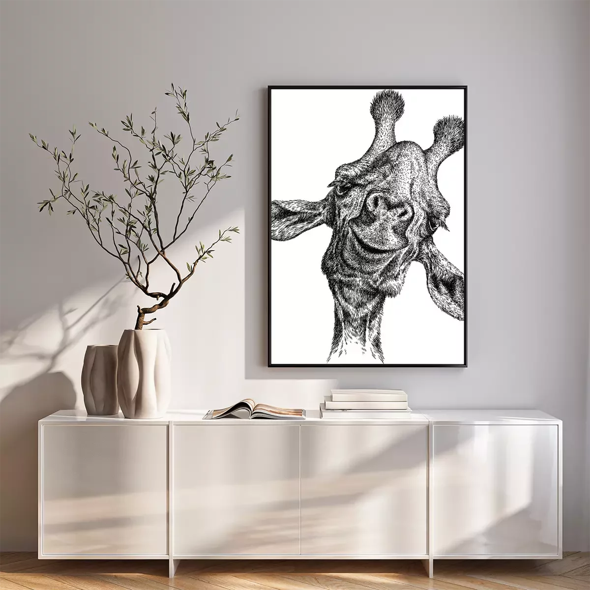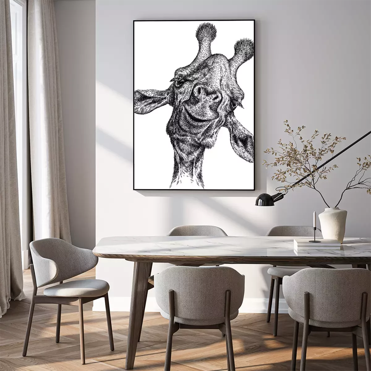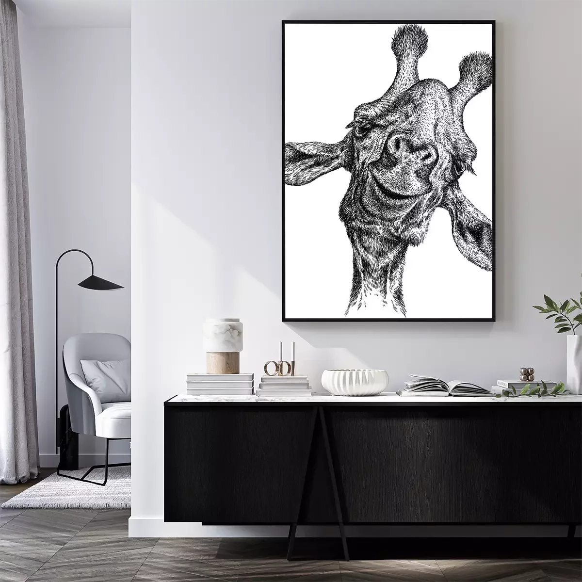 Poster: Schwarz-weißer Giraffenkopf
