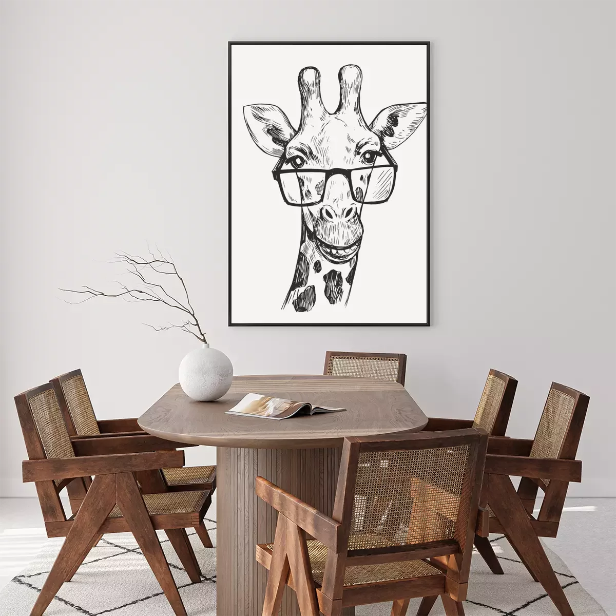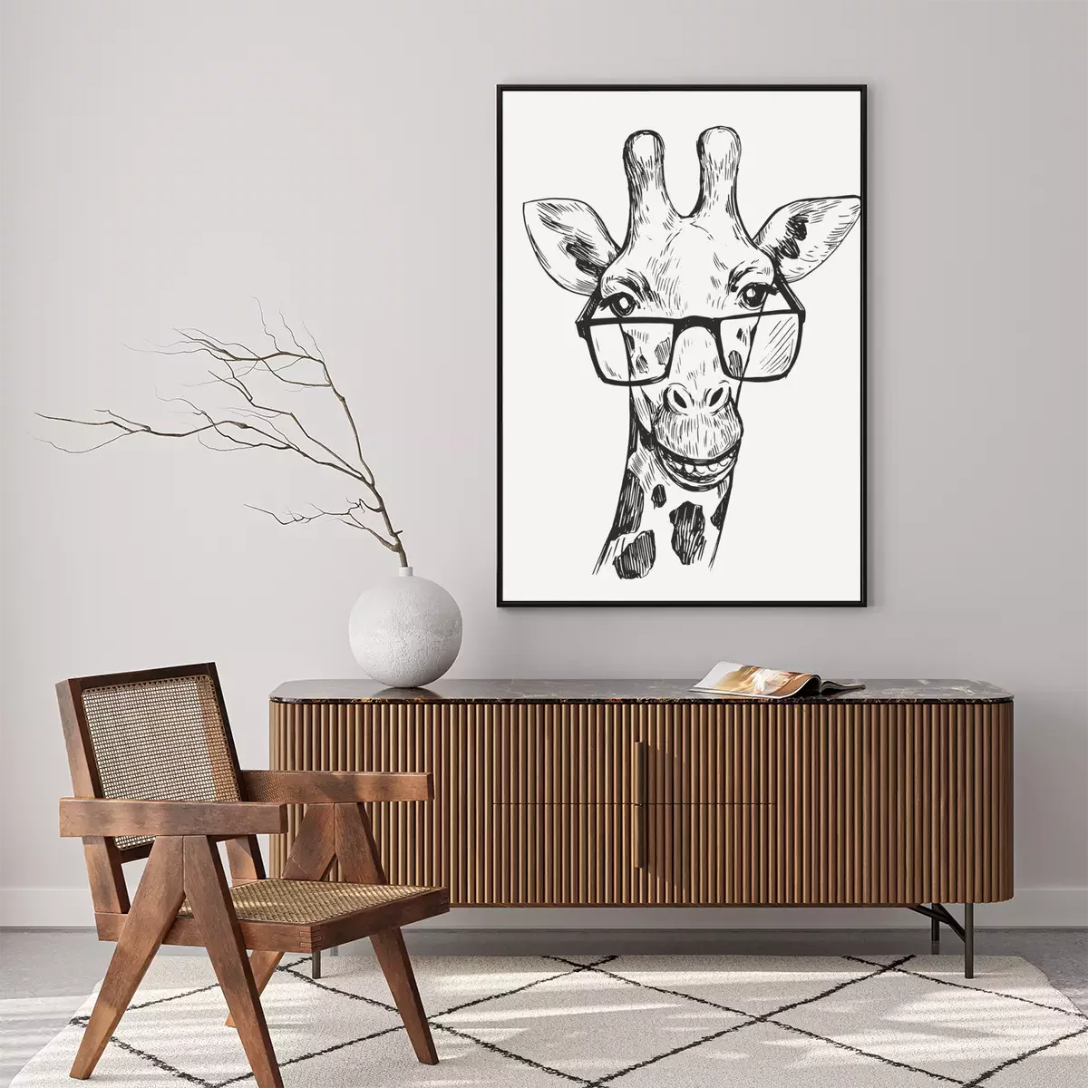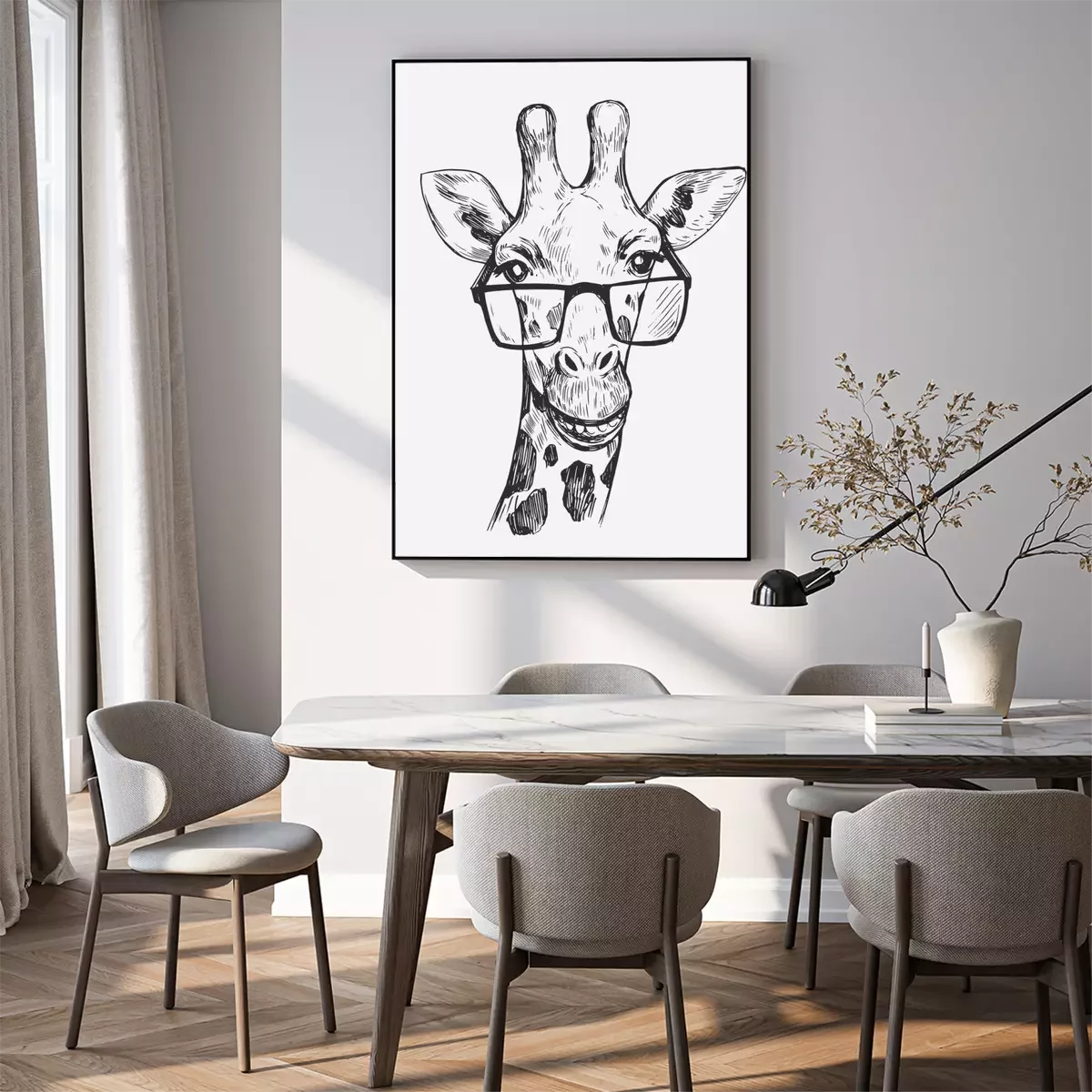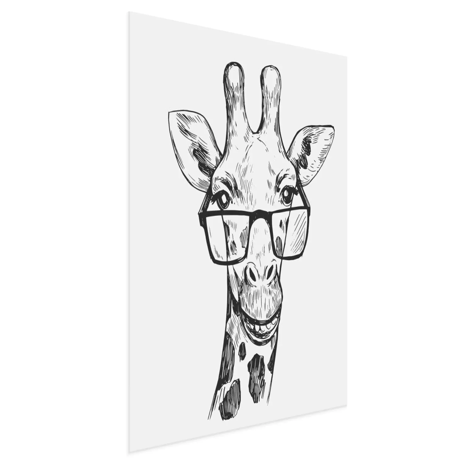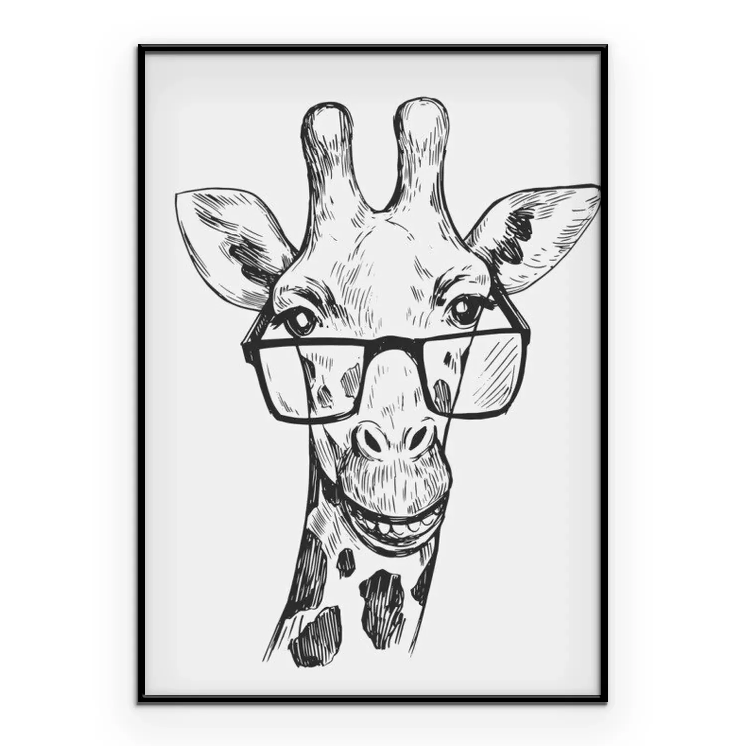 Poster: Schwarz-weißer Giraffenkopf mit Brille