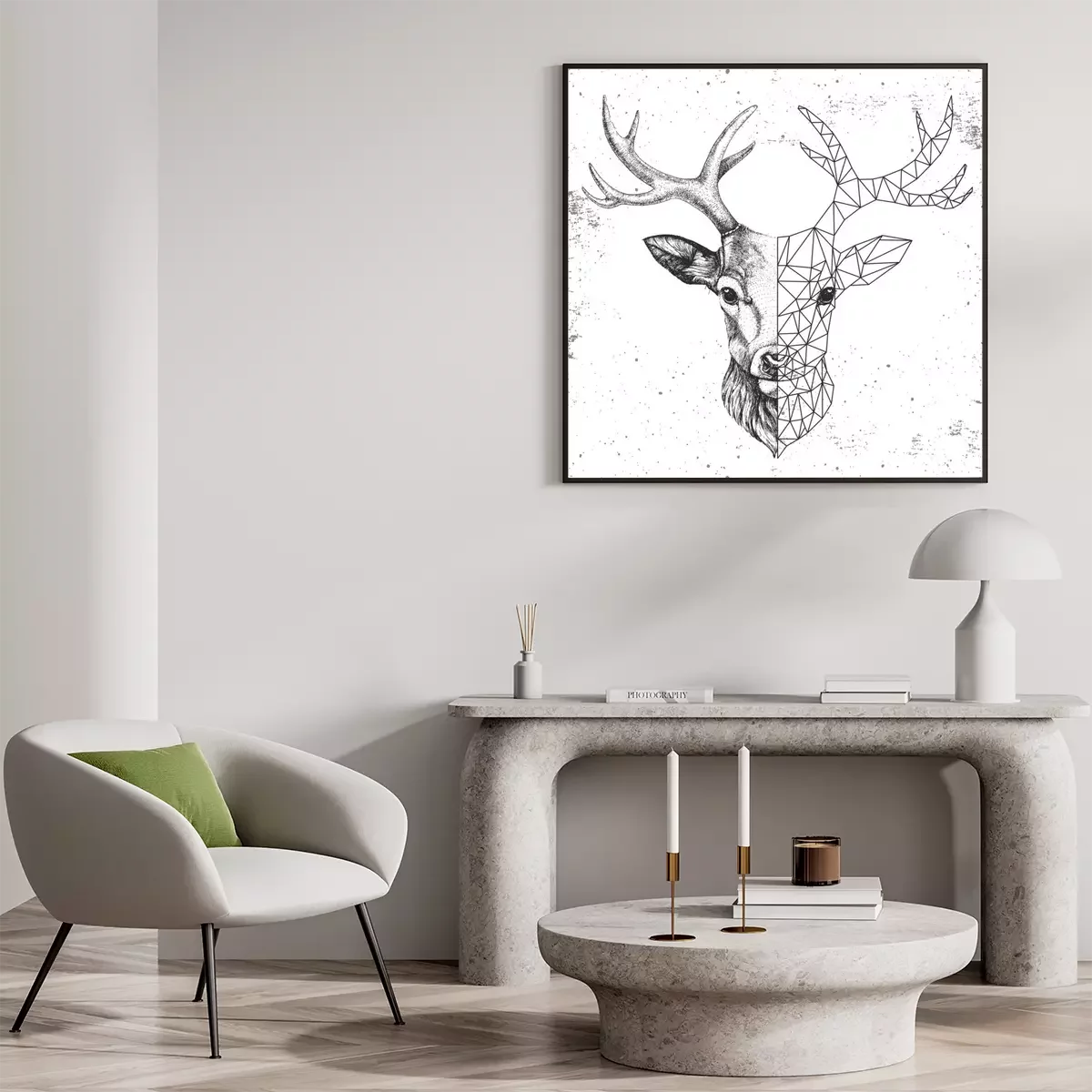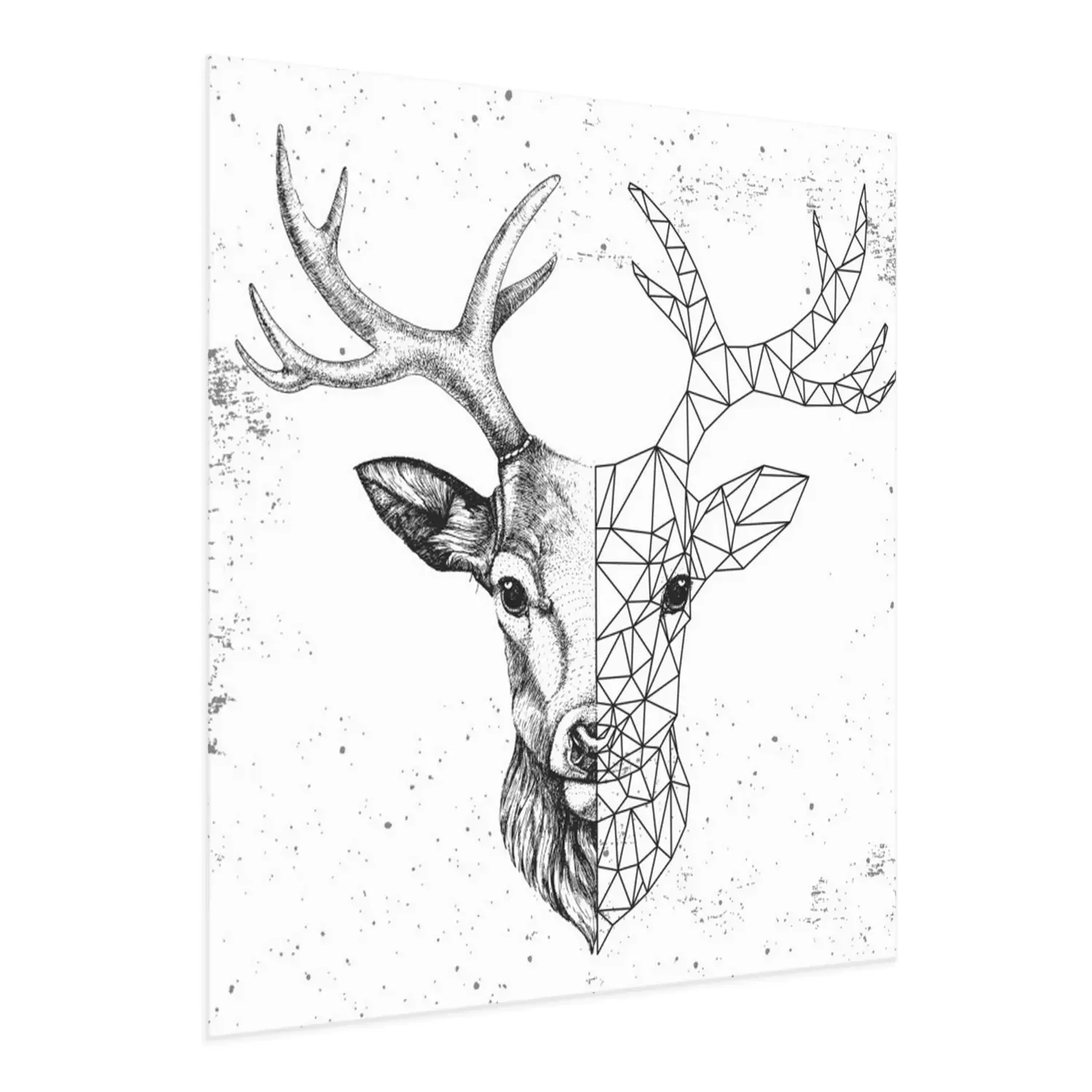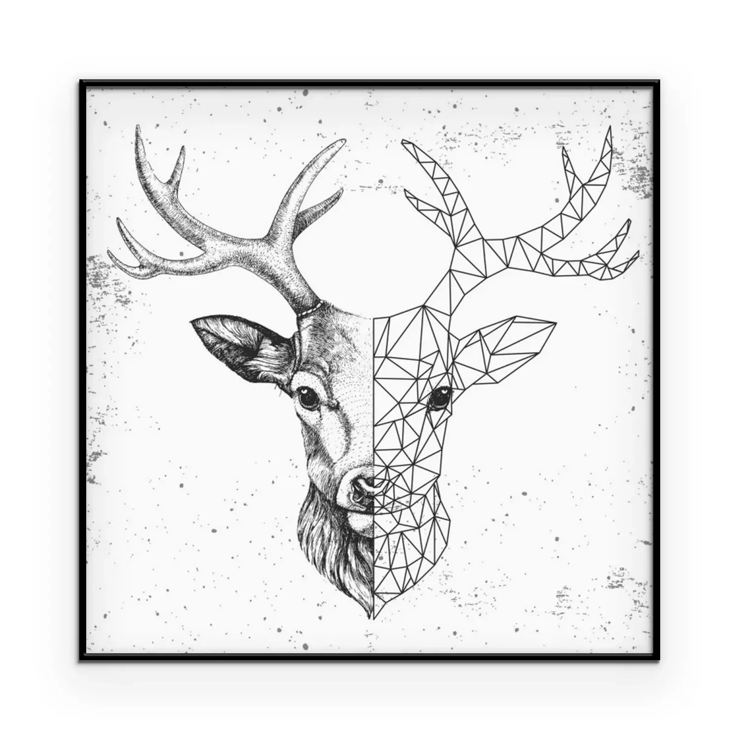 Hipster animal deer with headphones. Hand drawing Muzzle of animal deer