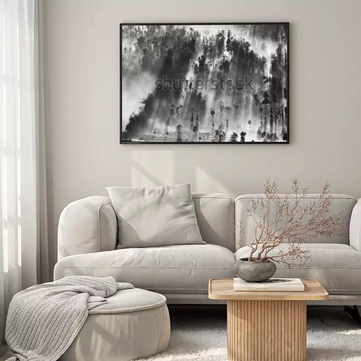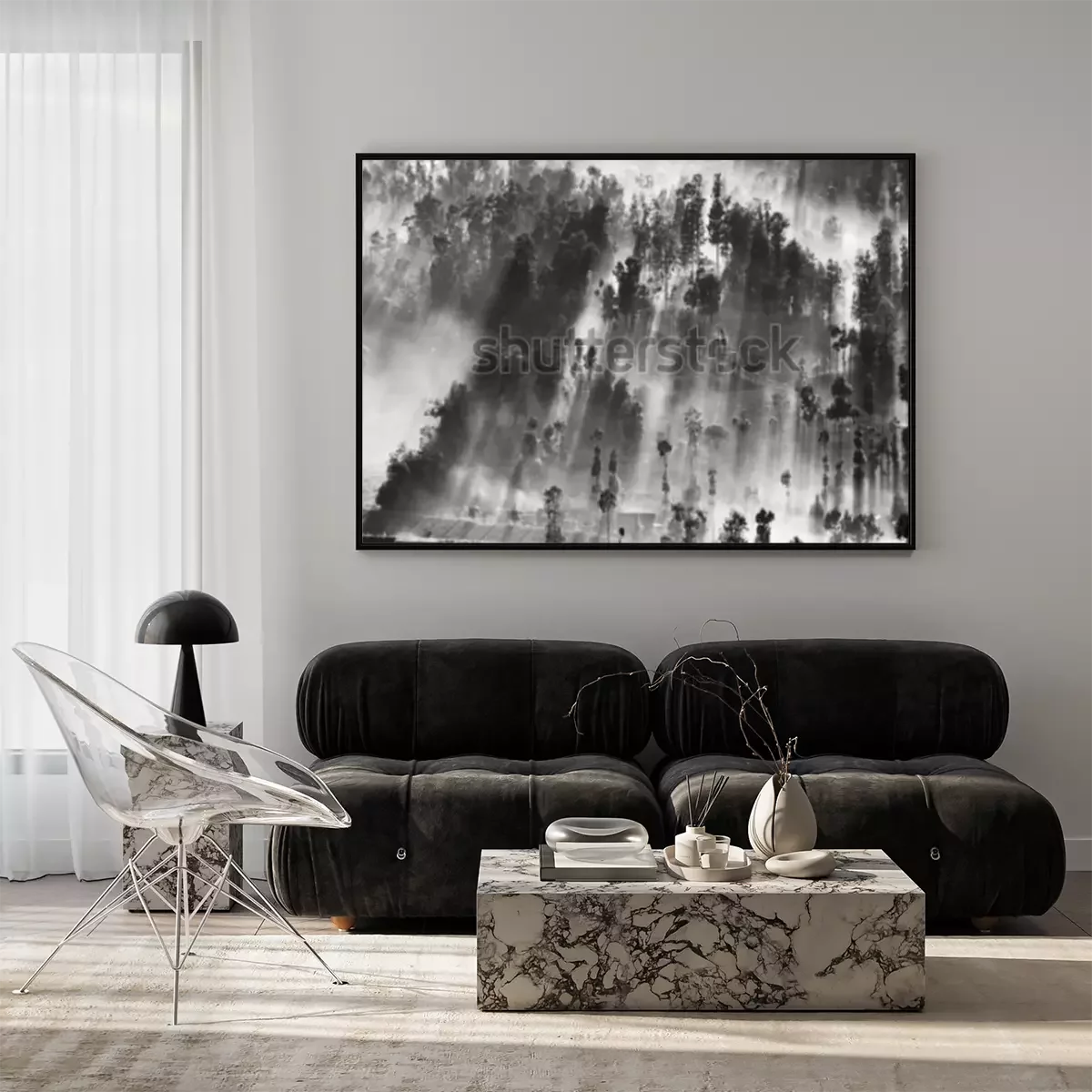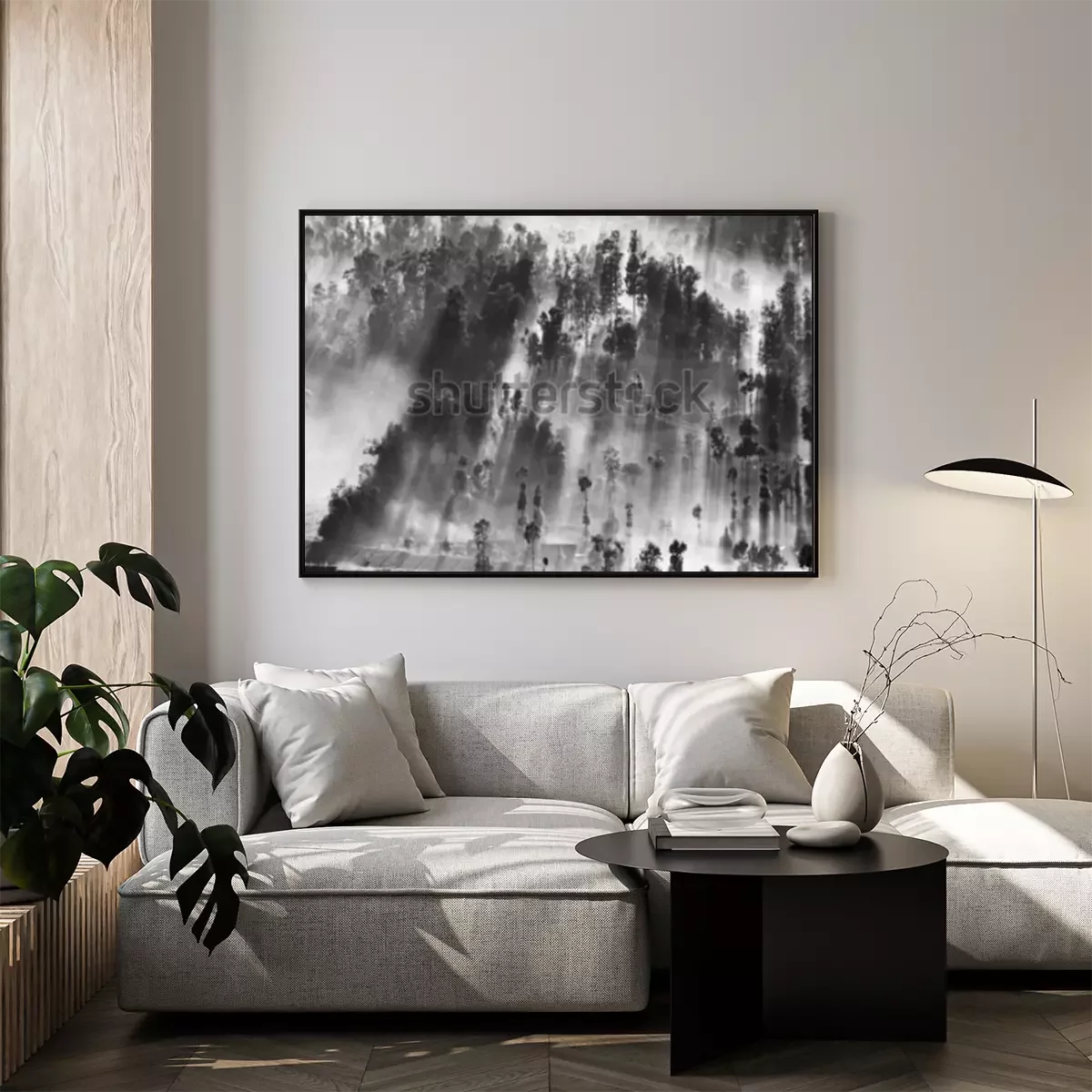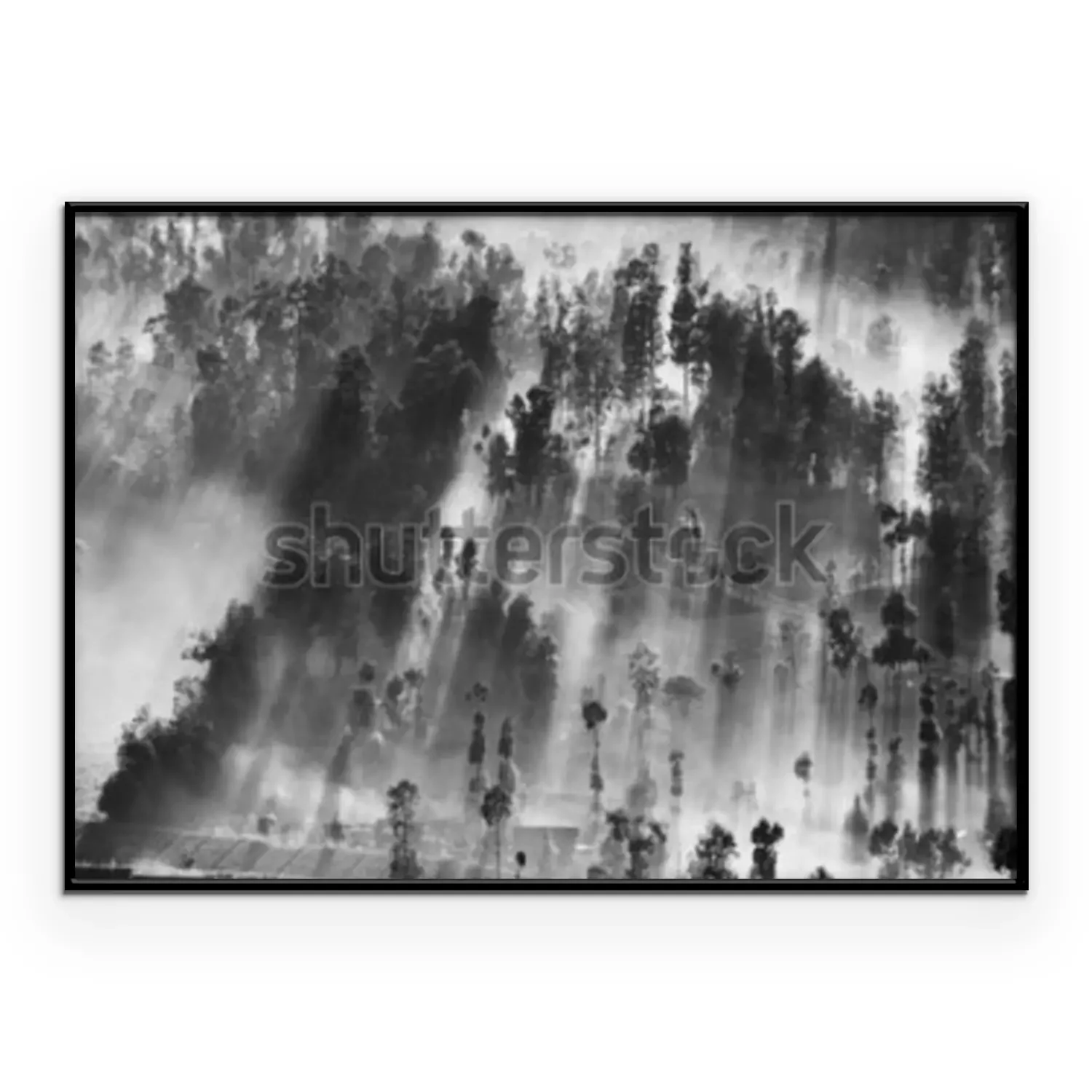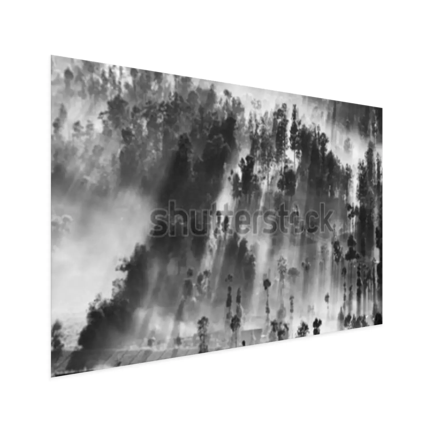 Poster: Schwarz-weißer Wald bei Sonnenaufgang