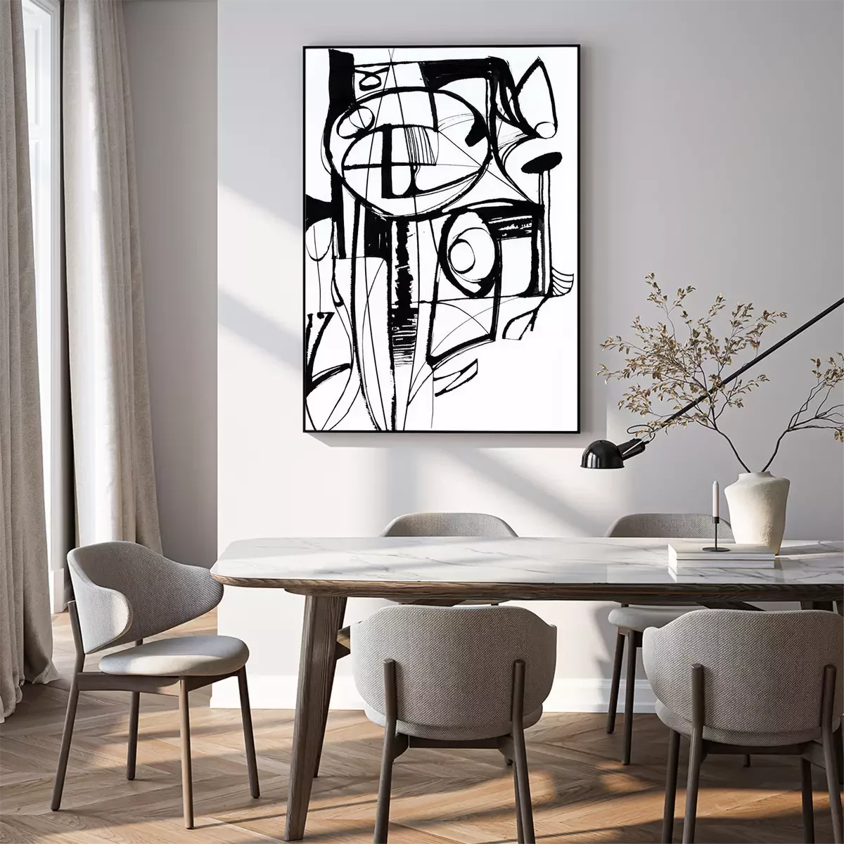 Poster Schwarz-weißes abstraktes Motiv, bestehend aus Buchstaben
