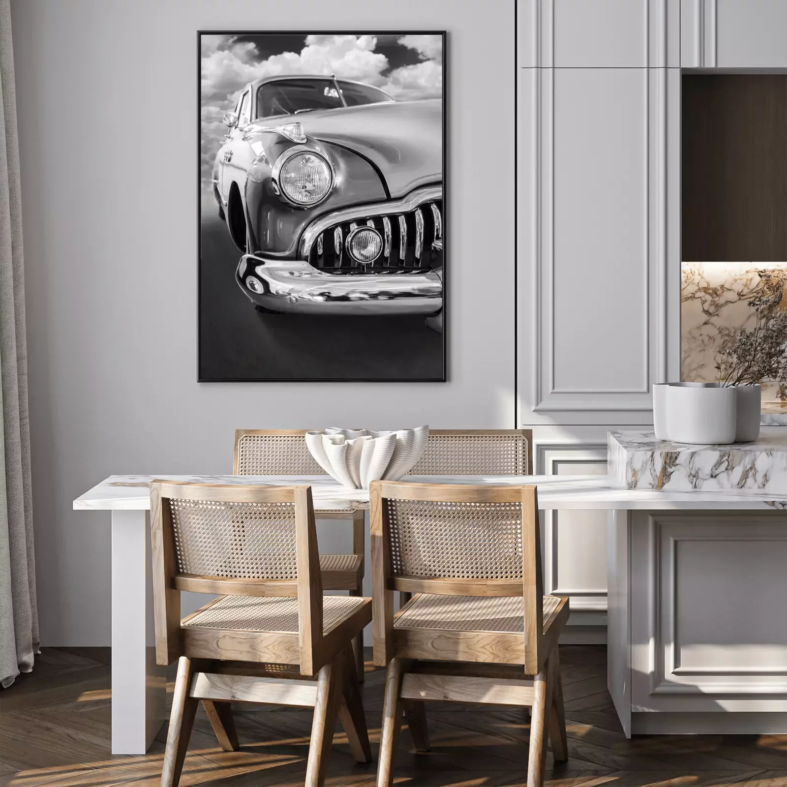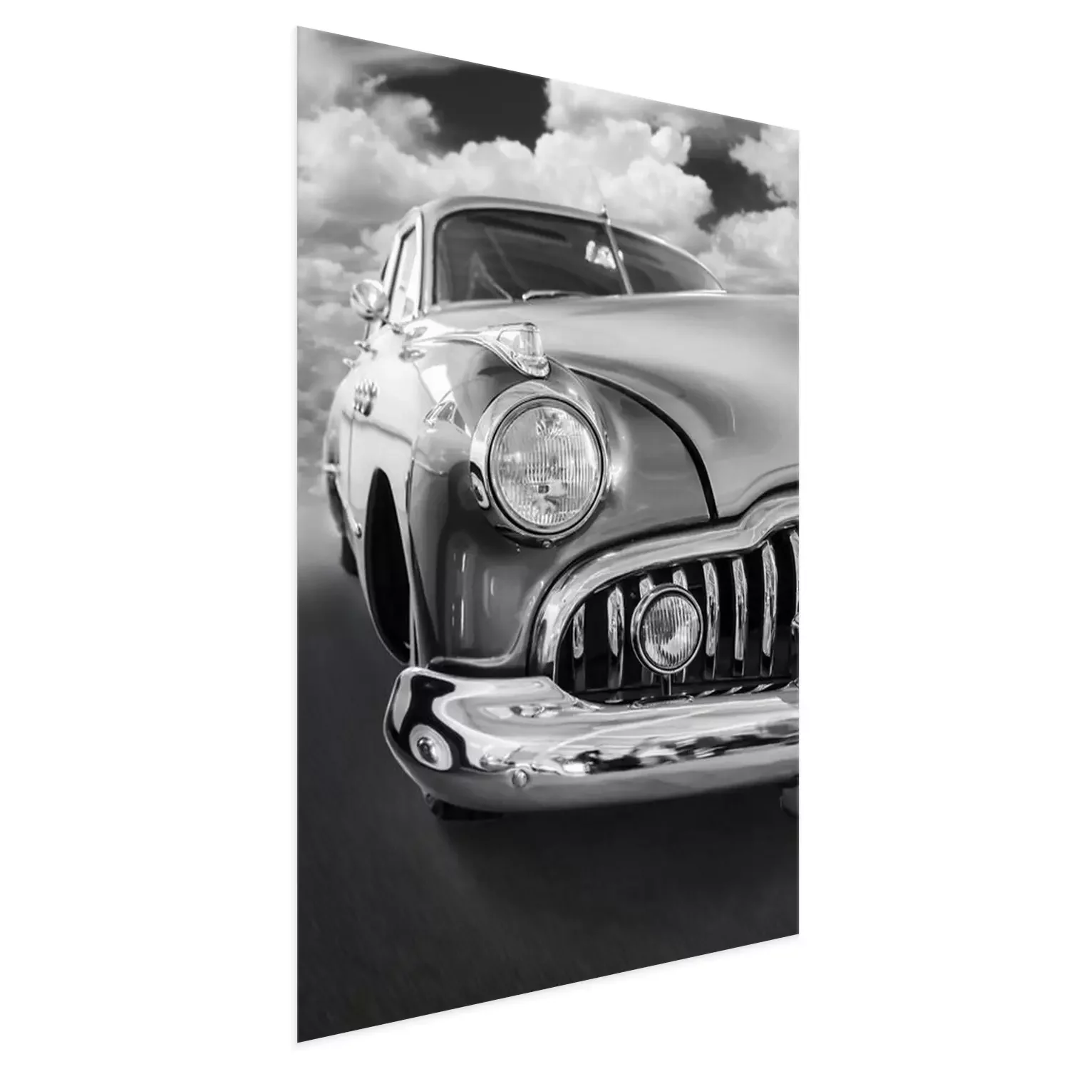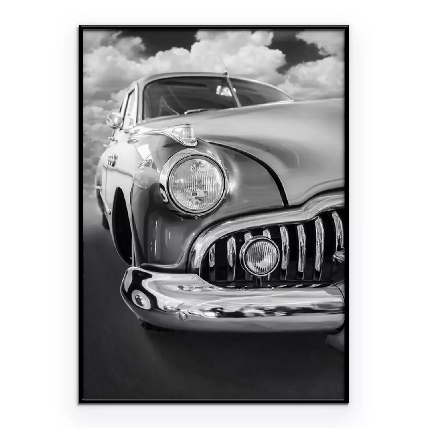 Poster: Schwarz-weißes Auto im Vintage-Stil