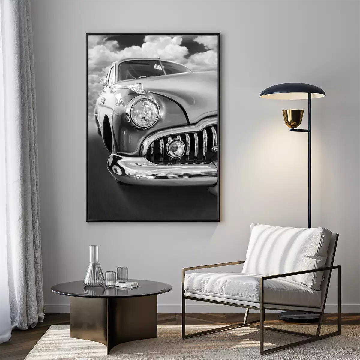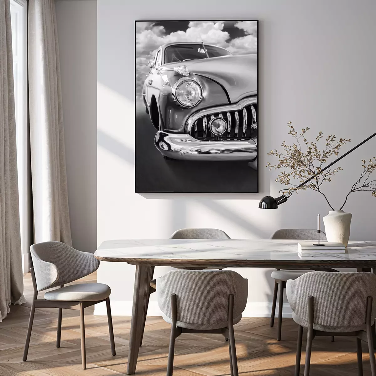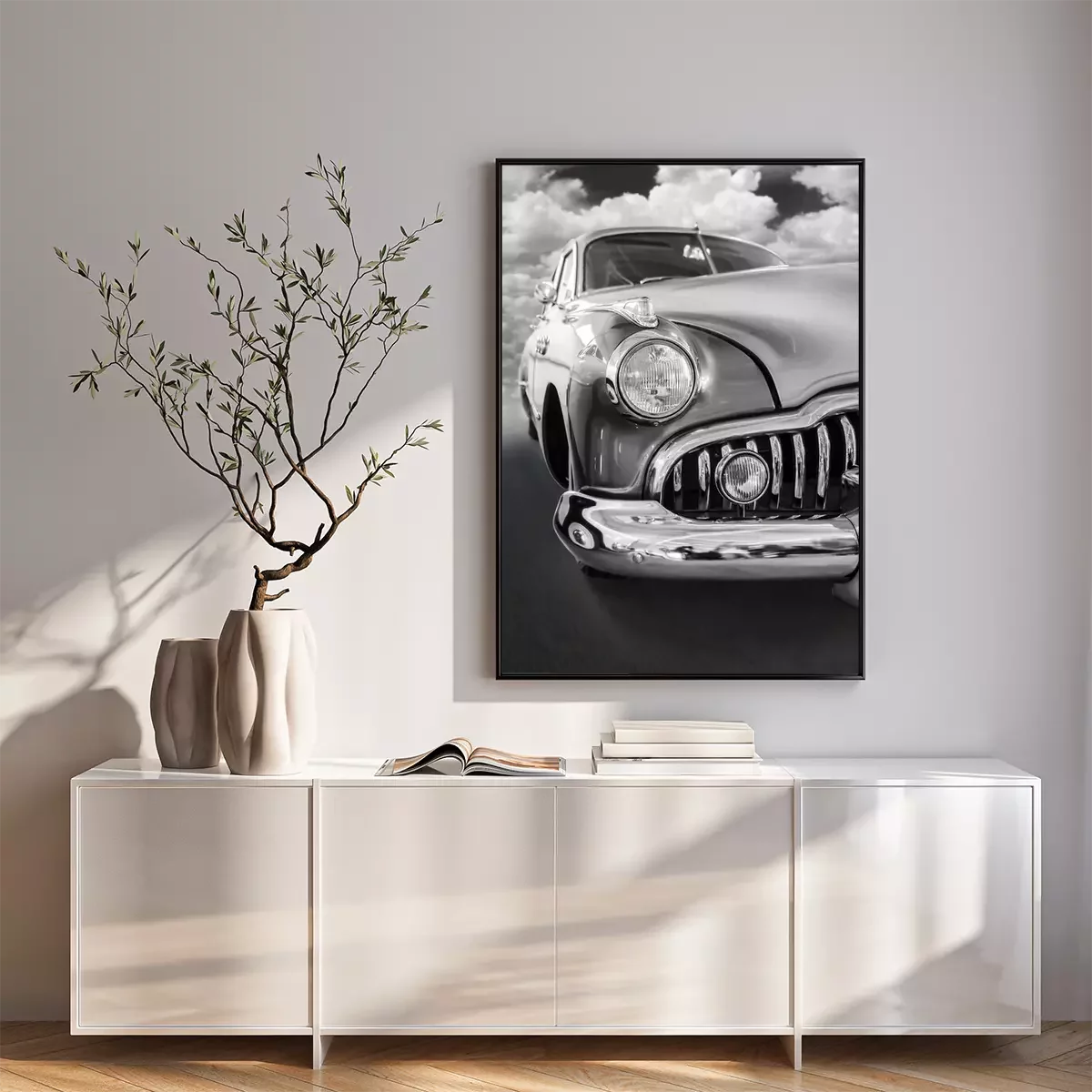Poster: Schwarz-weißes Auto im Vintage-Stil