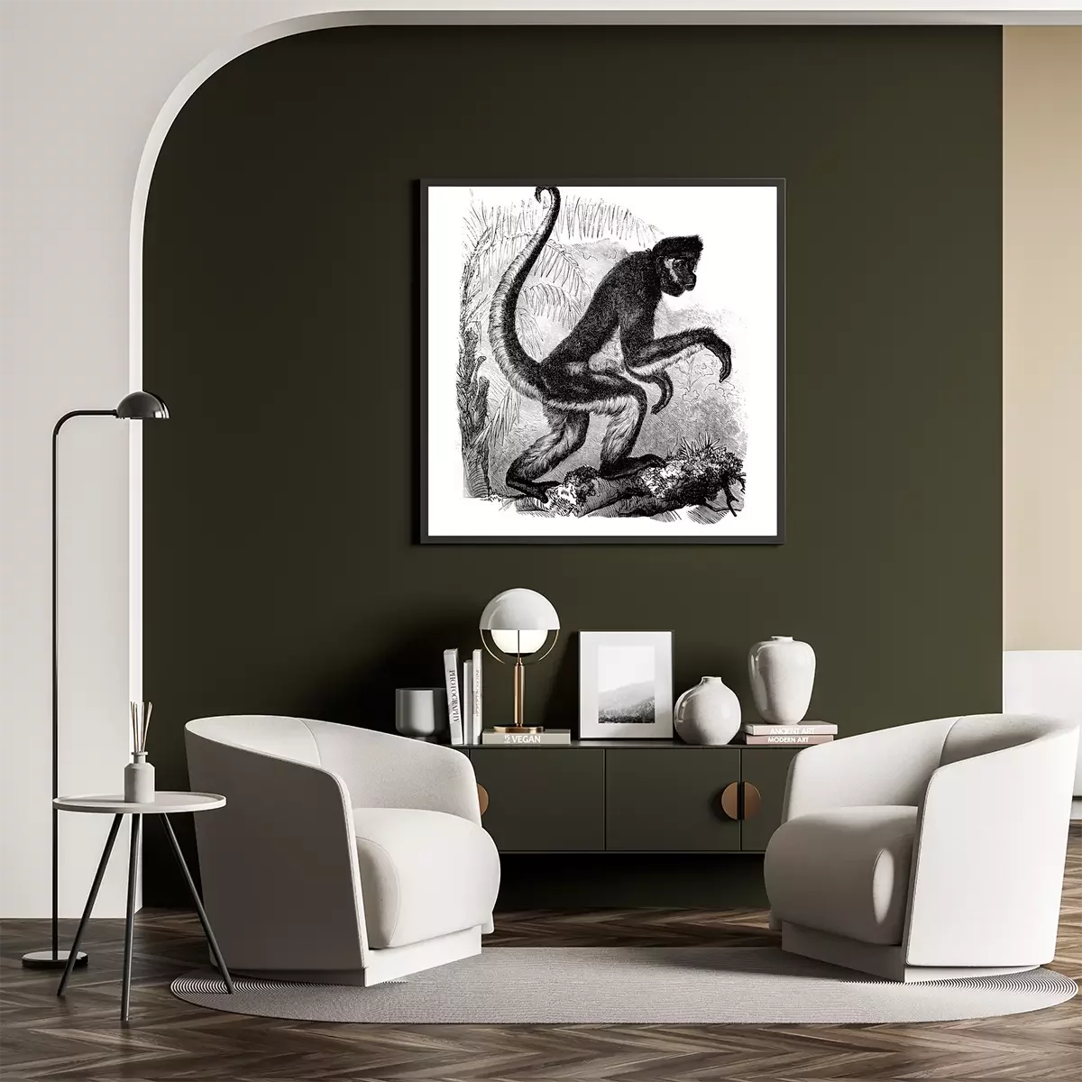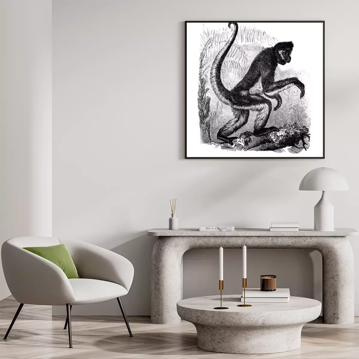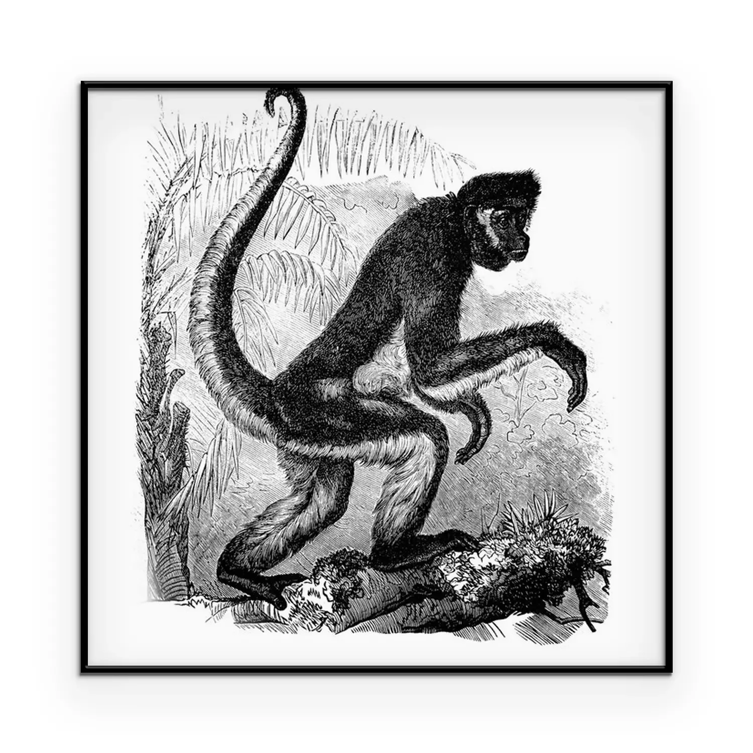 Poster: Schwarz-weißes Konzept eines Affen Klammeraffe im Dschungel