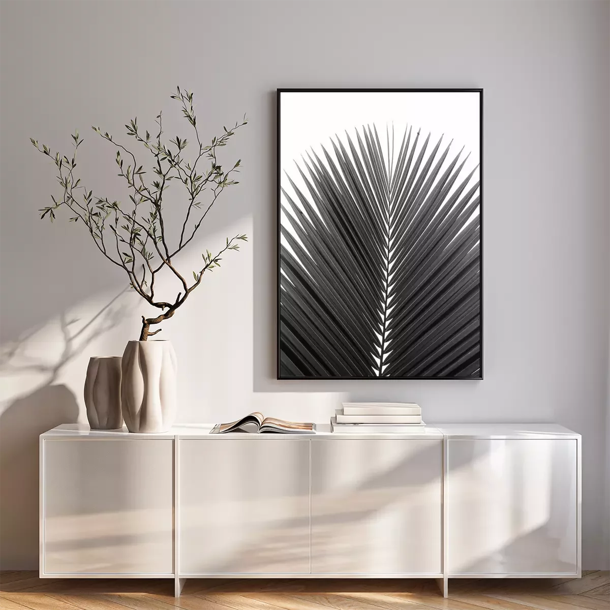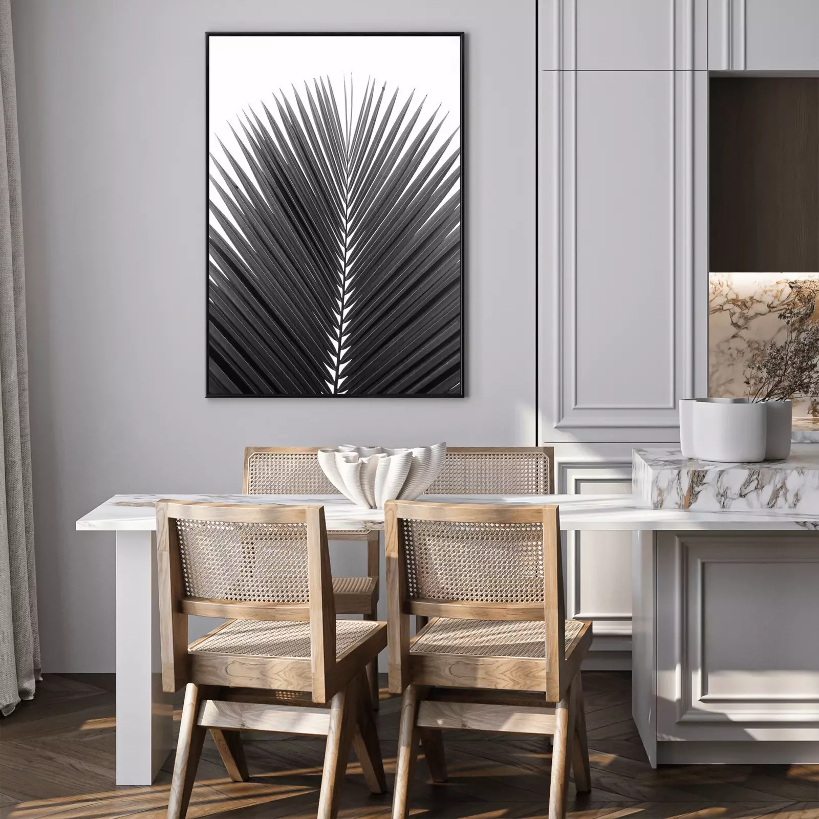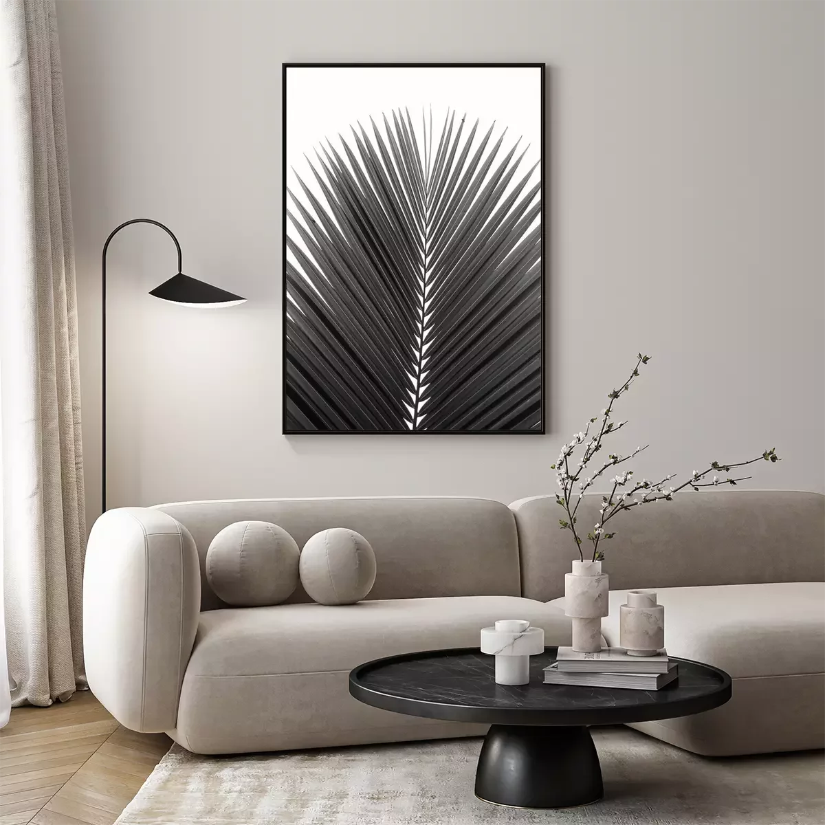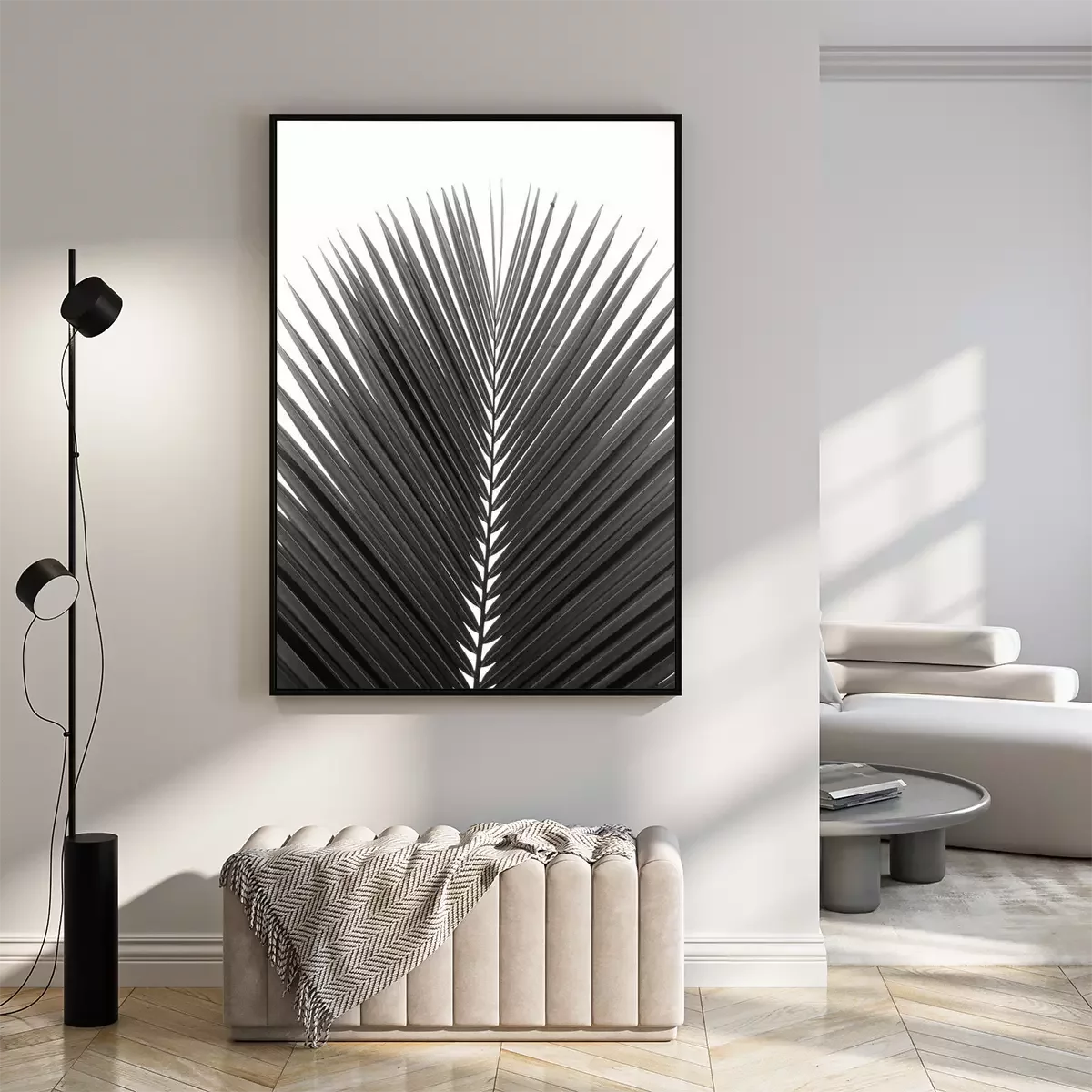 Poster: Schwarz-weißes Palmenblatt
