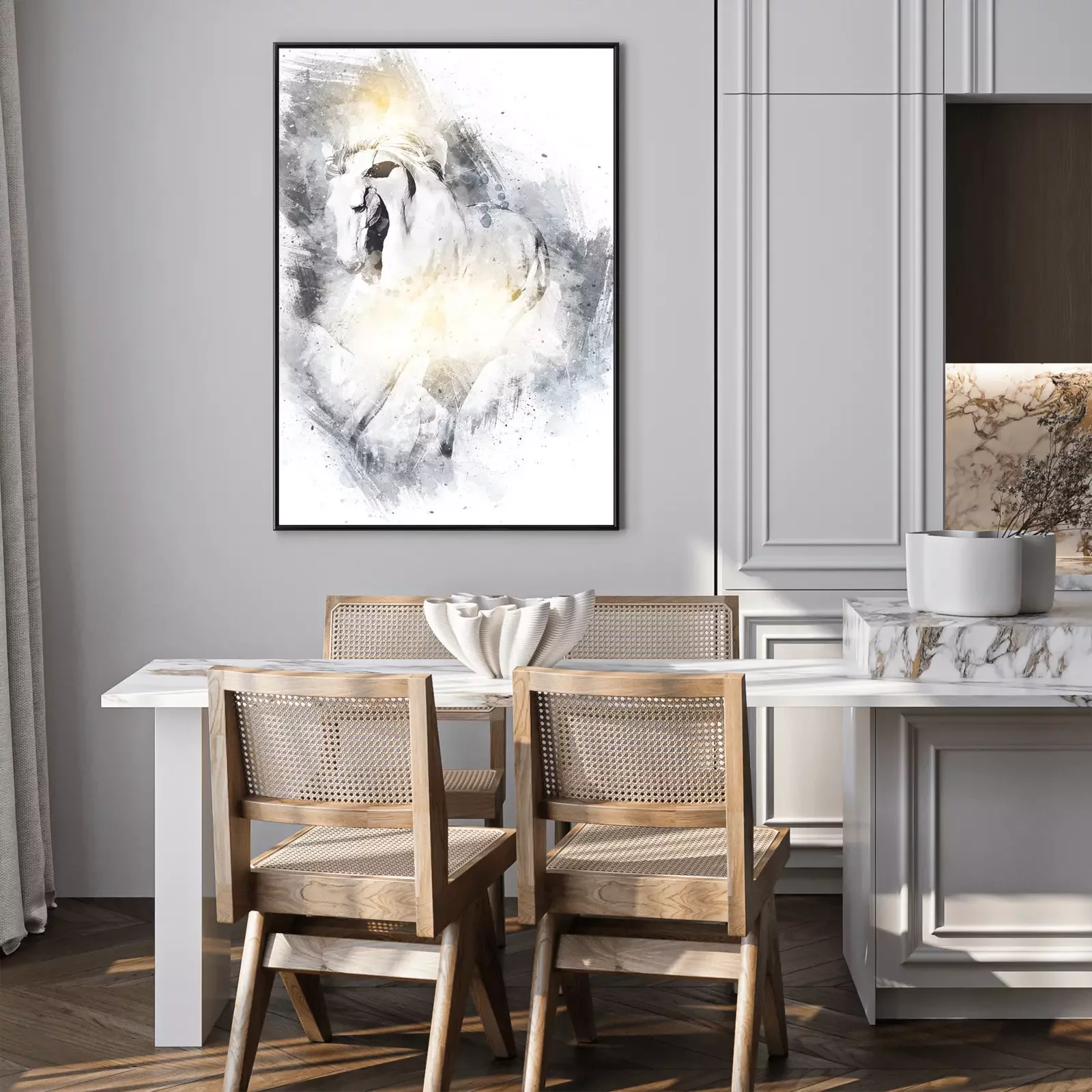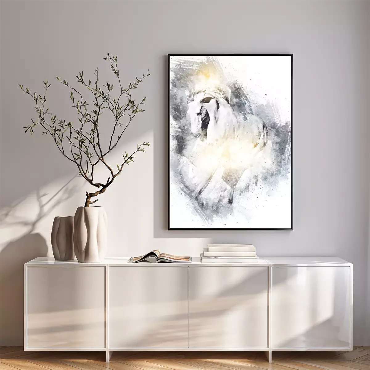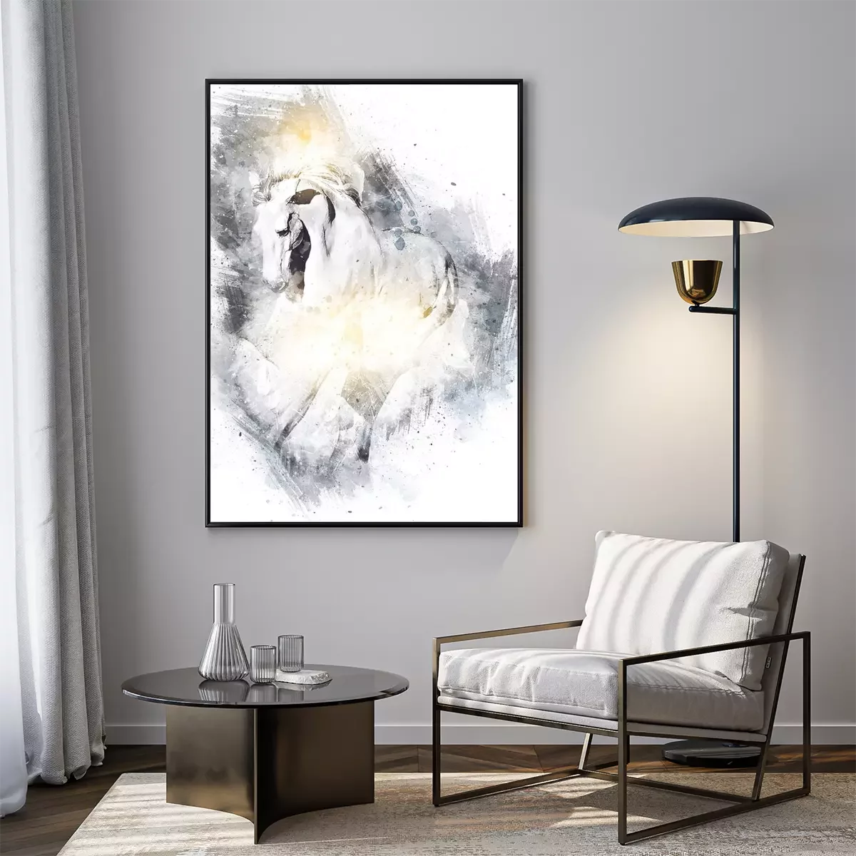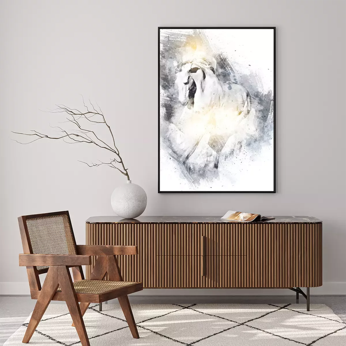 Poster: Schwarz-weißes Pferd gezeichnet