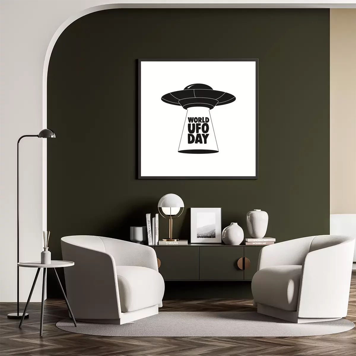 Poster: Schwarz-weißes Ufo-Fahrzeug
