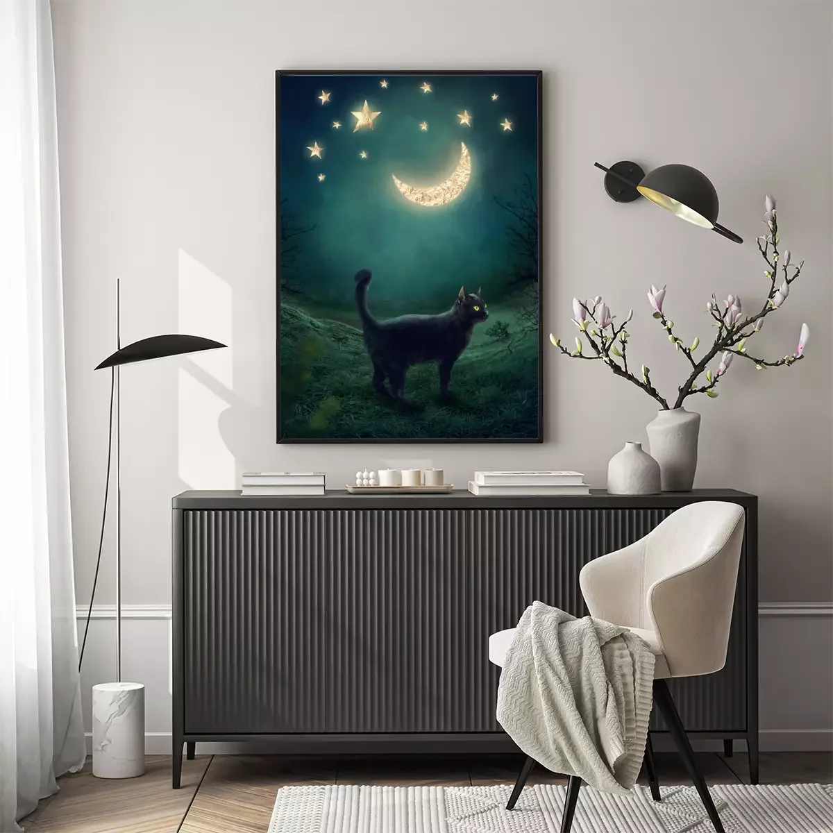 Poster: Schwarze Mondkatze