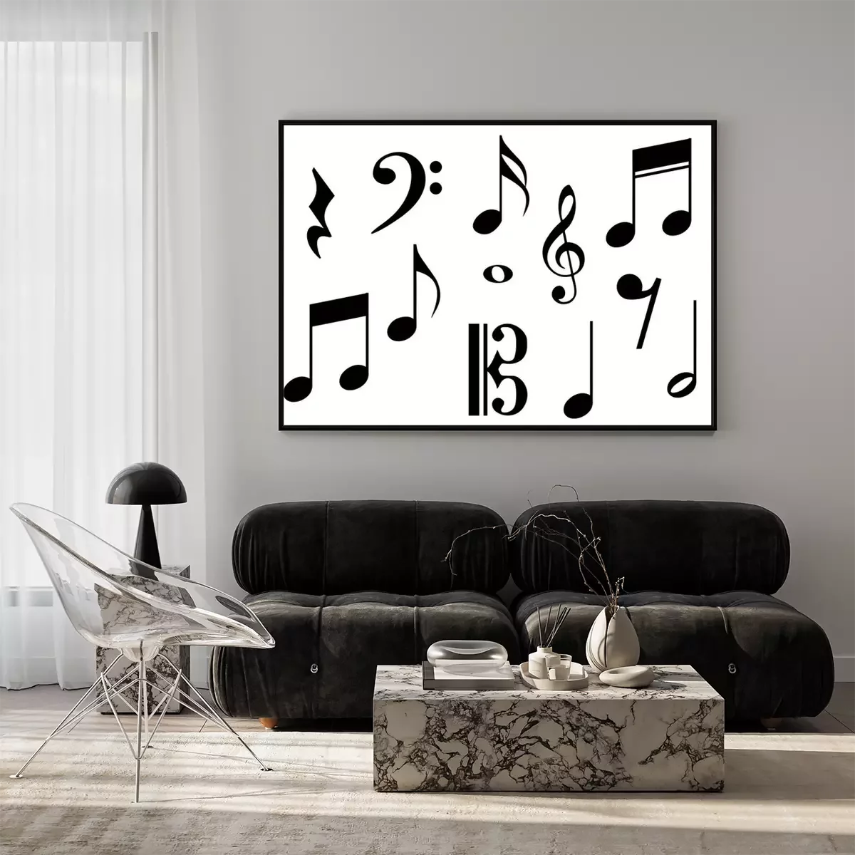 Poster: Schwarze Noten auf weißem Hintergrund