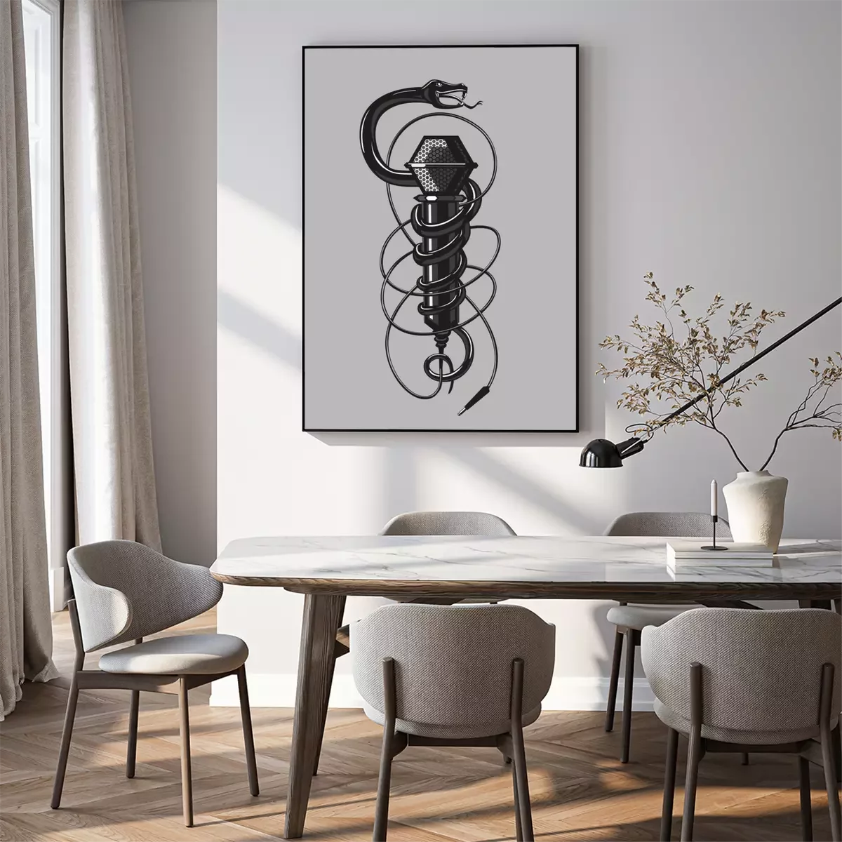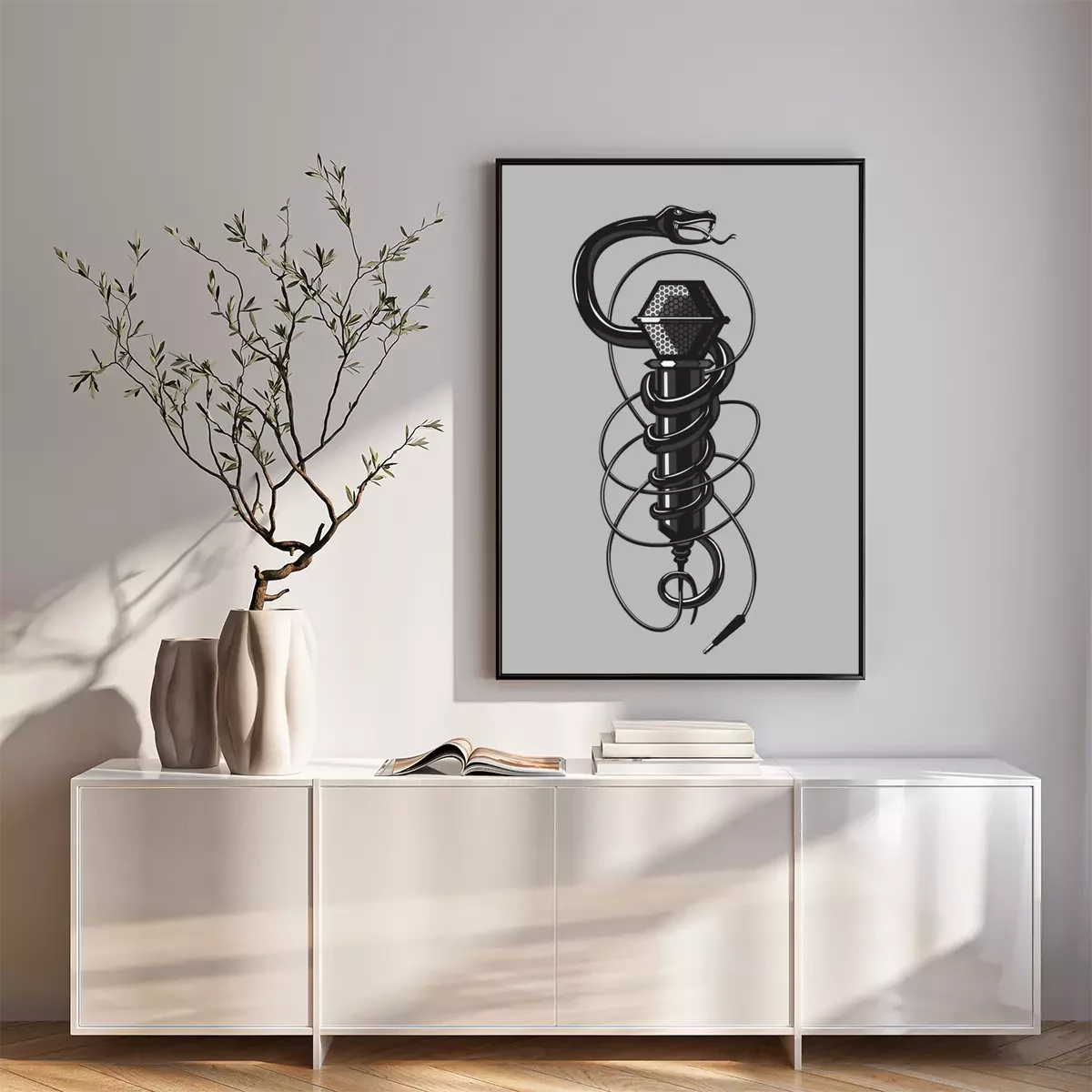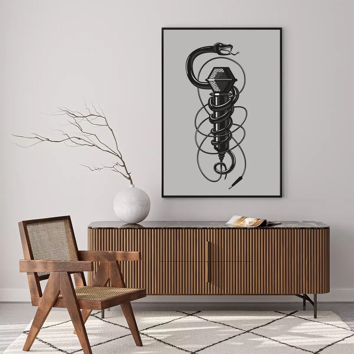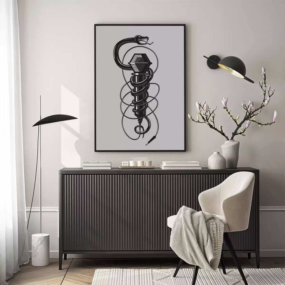 Poster Schwarze Schlange mit Mikrofon
