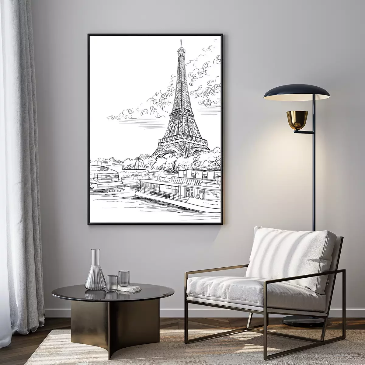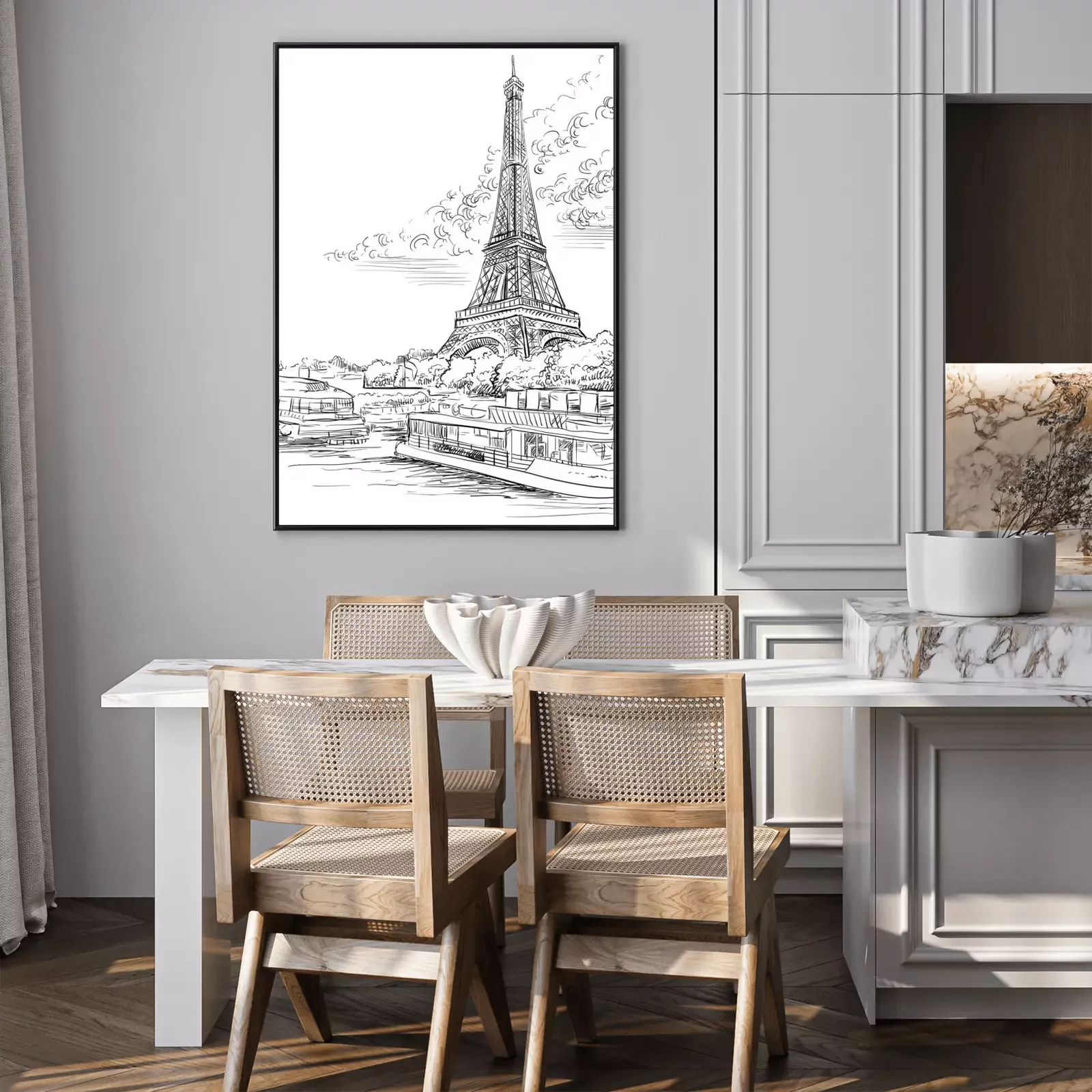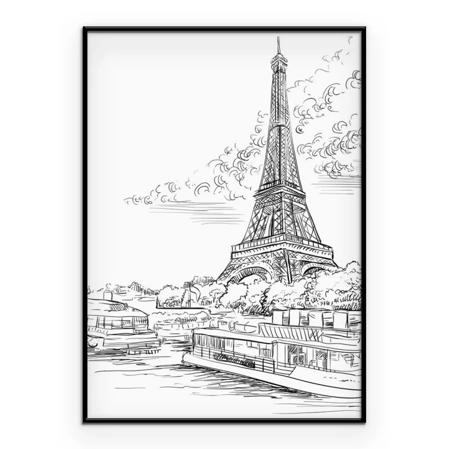 Poster Schwarze Skizze des Eiffelturms in Paris