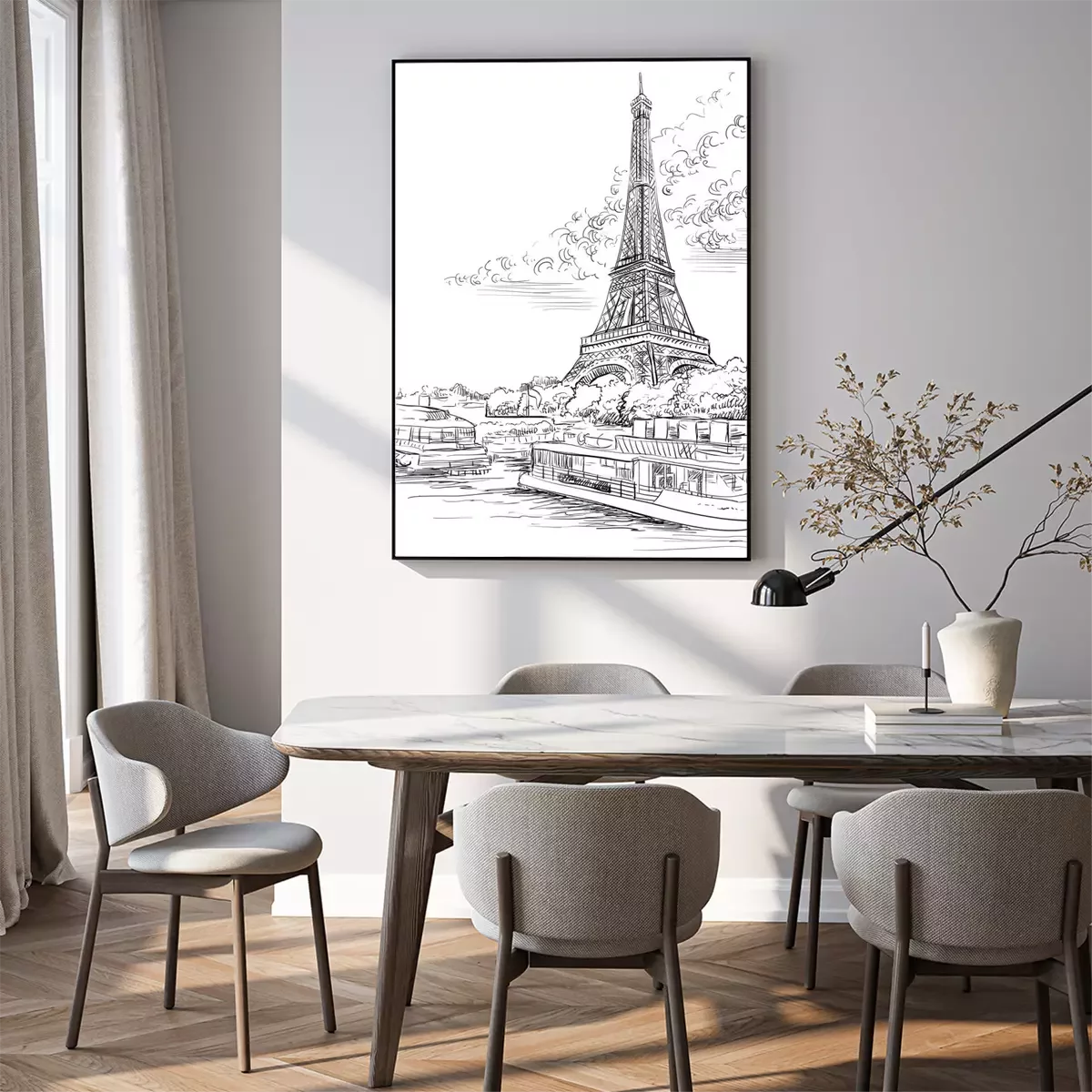 Poster: Schwarze Skizze des Eiffelturms in Paris