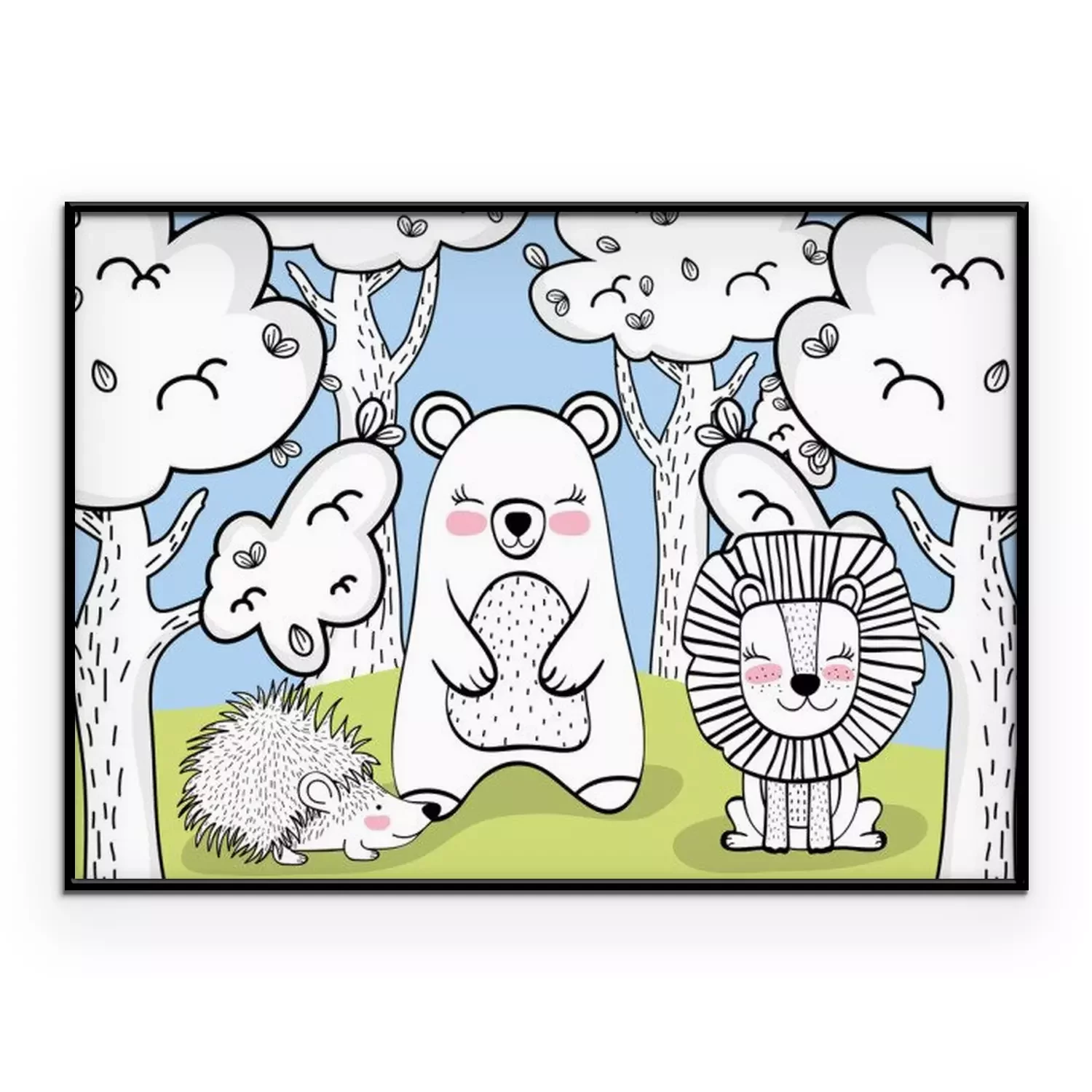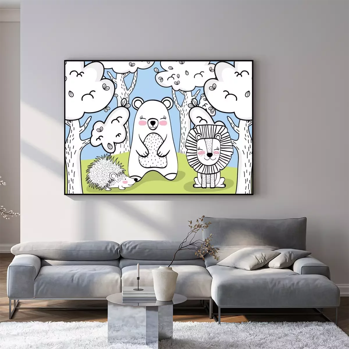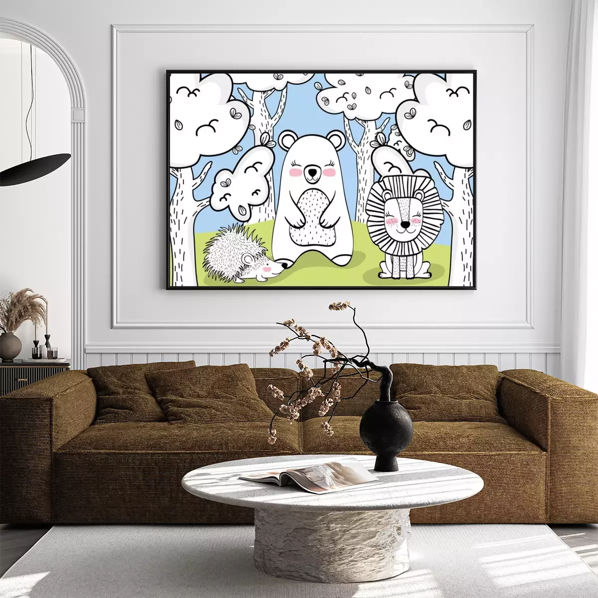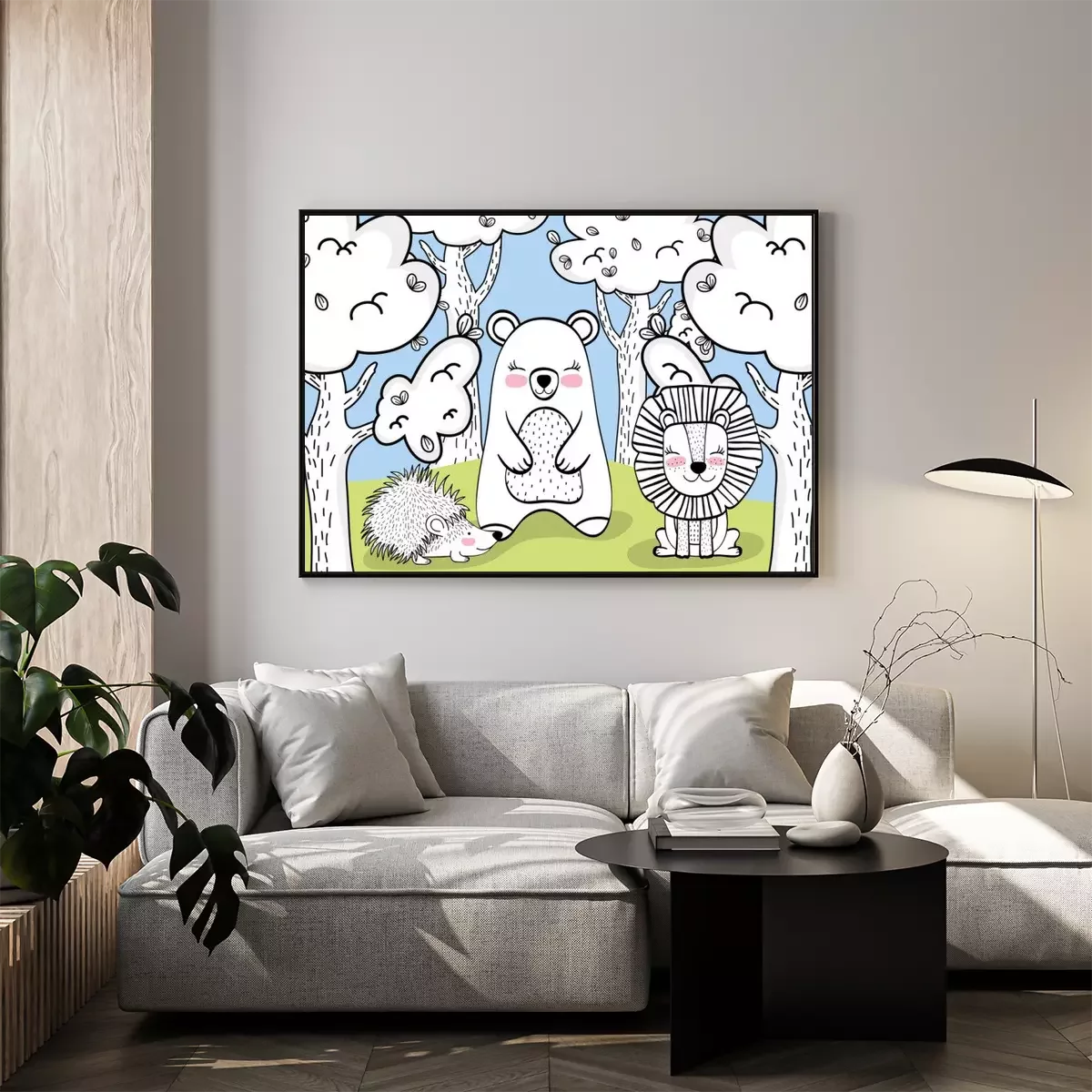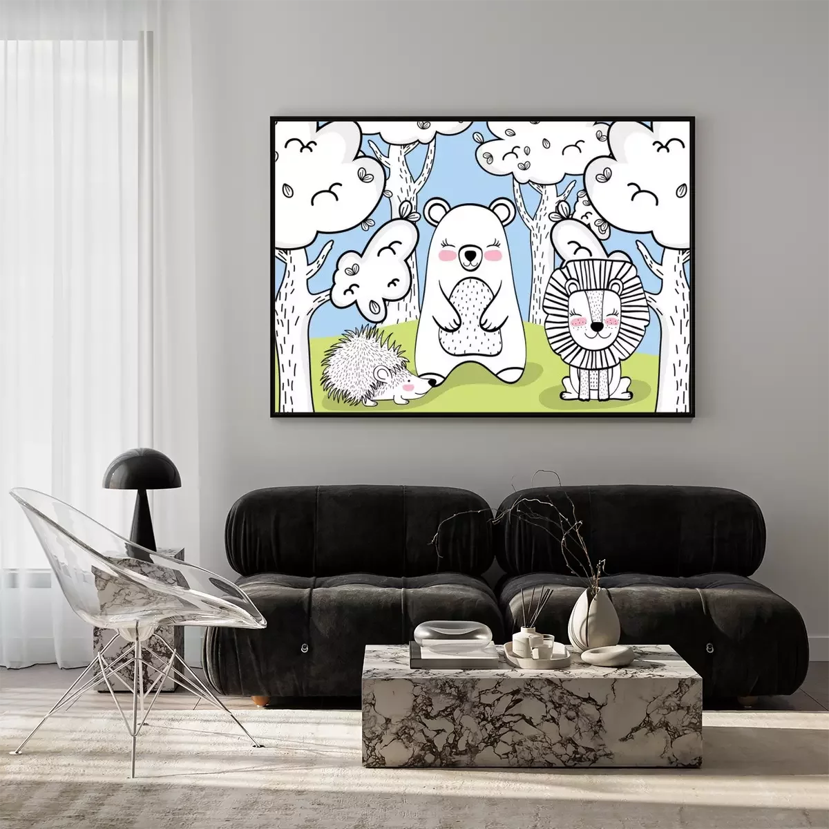 Poster Schwarze und weiße Tiere auf einer grünen Lichtung