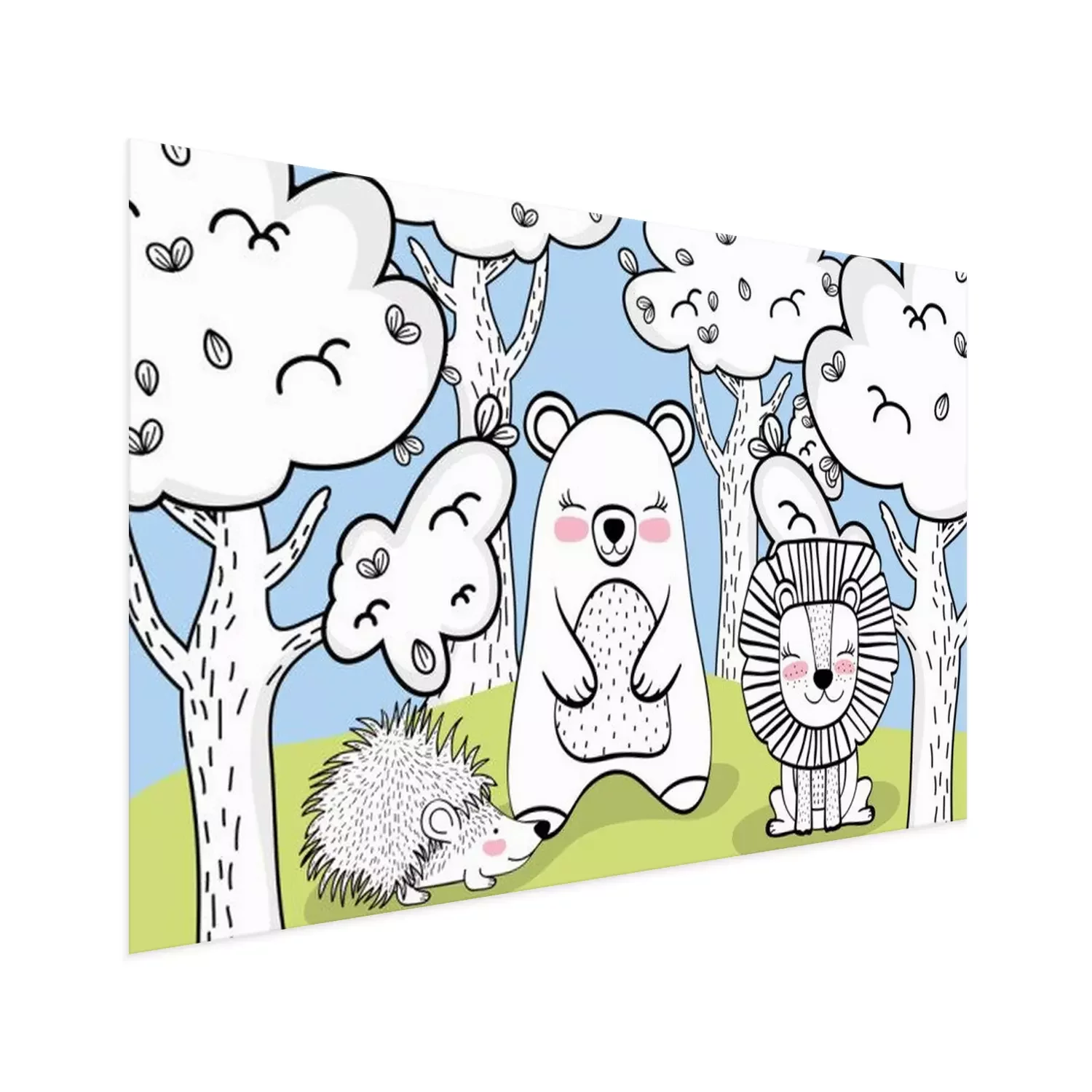 Poster: Schwarze und weiße Tiere auf einer grünen Lichtung