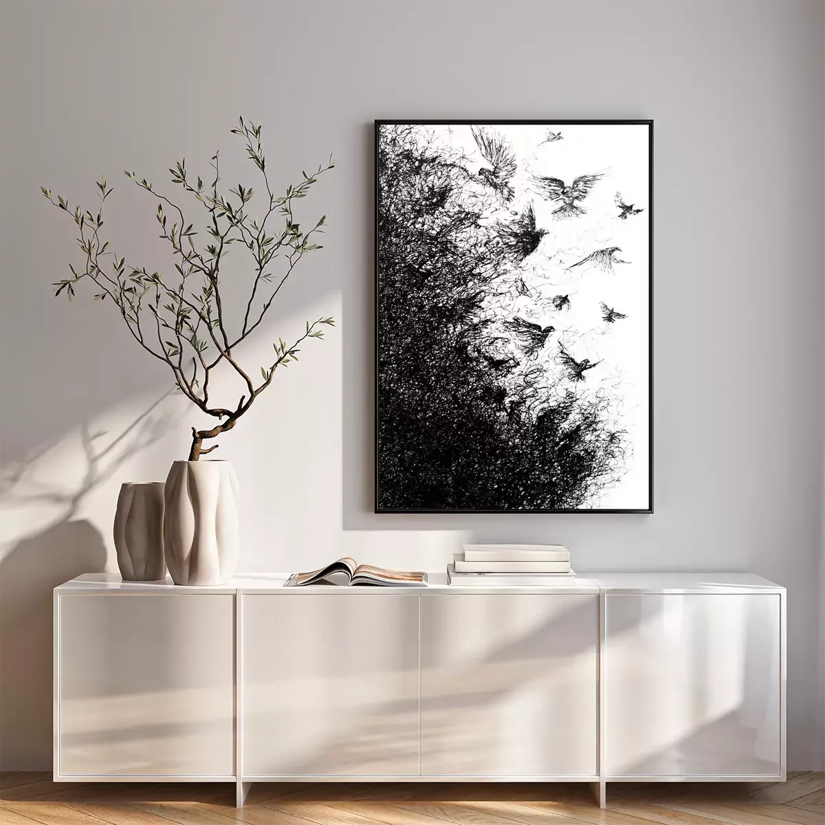 Poster: Schwarze Vögel im Flug