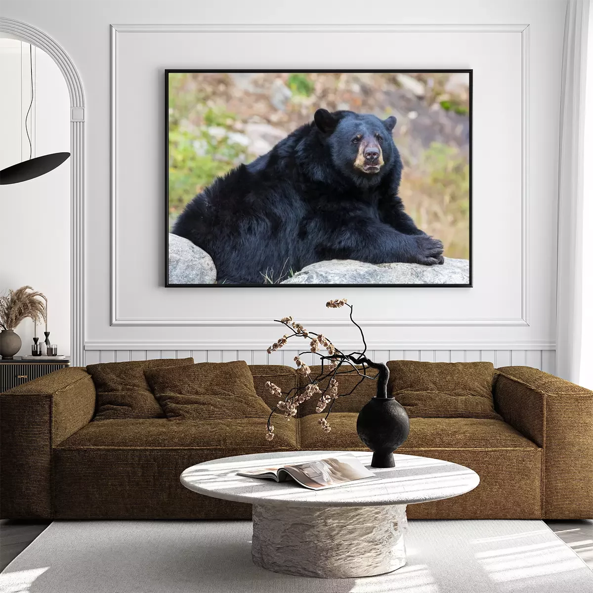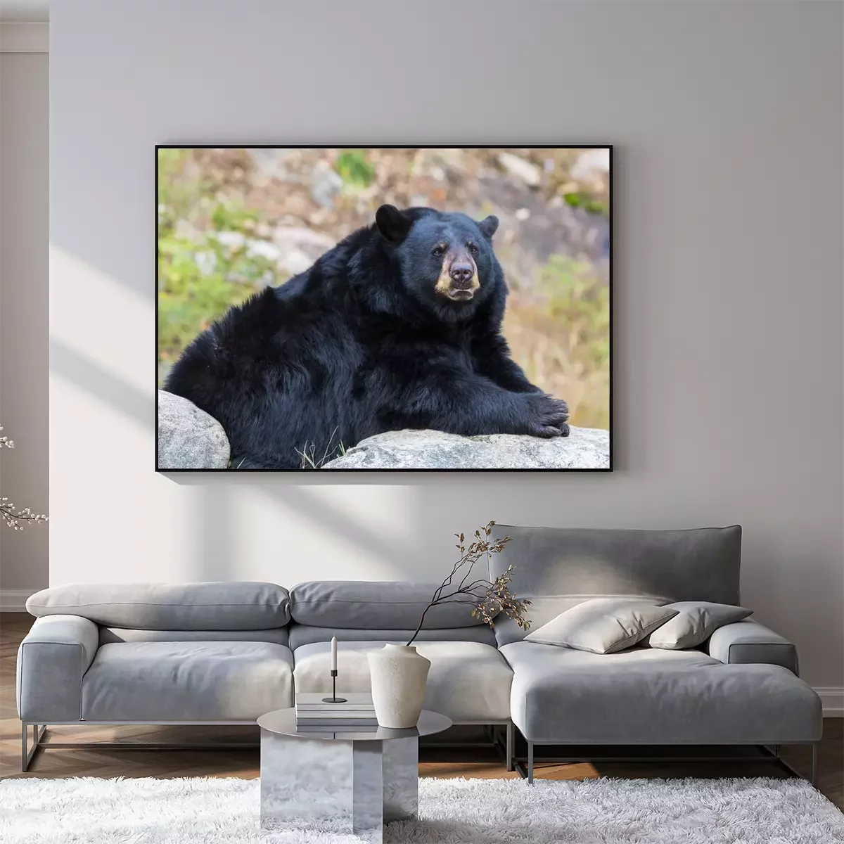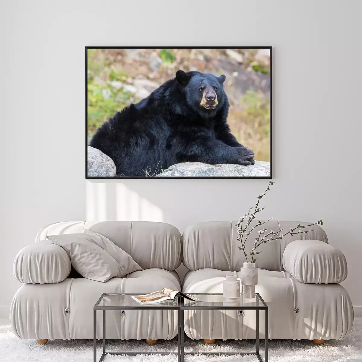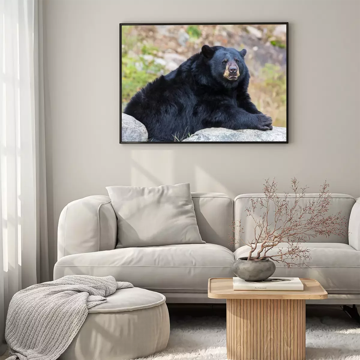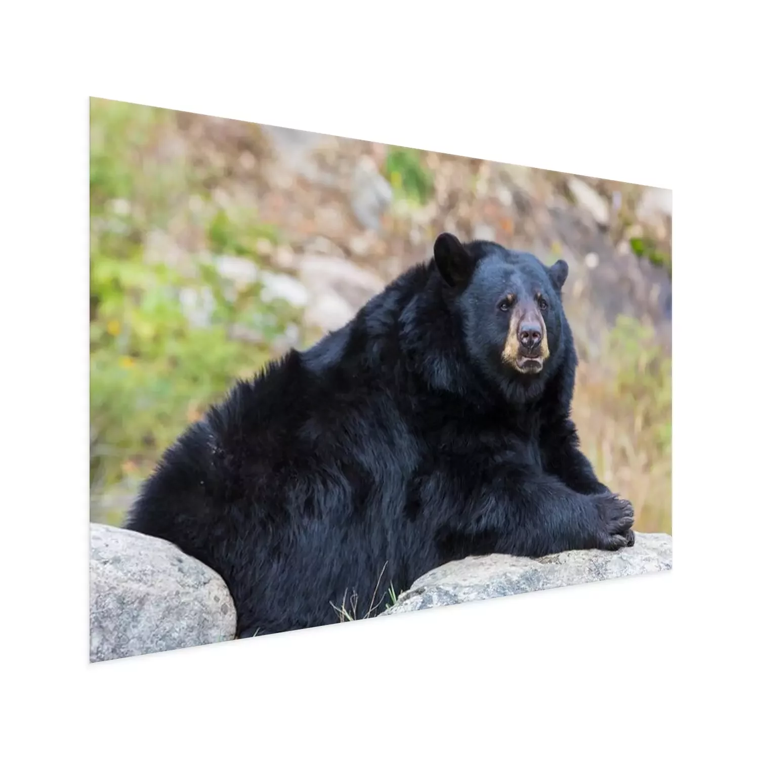 Poster: Schwarzer Bär lehnt an einem Felsen