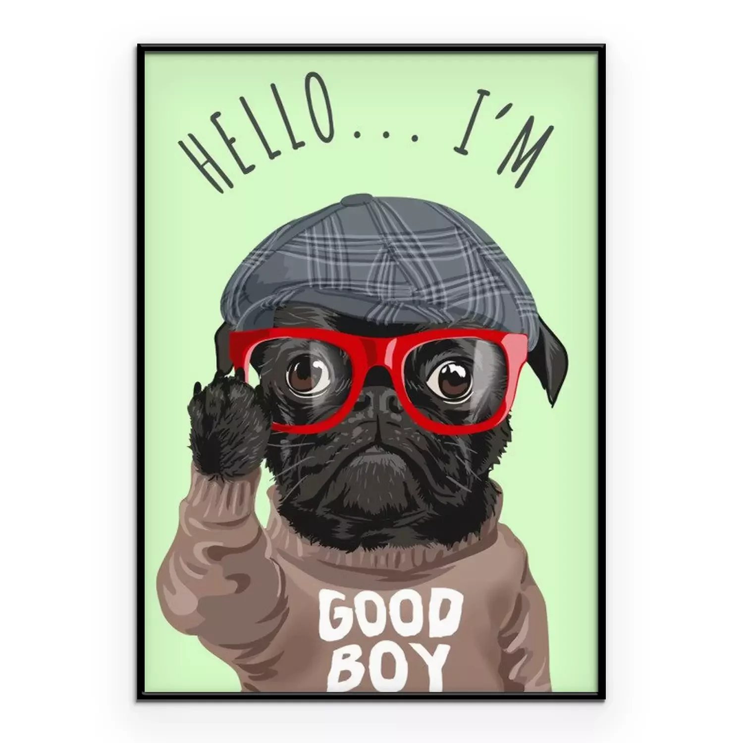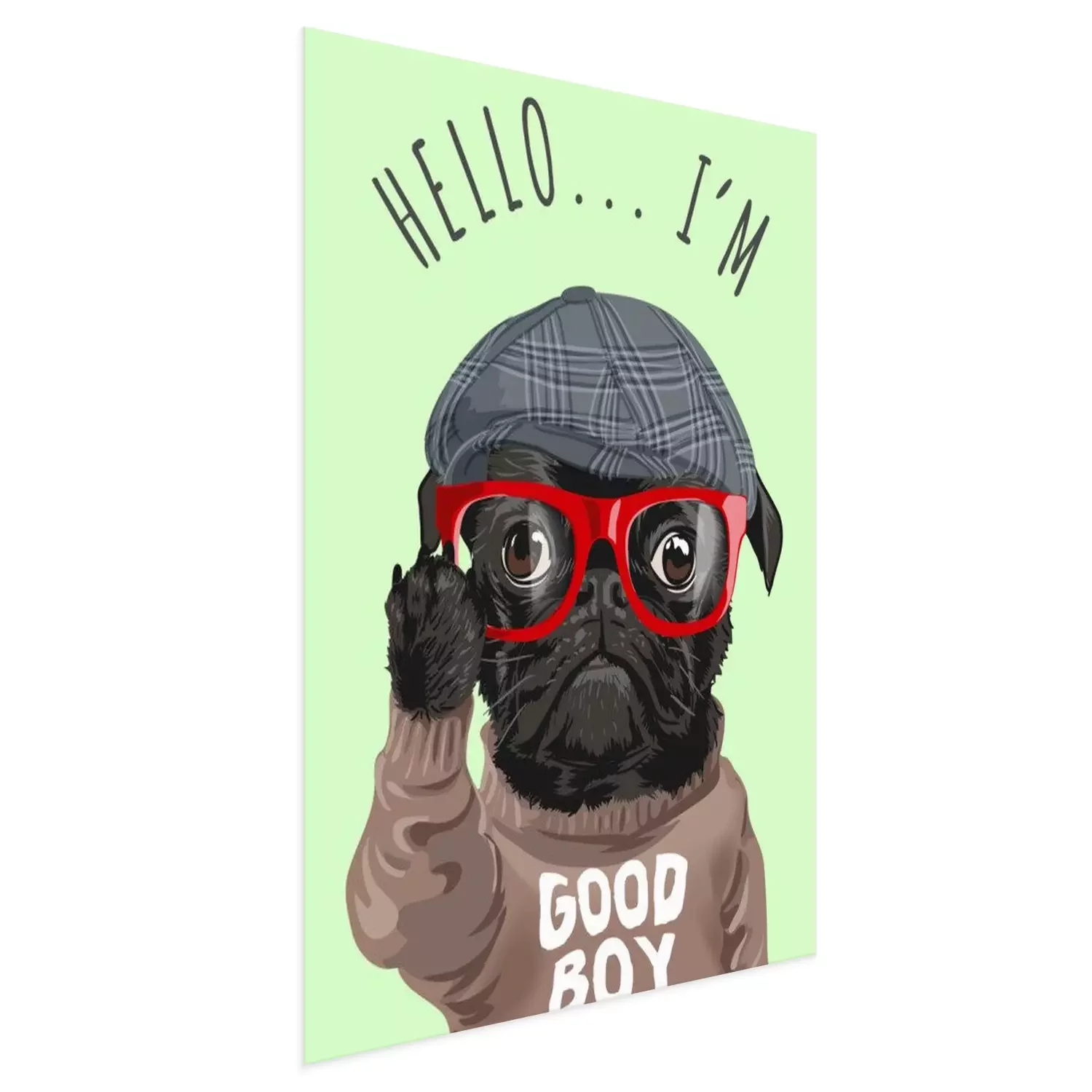 Poster: Schwarzer Hund mit roter Brille und Helm