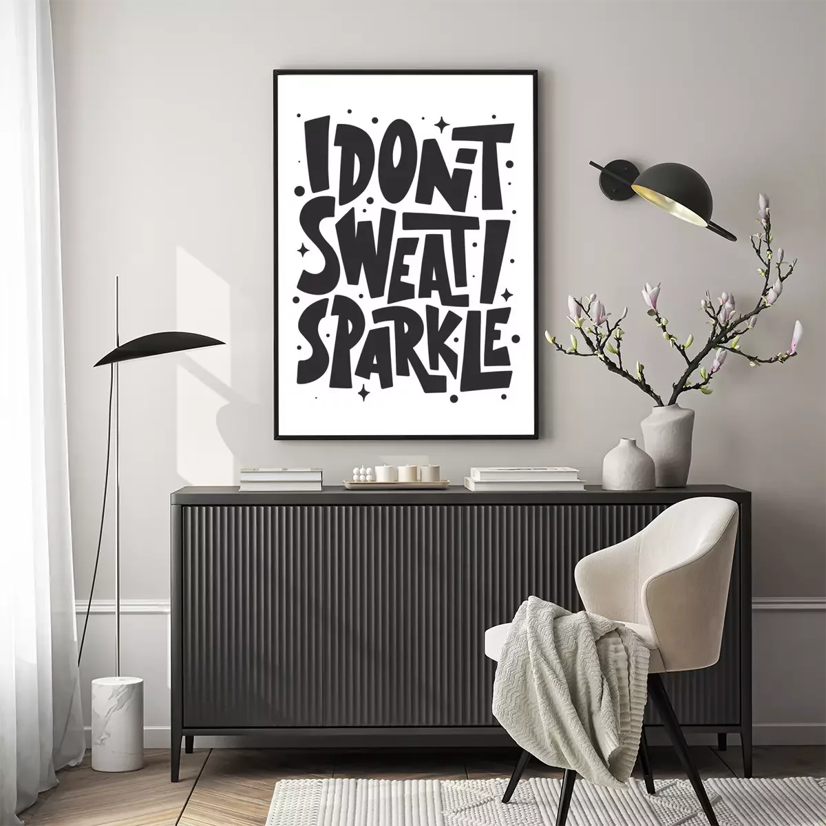 Poster Schwarzer Schriftzug zwischen schwarzen Sternen