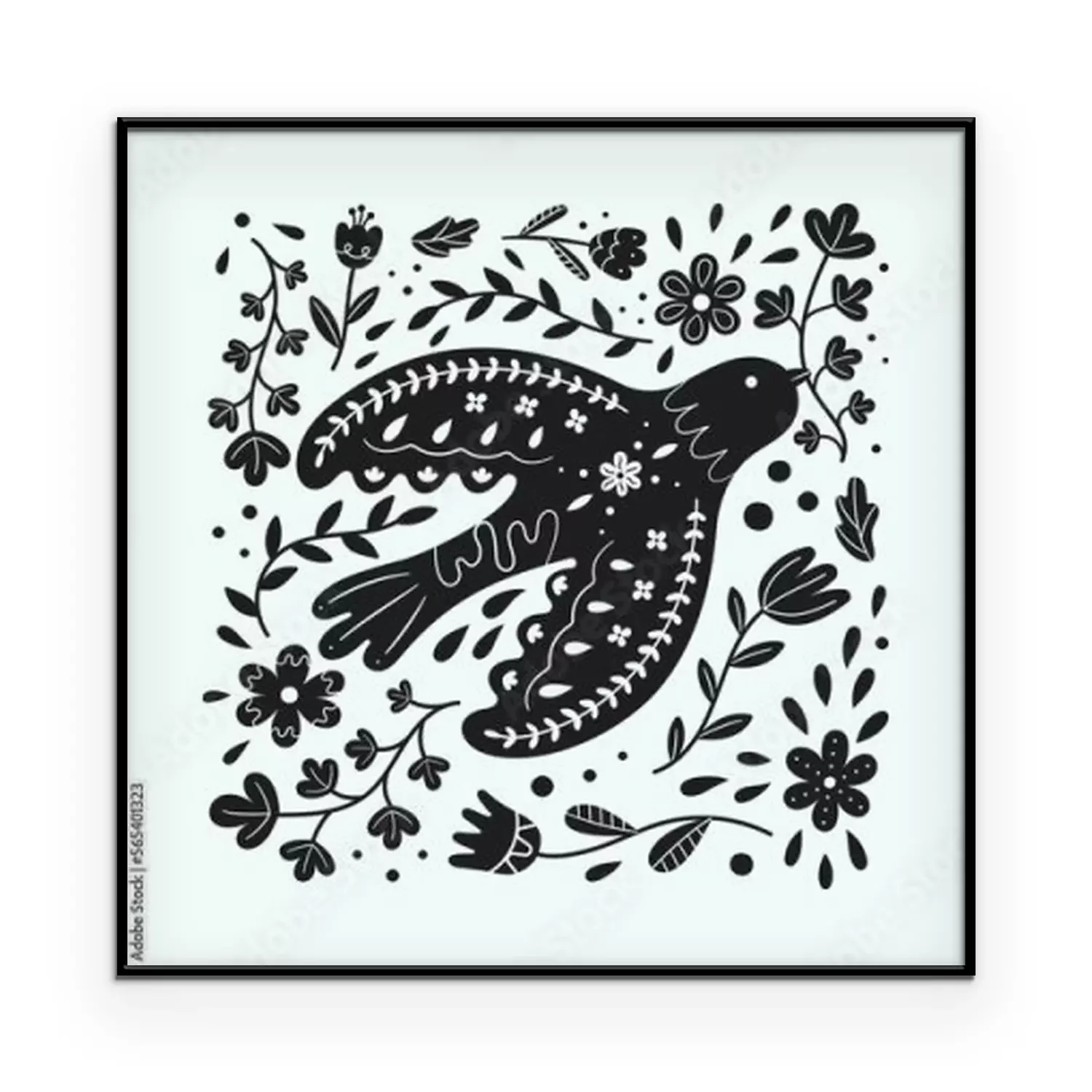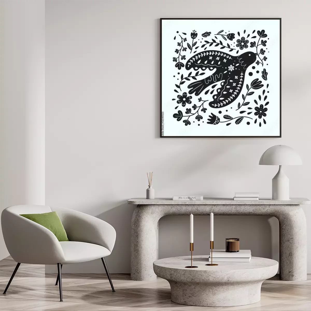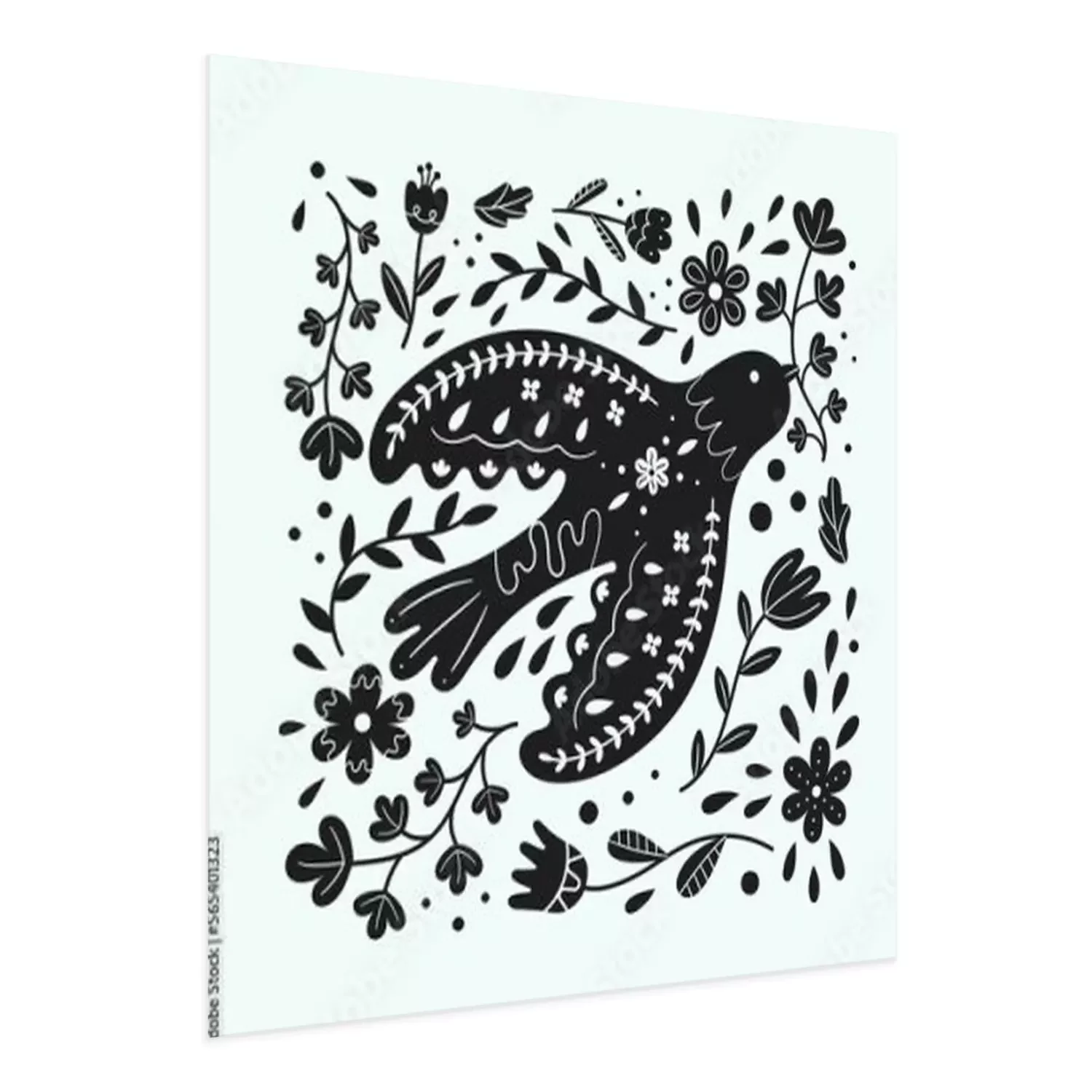 Poster: Schwarzer Vogel in floralen Ornamenten