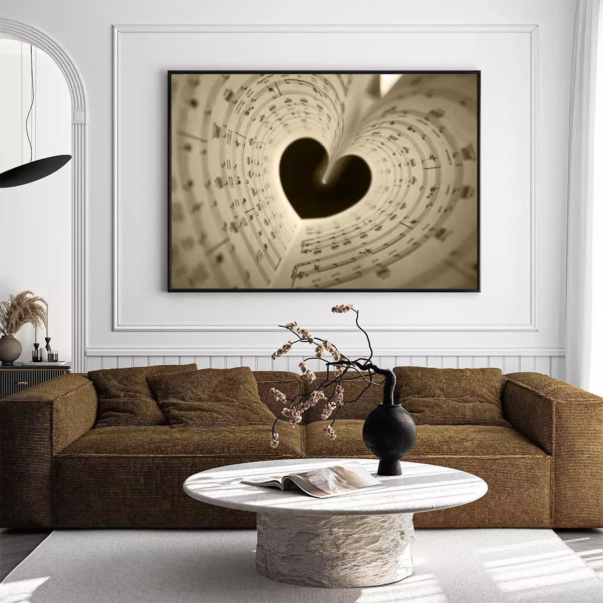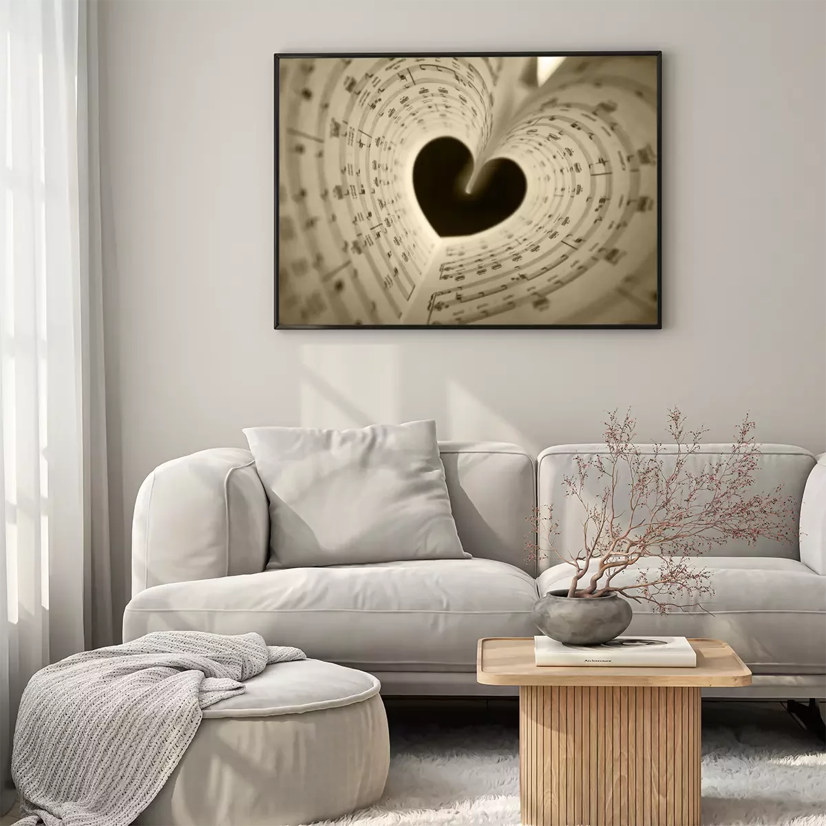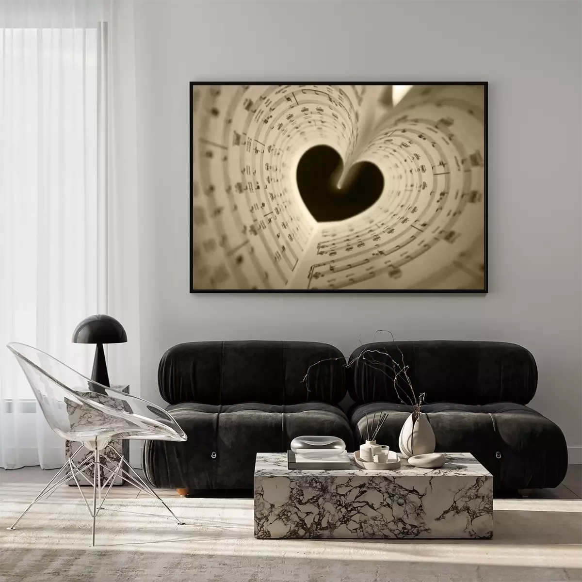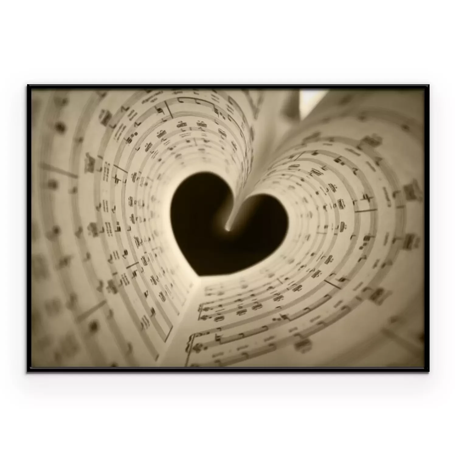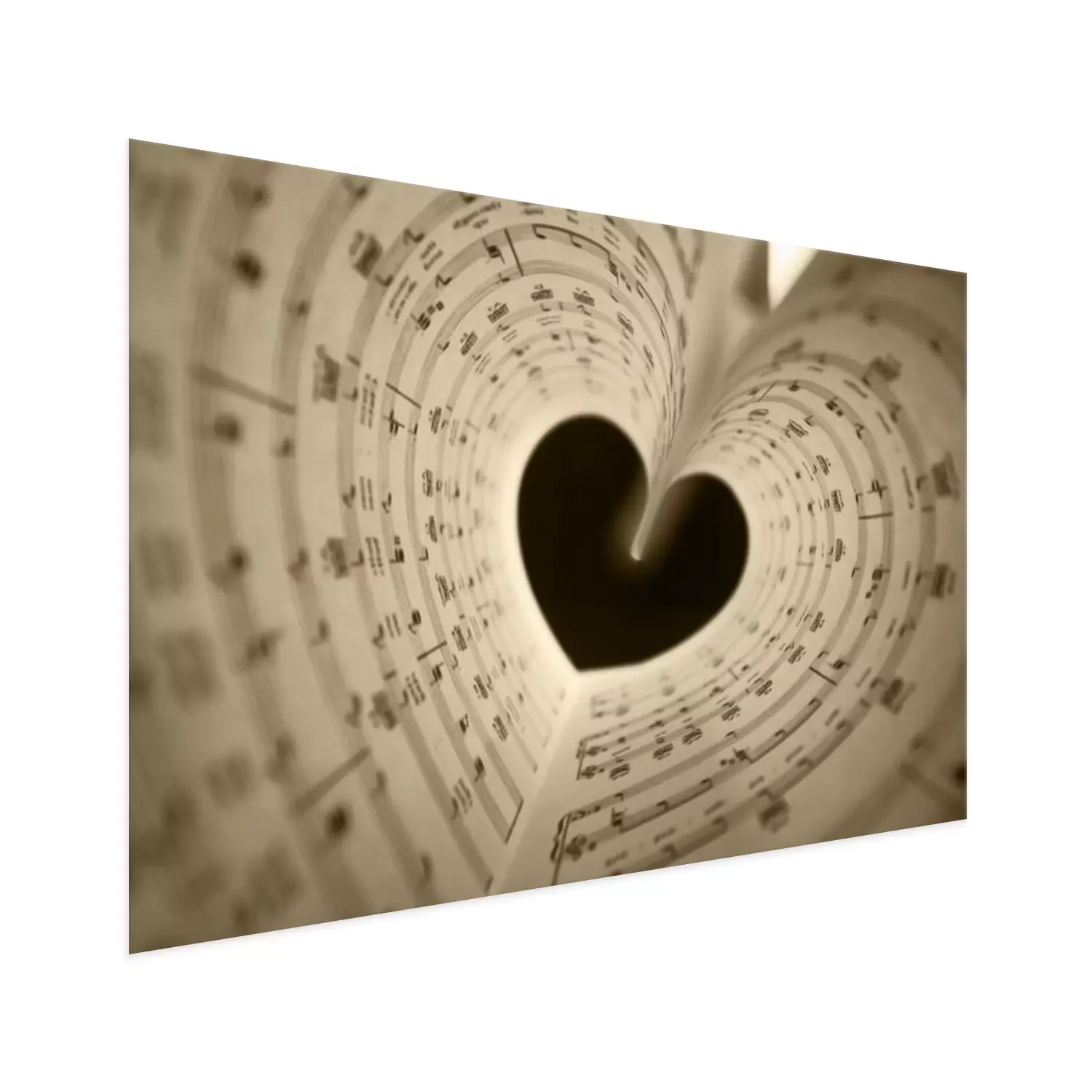 Poster: Schwarzes Herz mit Schriftrollen von Noten