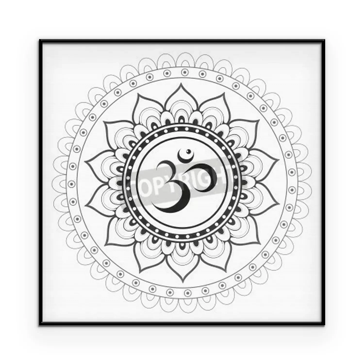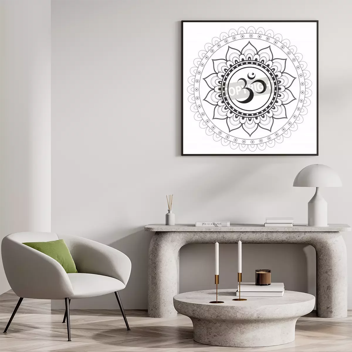 Poster Schwarzes Mandala-Spitzenmuster auf weißem Hintergrund