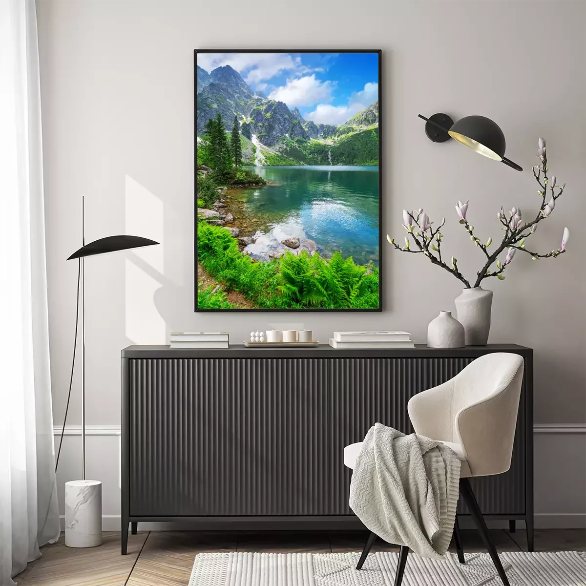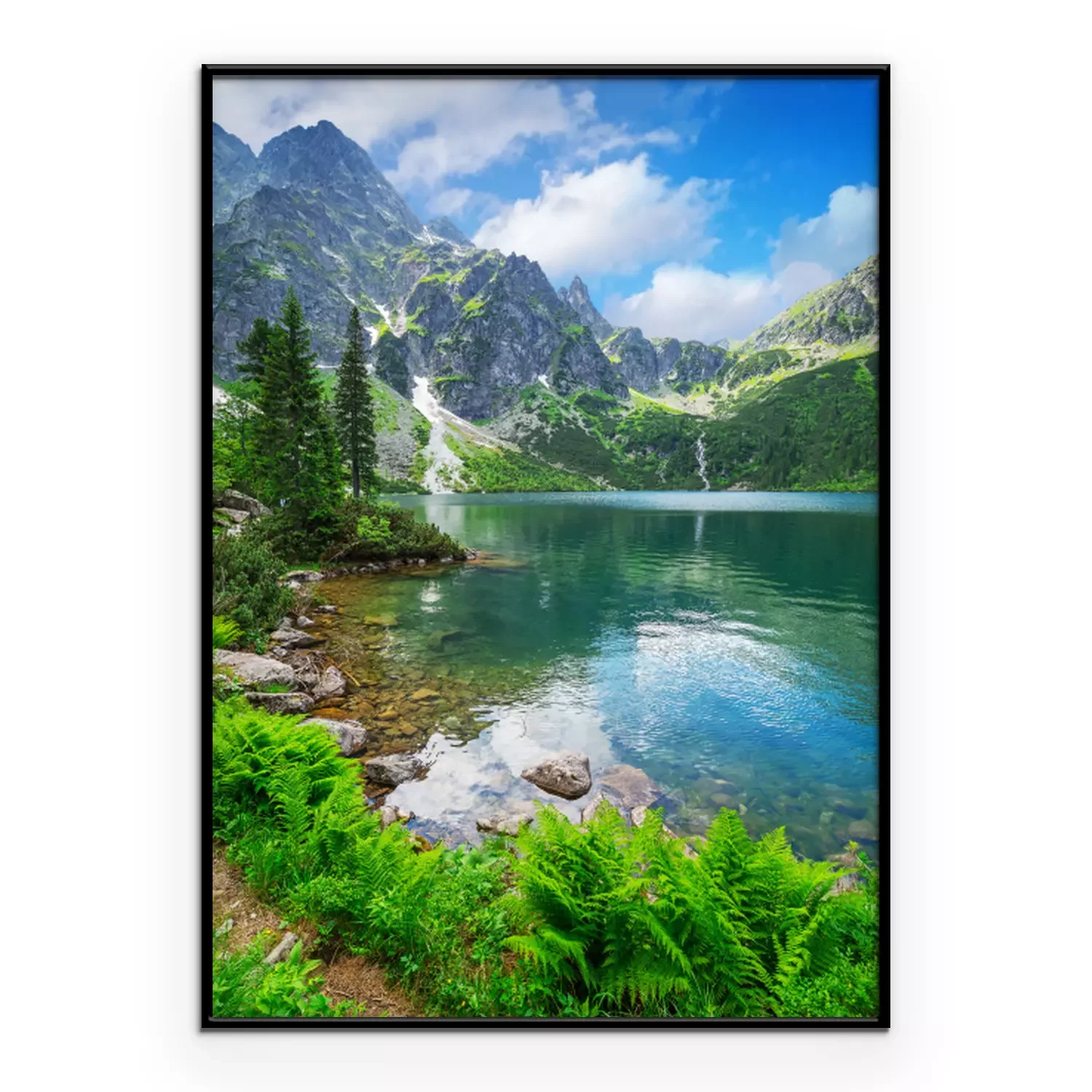 Poster: See vor dem Hintergrund der Berge und des Grüns
