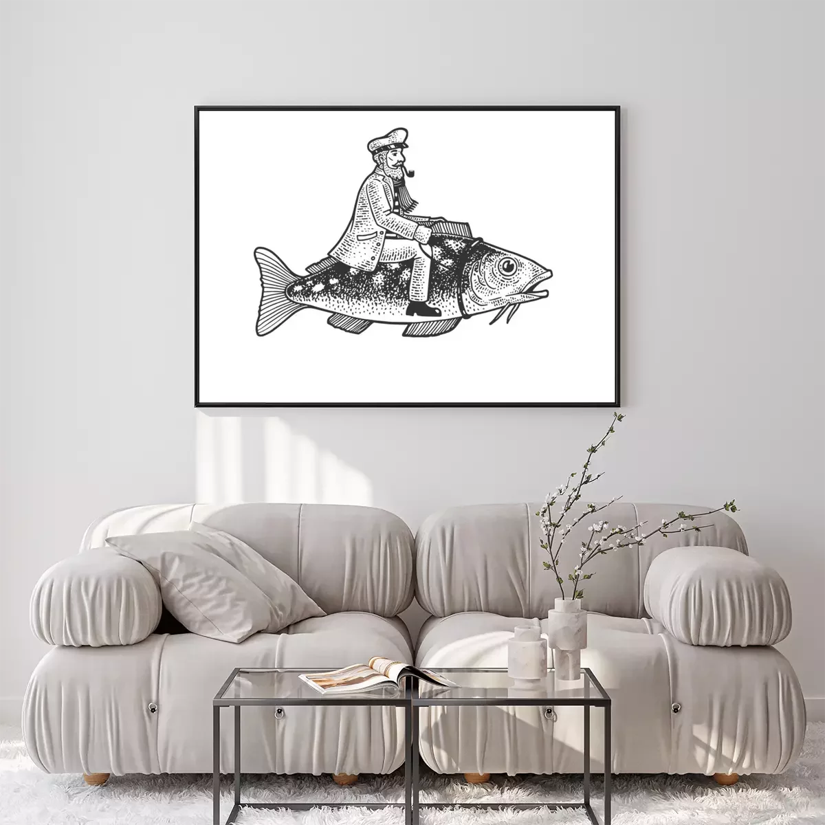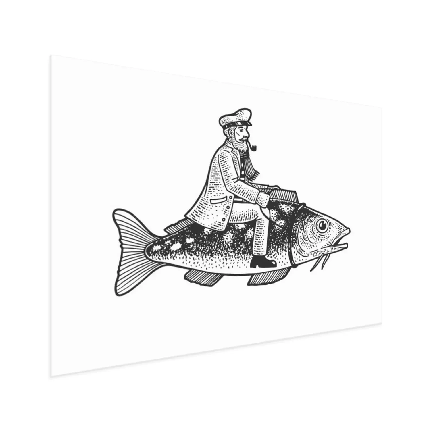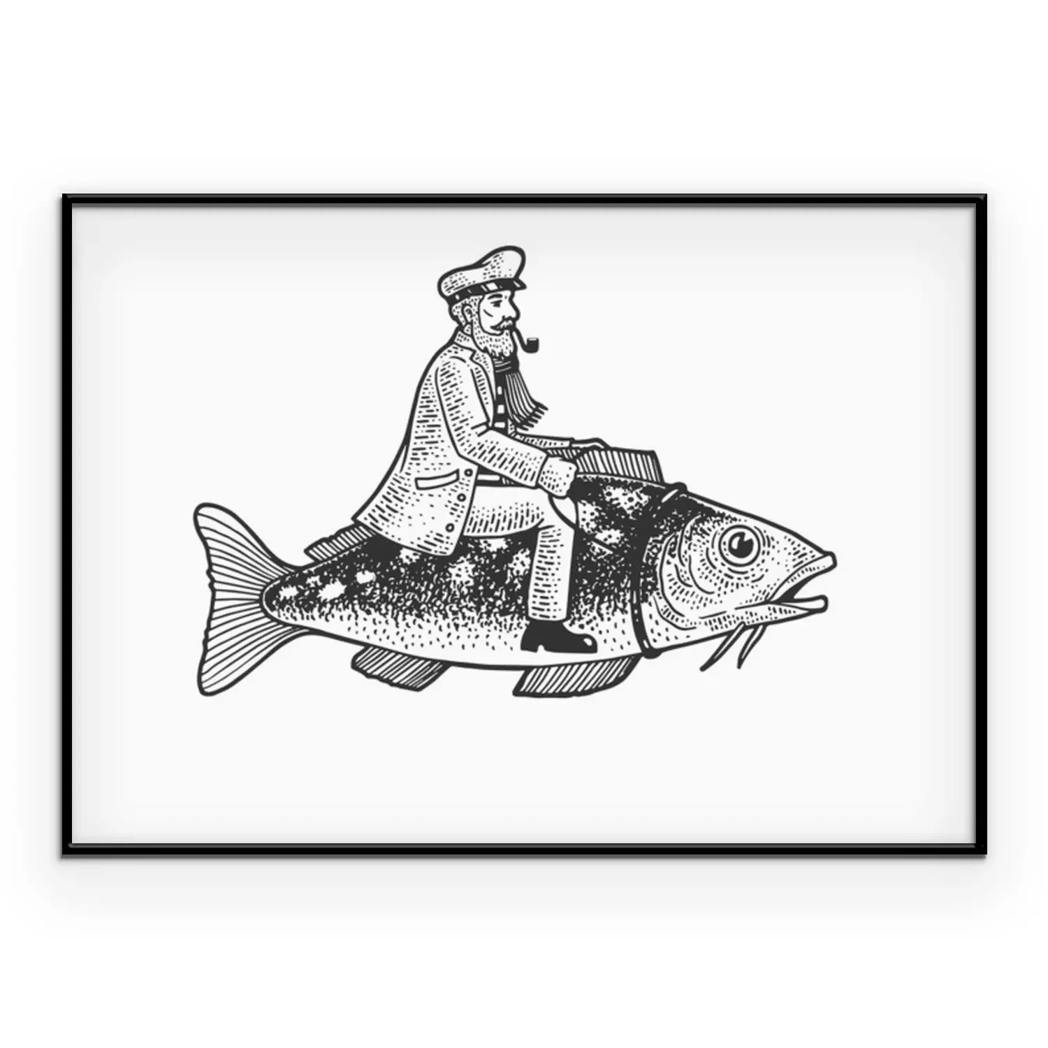 Zeichnung schwarz-weißer Herr auf einem Strauß