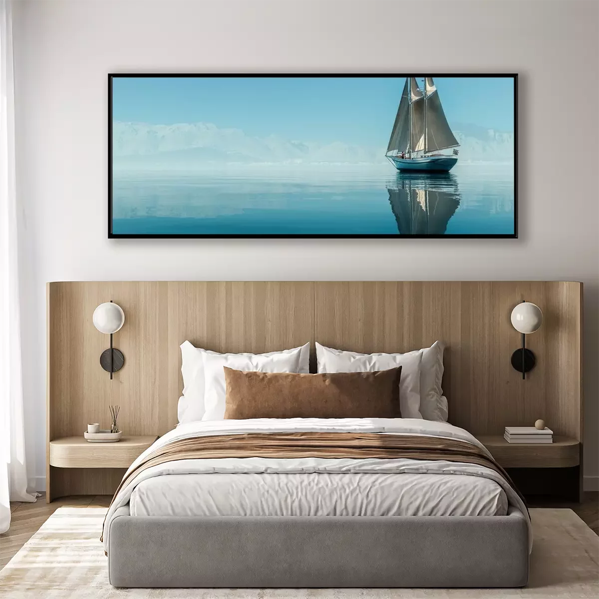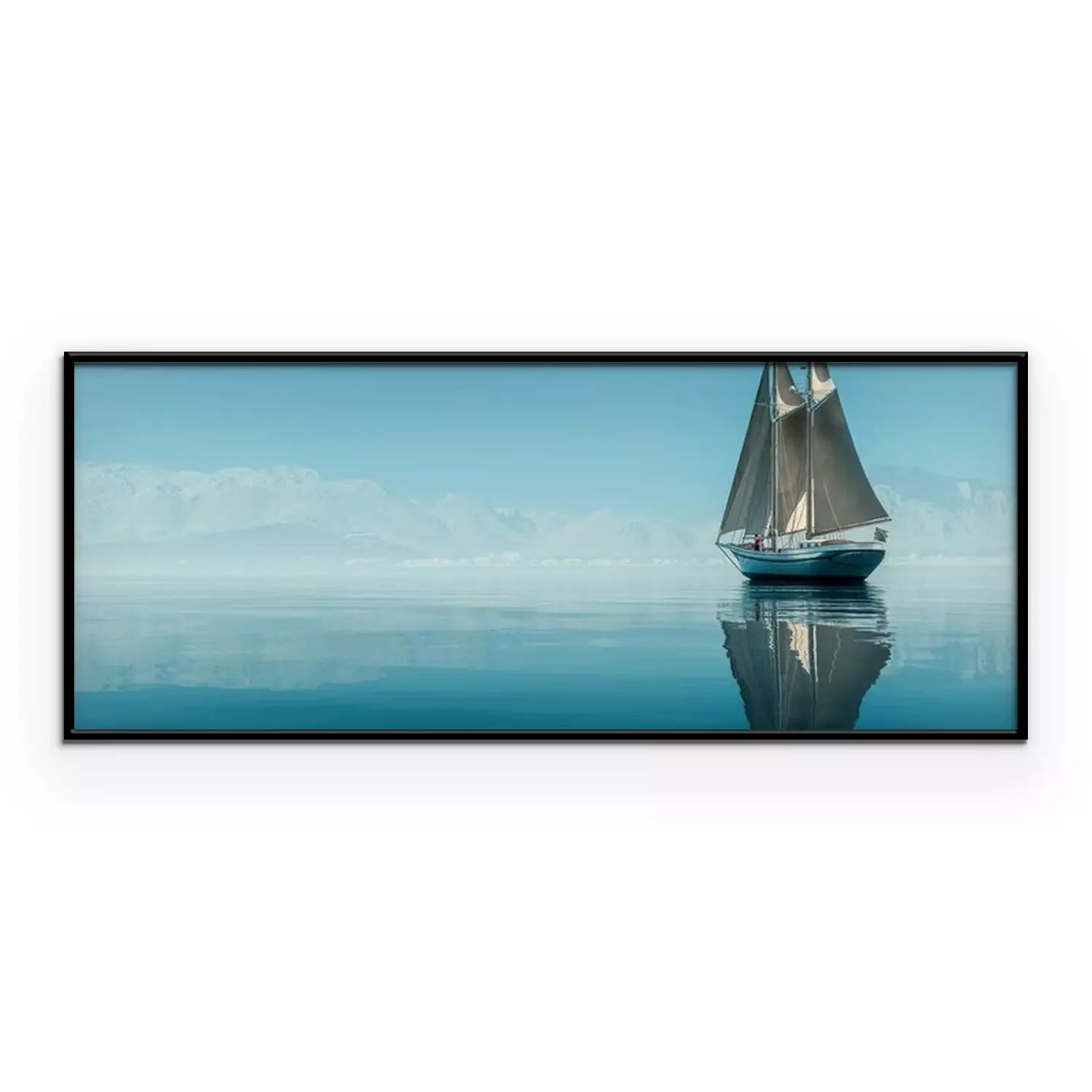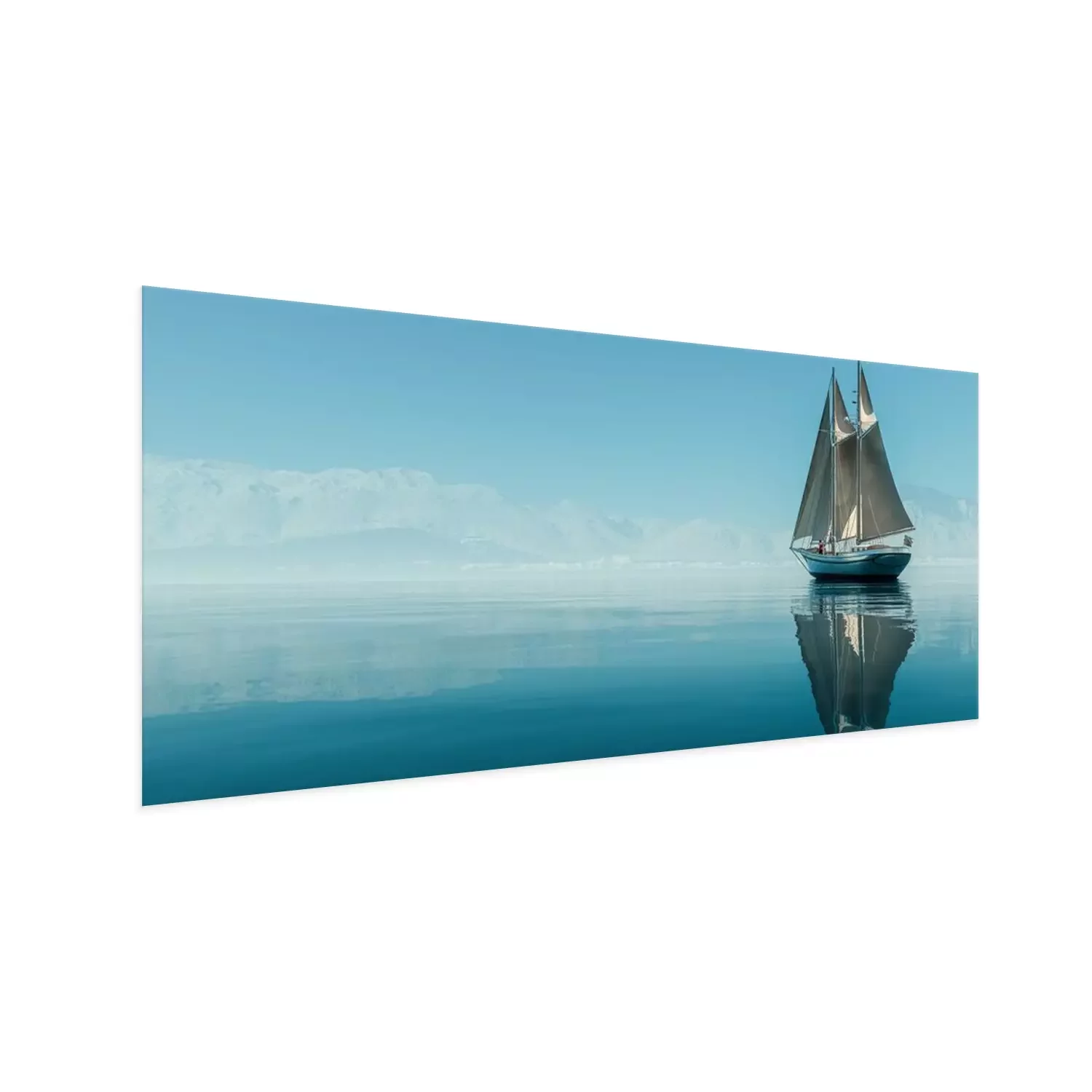 Poster: Segelboot auf dem Meer und Berge im Hintergrund