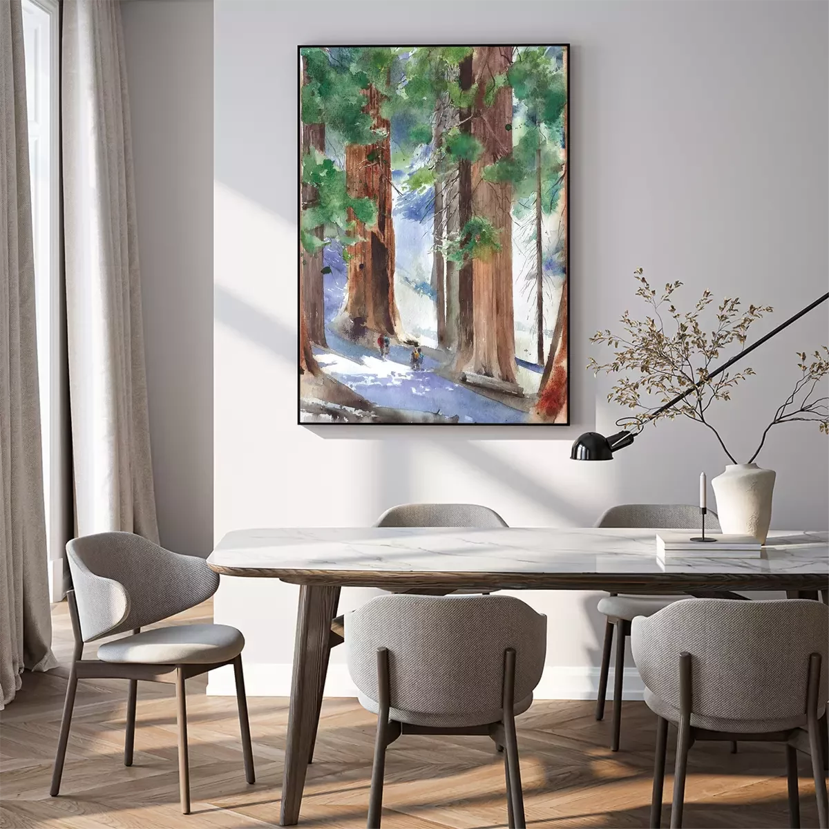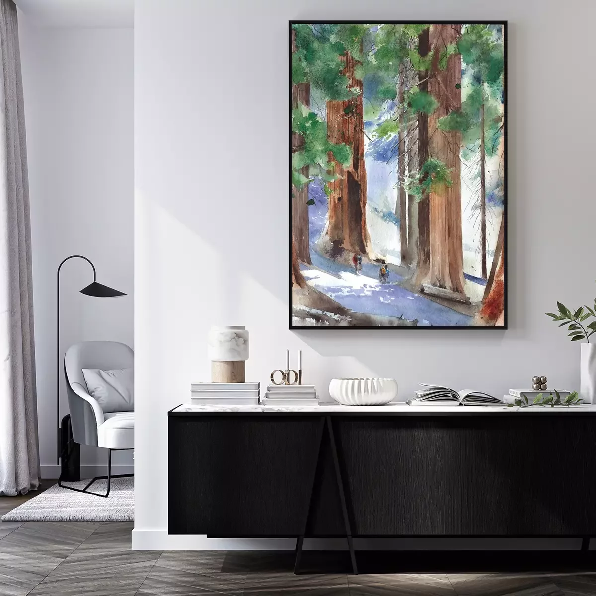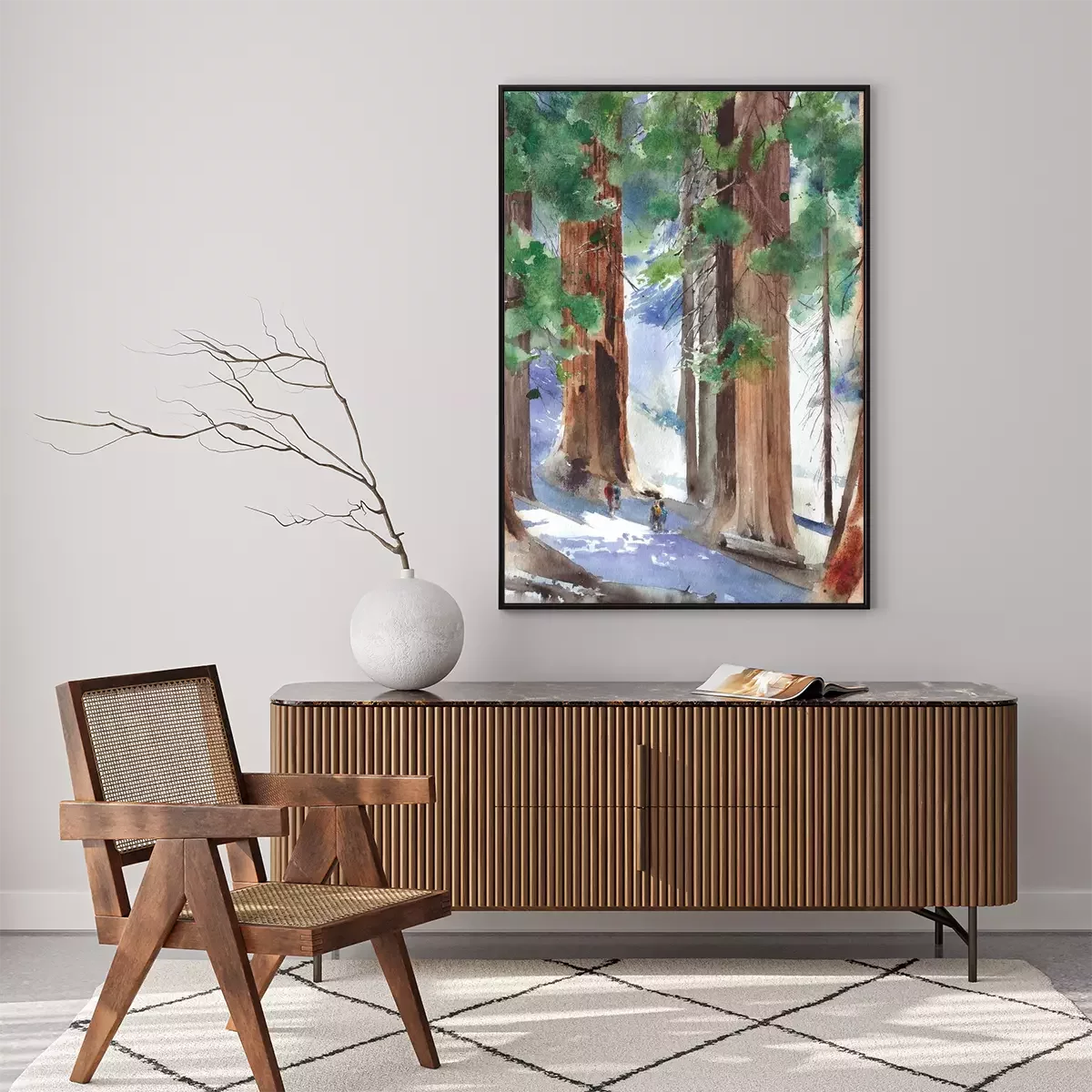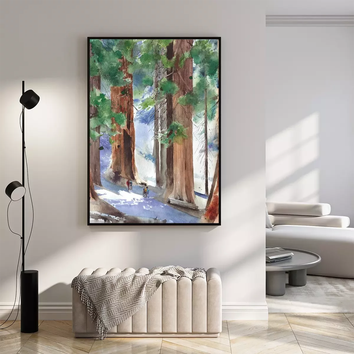 Poster: Sequoia-Wald Illustration in Aquarell-Ästhetik