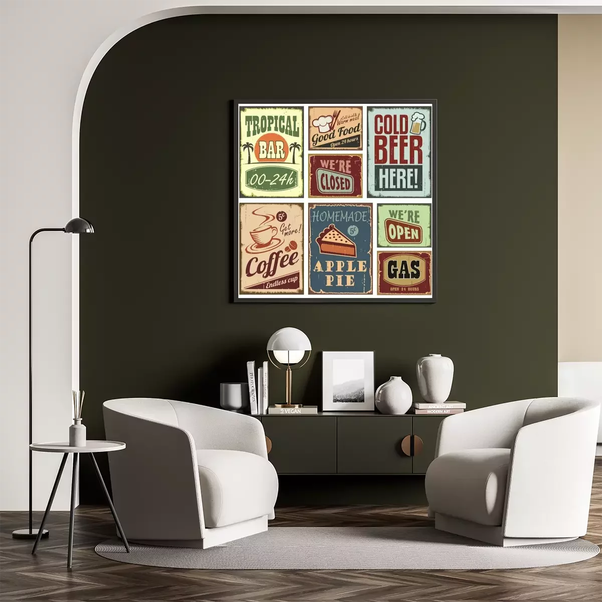 Retro-Grafiken für LebensmittelwerbungProblemlose Lieferung durch vertrauenswürdige Spediteure