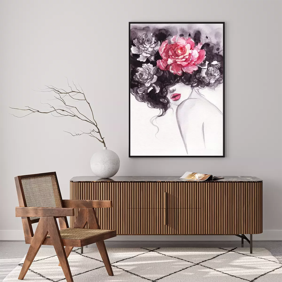 Aquarell-Frau mit Blumen