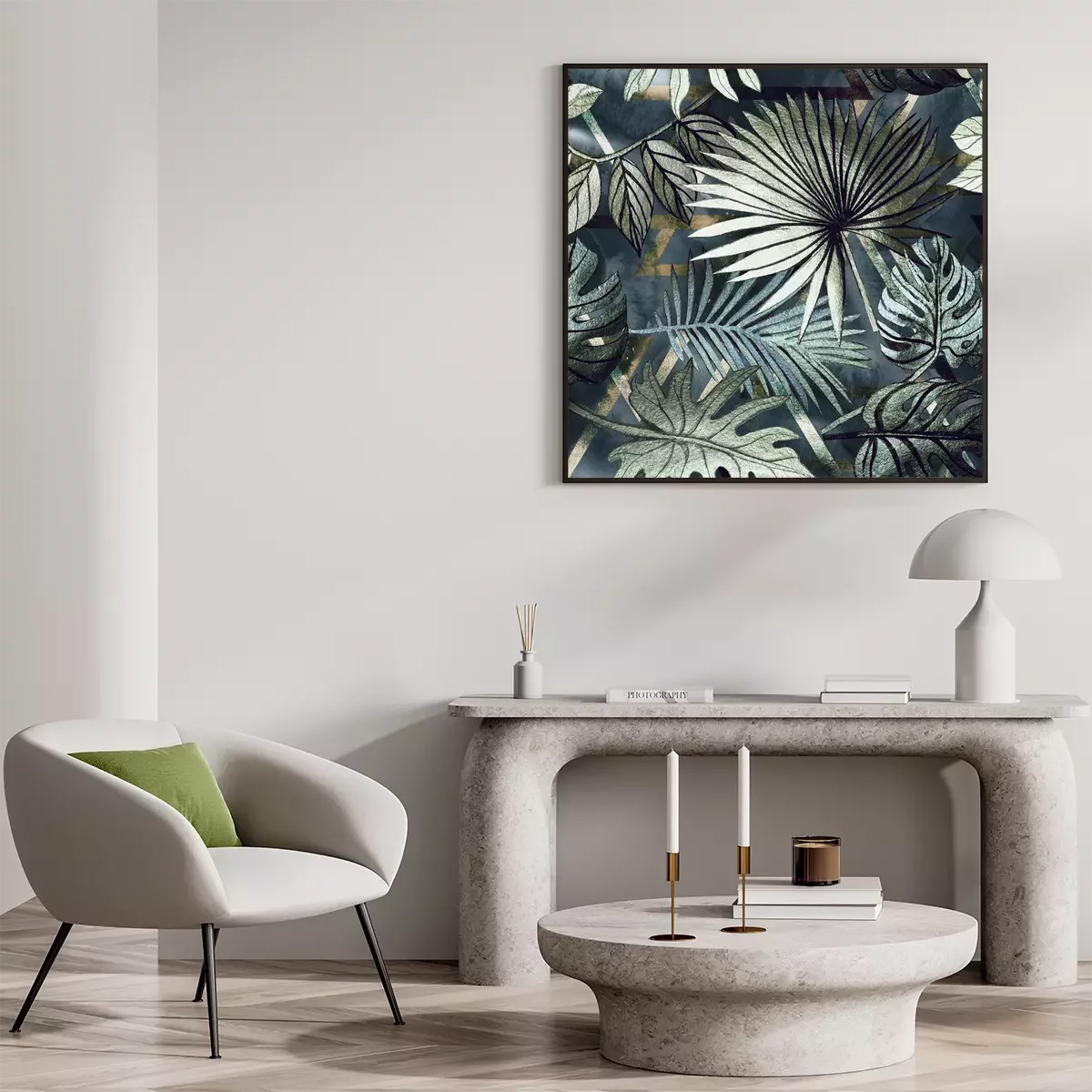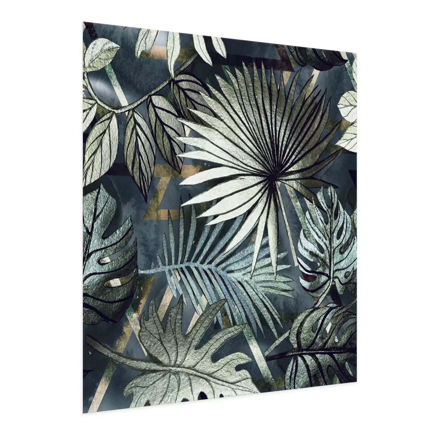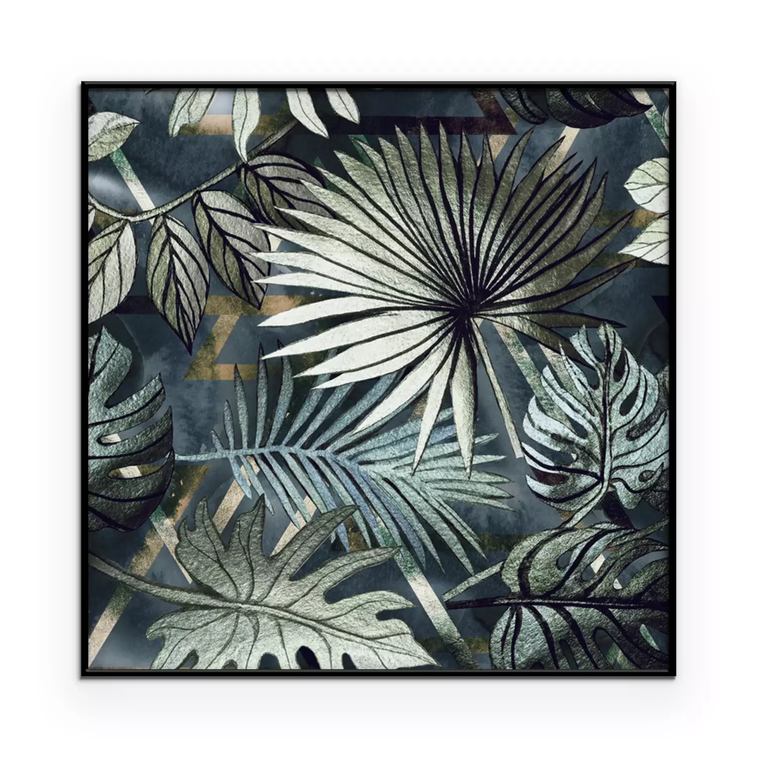 Seamless pattern with tropical leaves and  geometric shapes. Tropical  background.