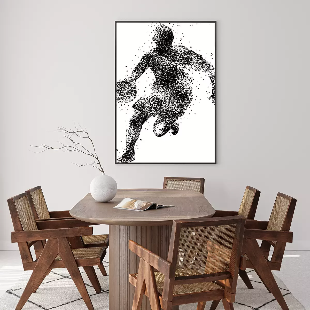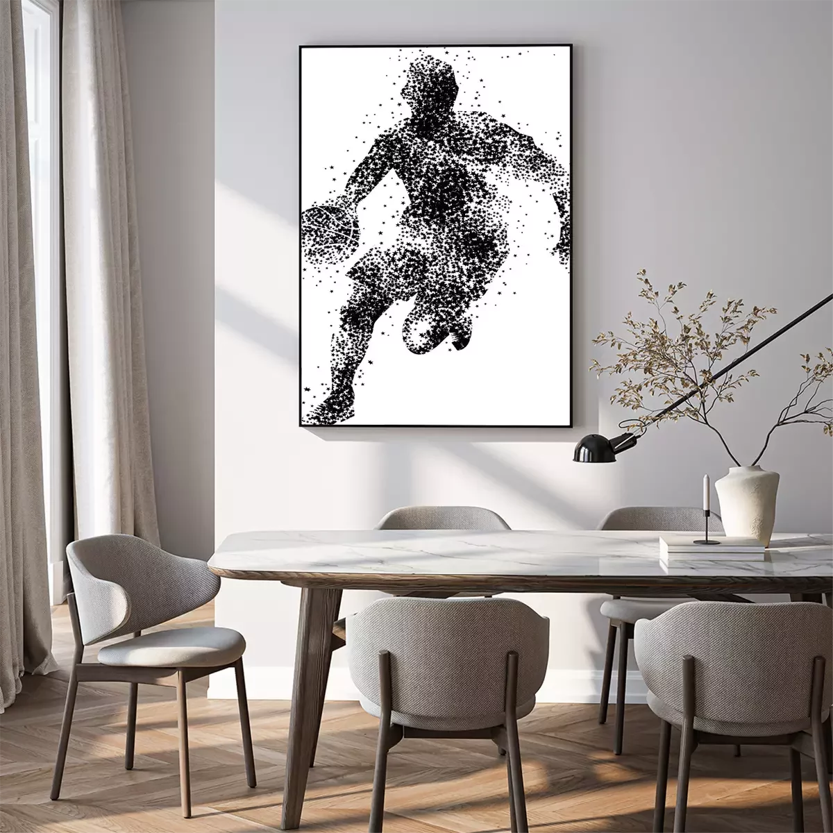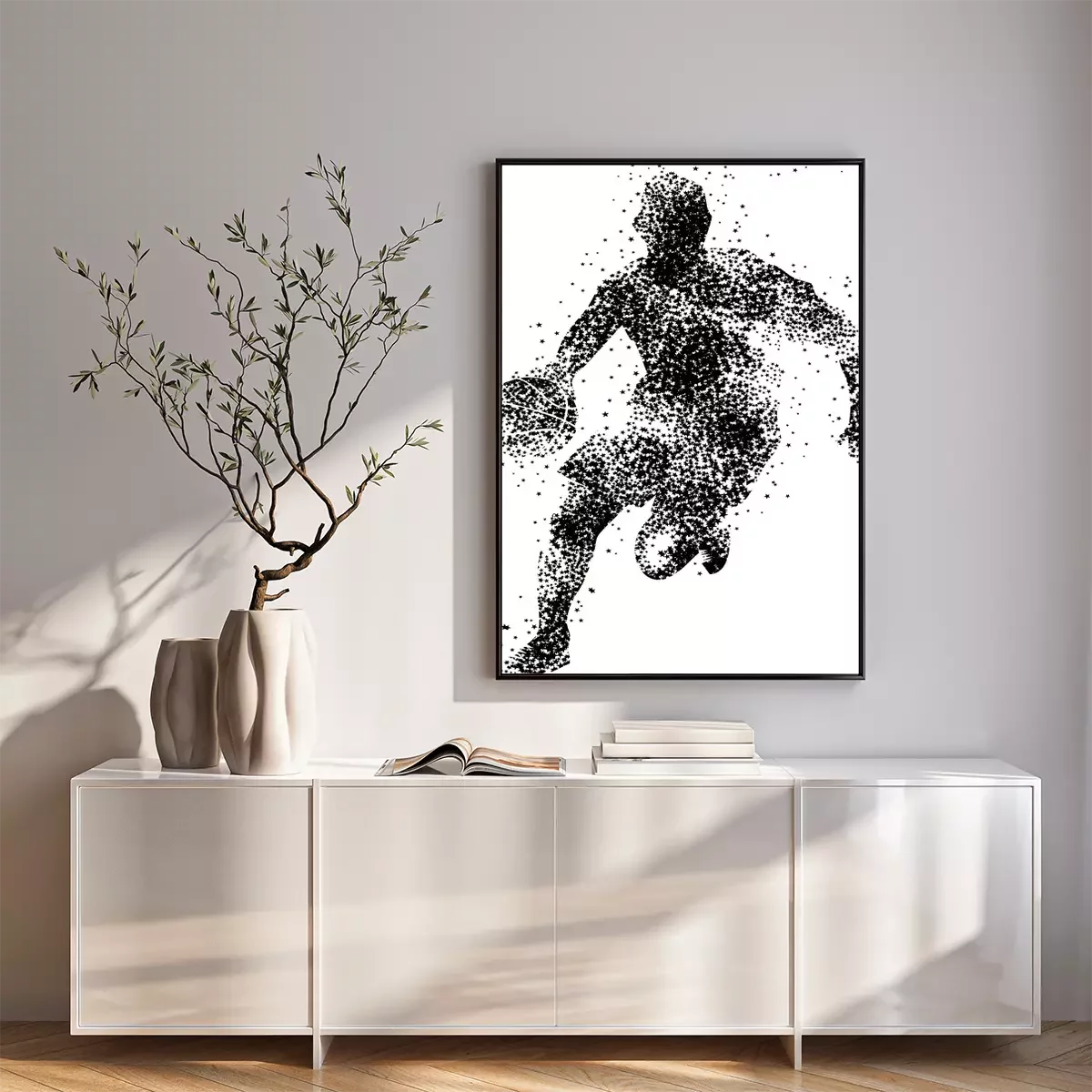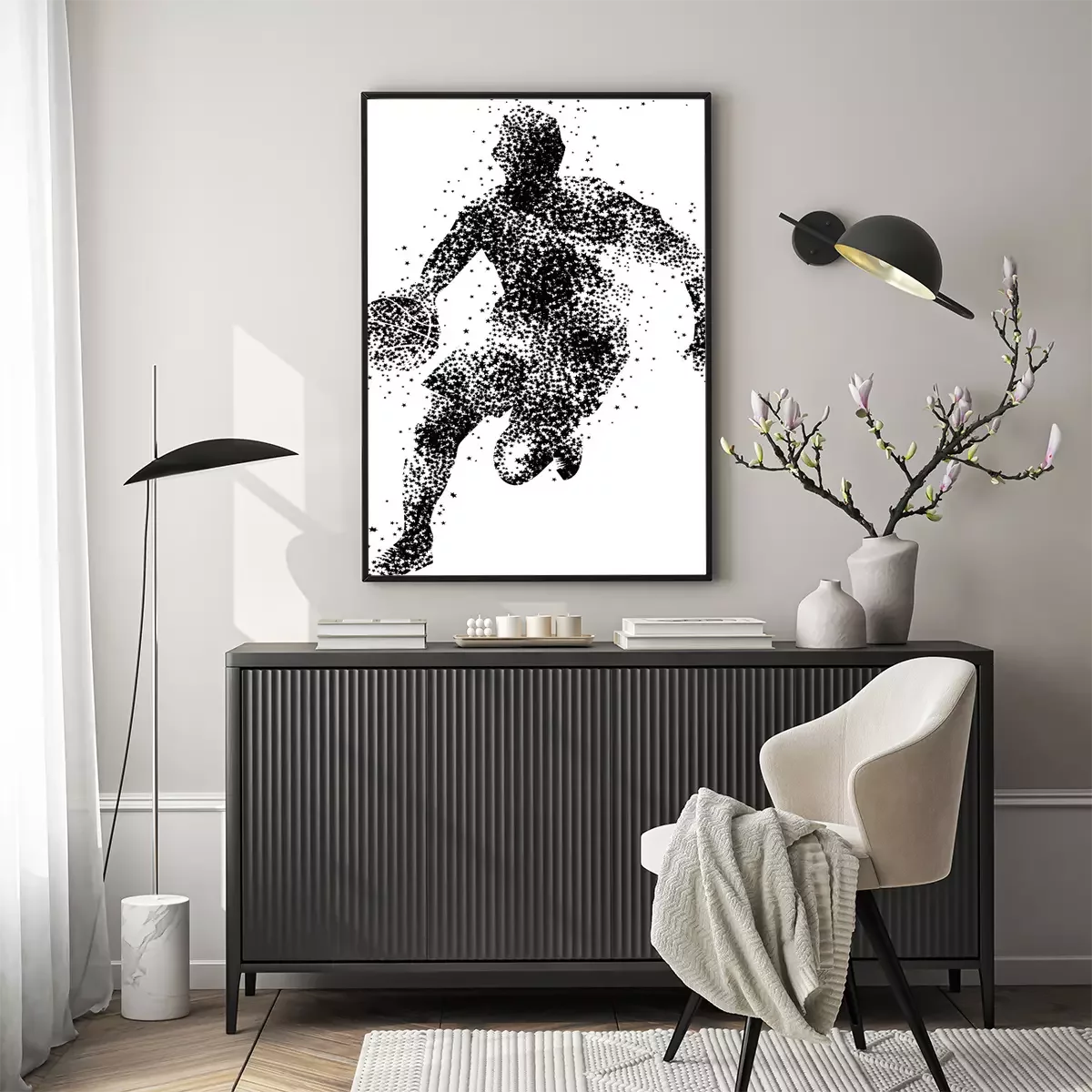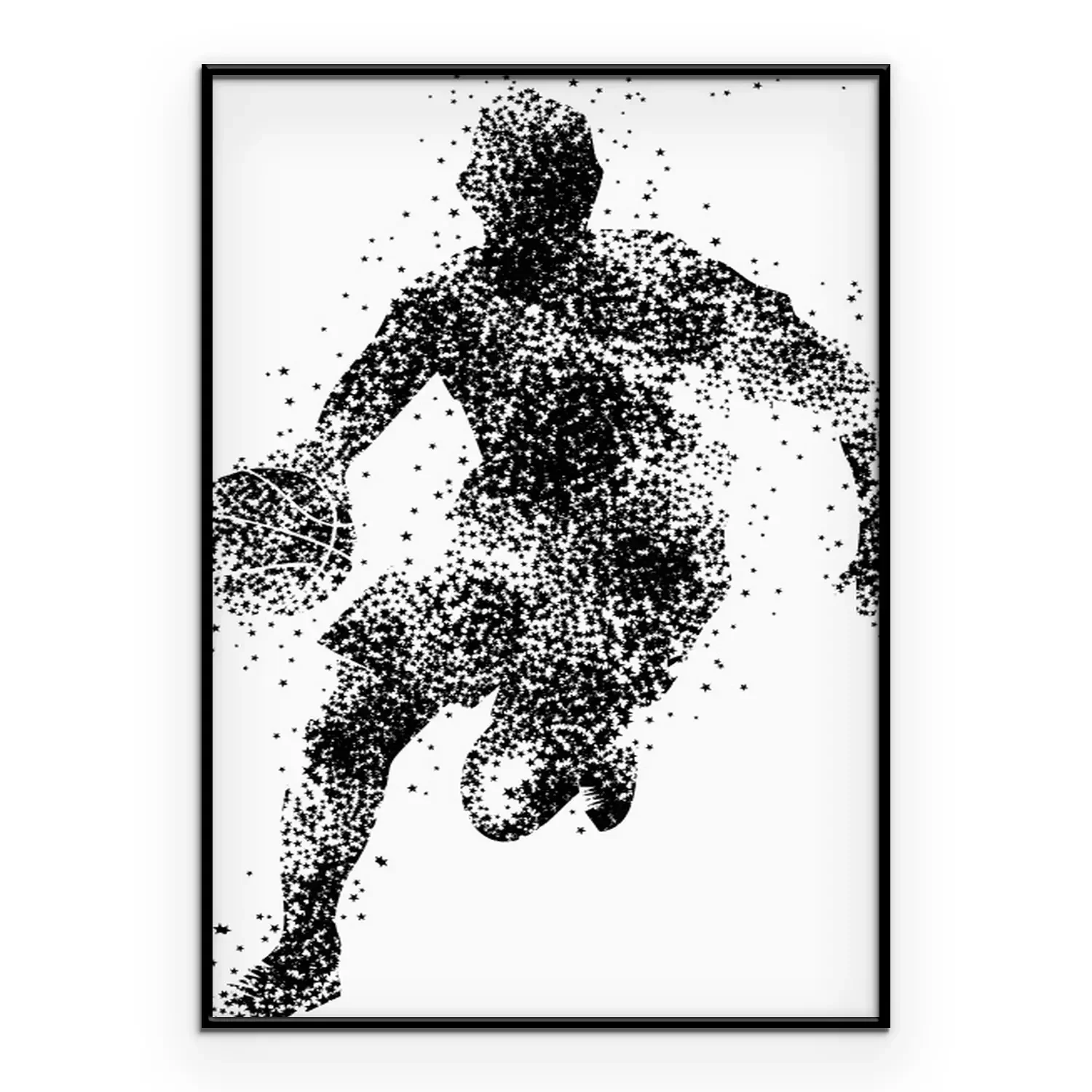 Poster: Silhouette eines Basketballspielers aus schwarzen Punkten