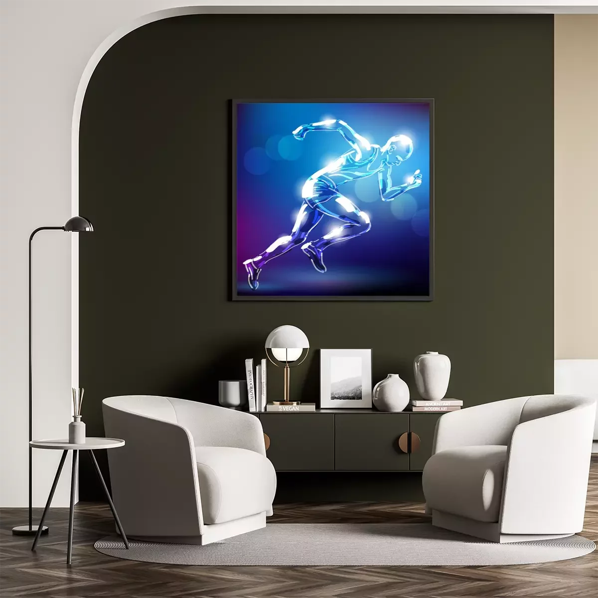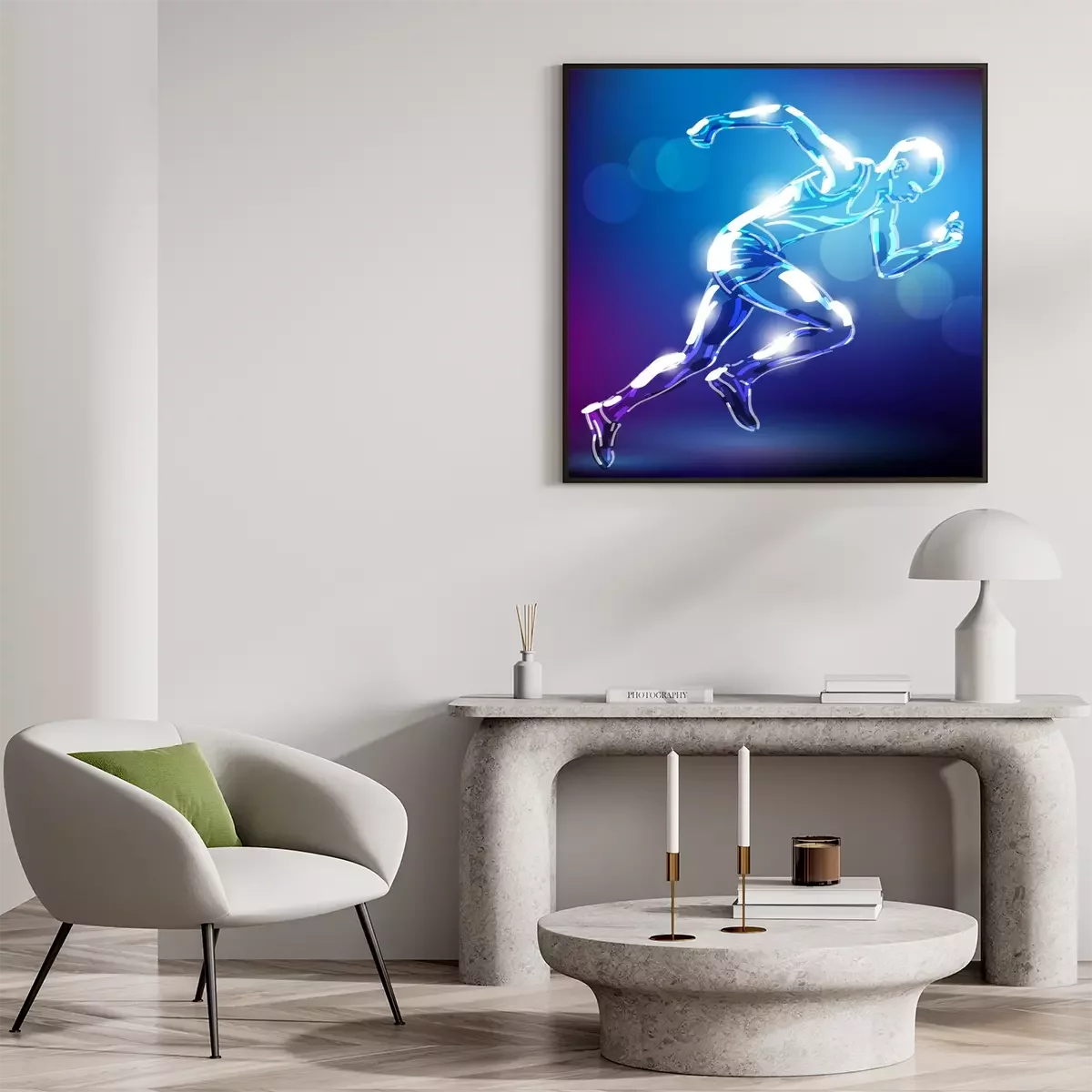 Poster: Silhouette eines Läufers auf blauem Hintergrund