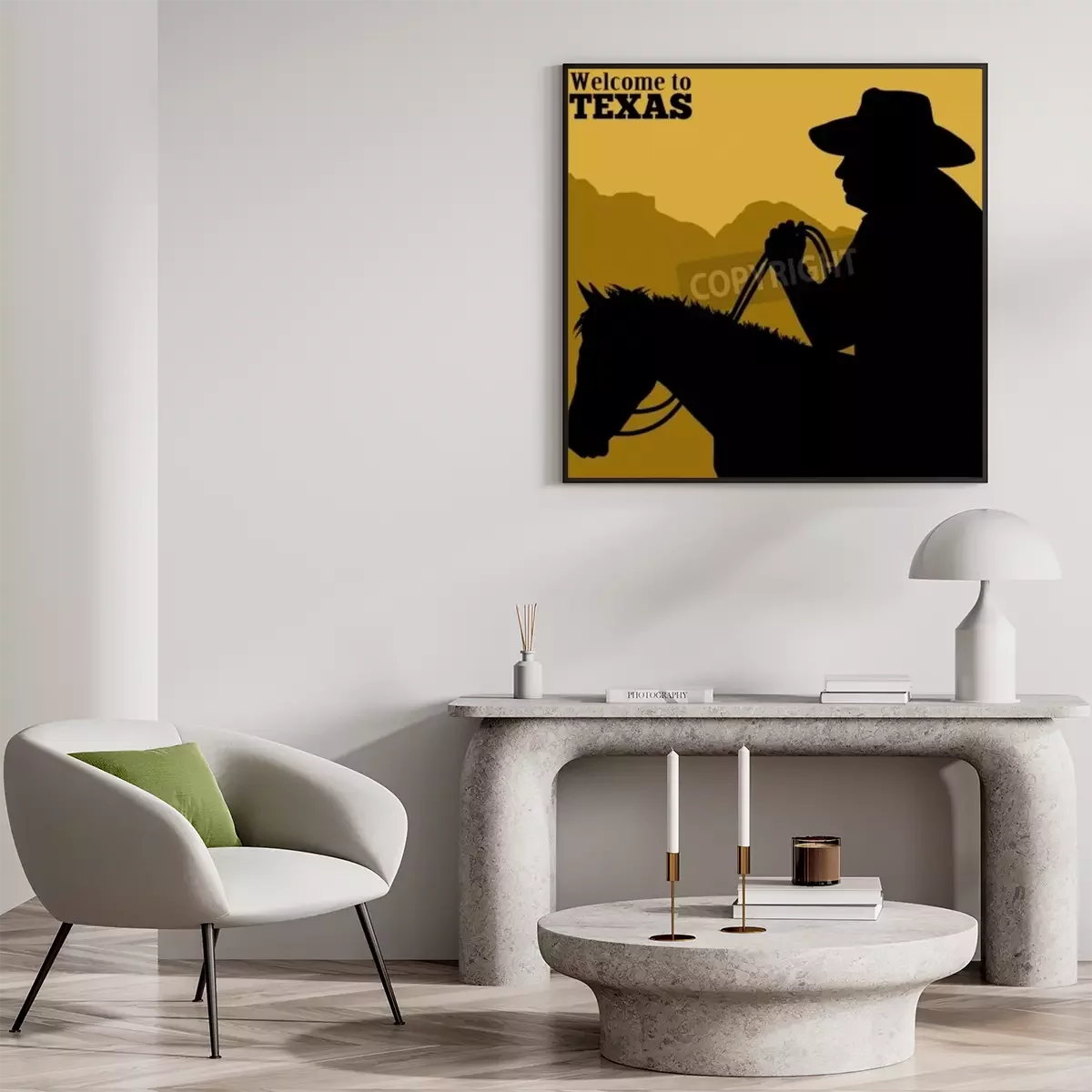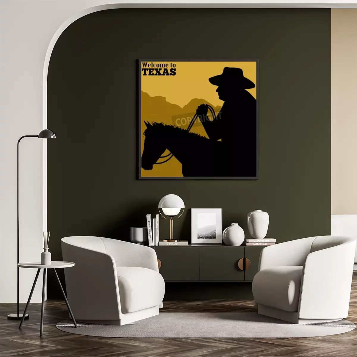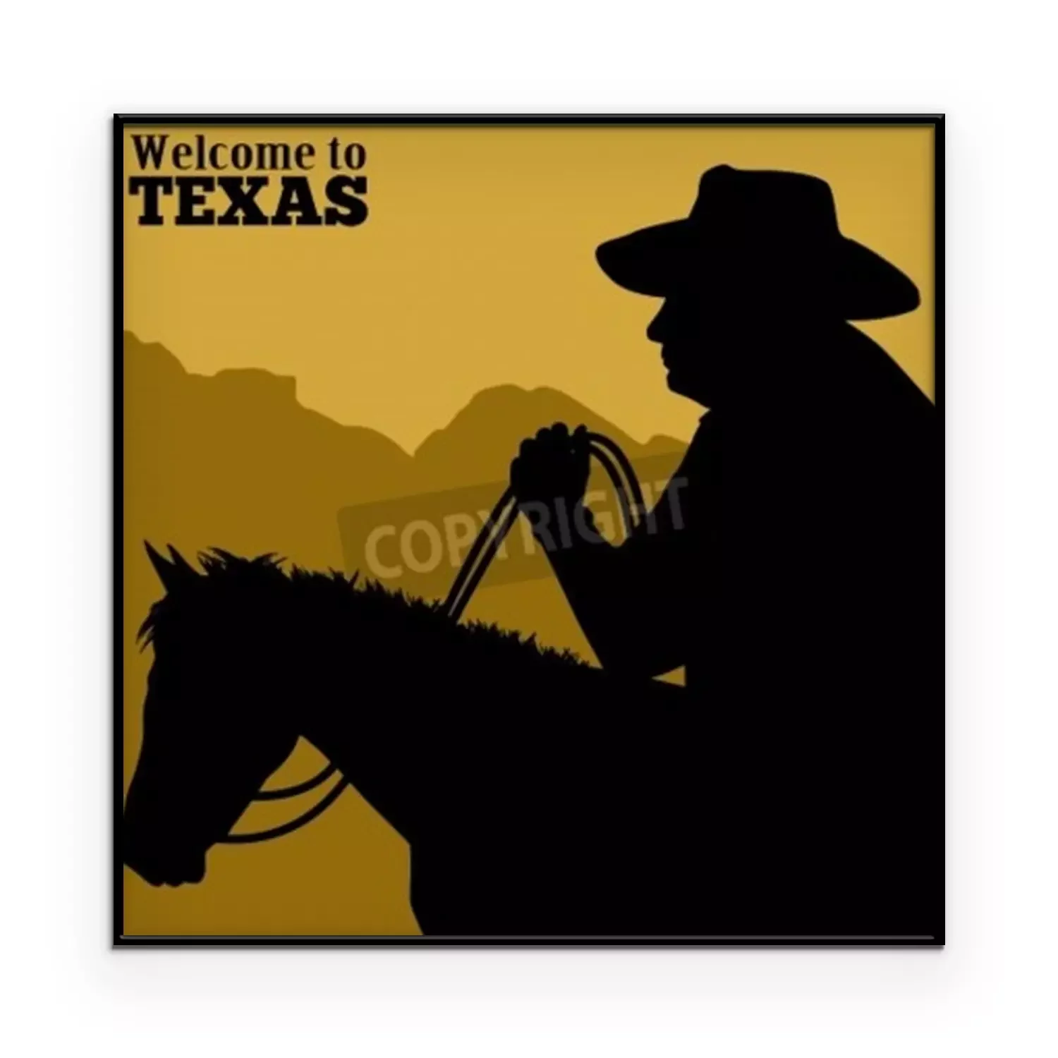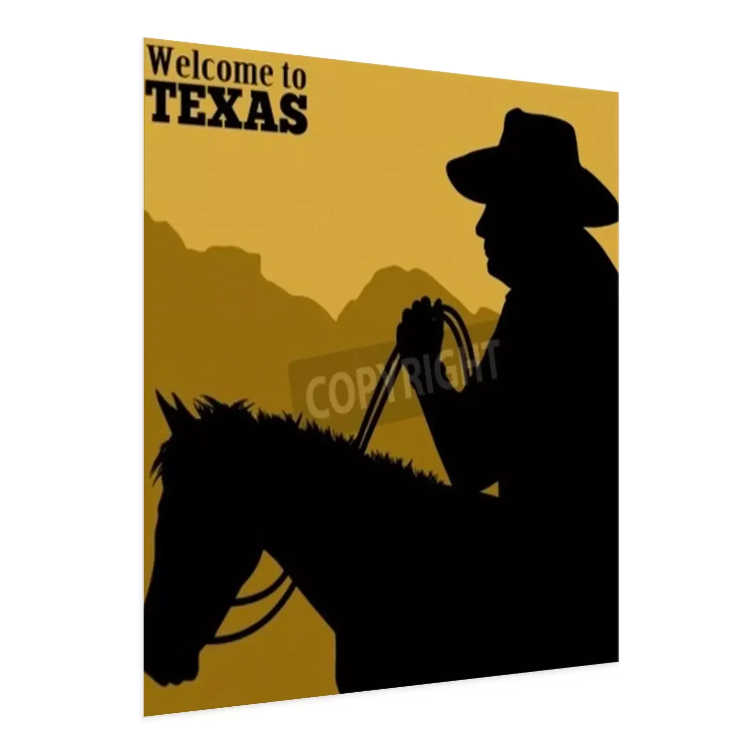 Poster: Silhouette eines Pferdes und eines Cowboys