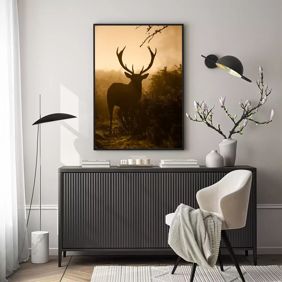 Poster: Silhouette eines wilden Tieres auf dem Brunftplatz