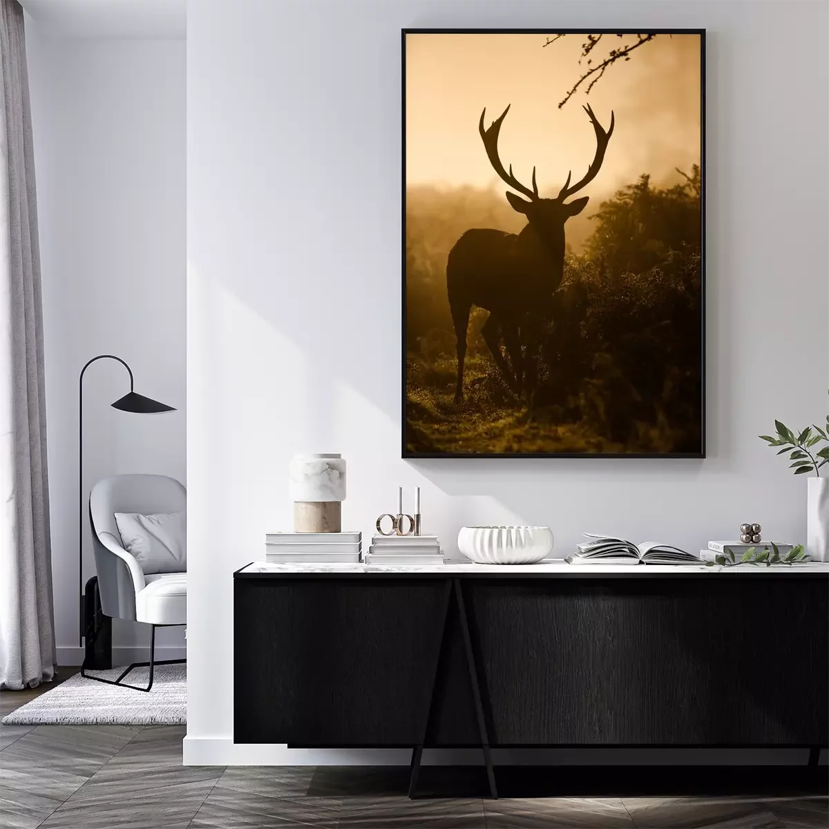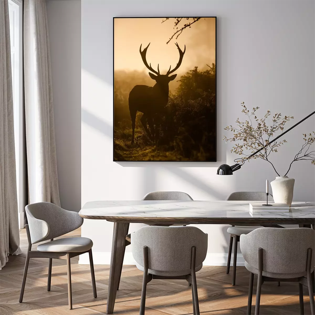 Poster Silhouette eines wilden Tieres auf dem Brunftplatz