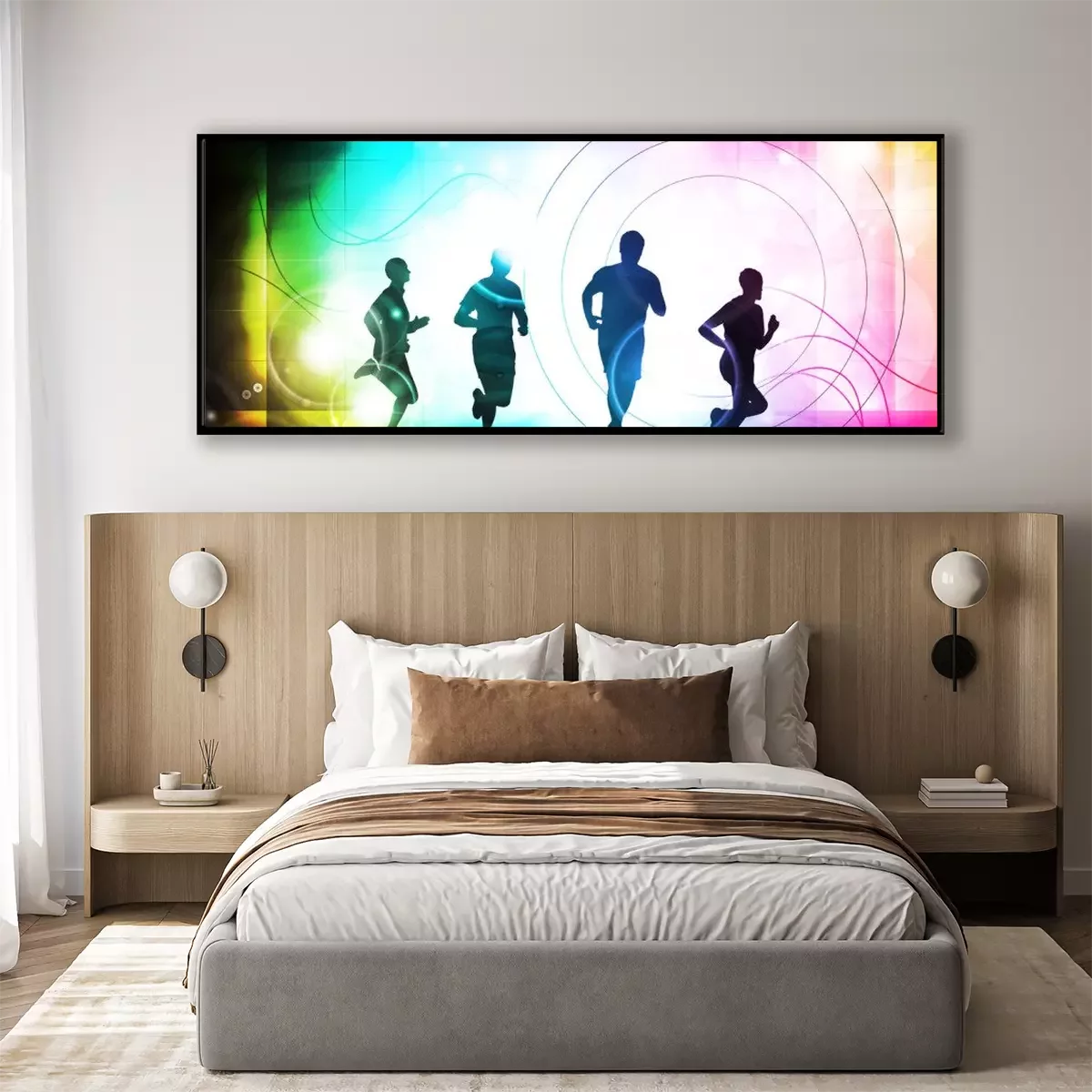 Poster: Silhouetten der Läufer auf einem farbigen Hintergrund