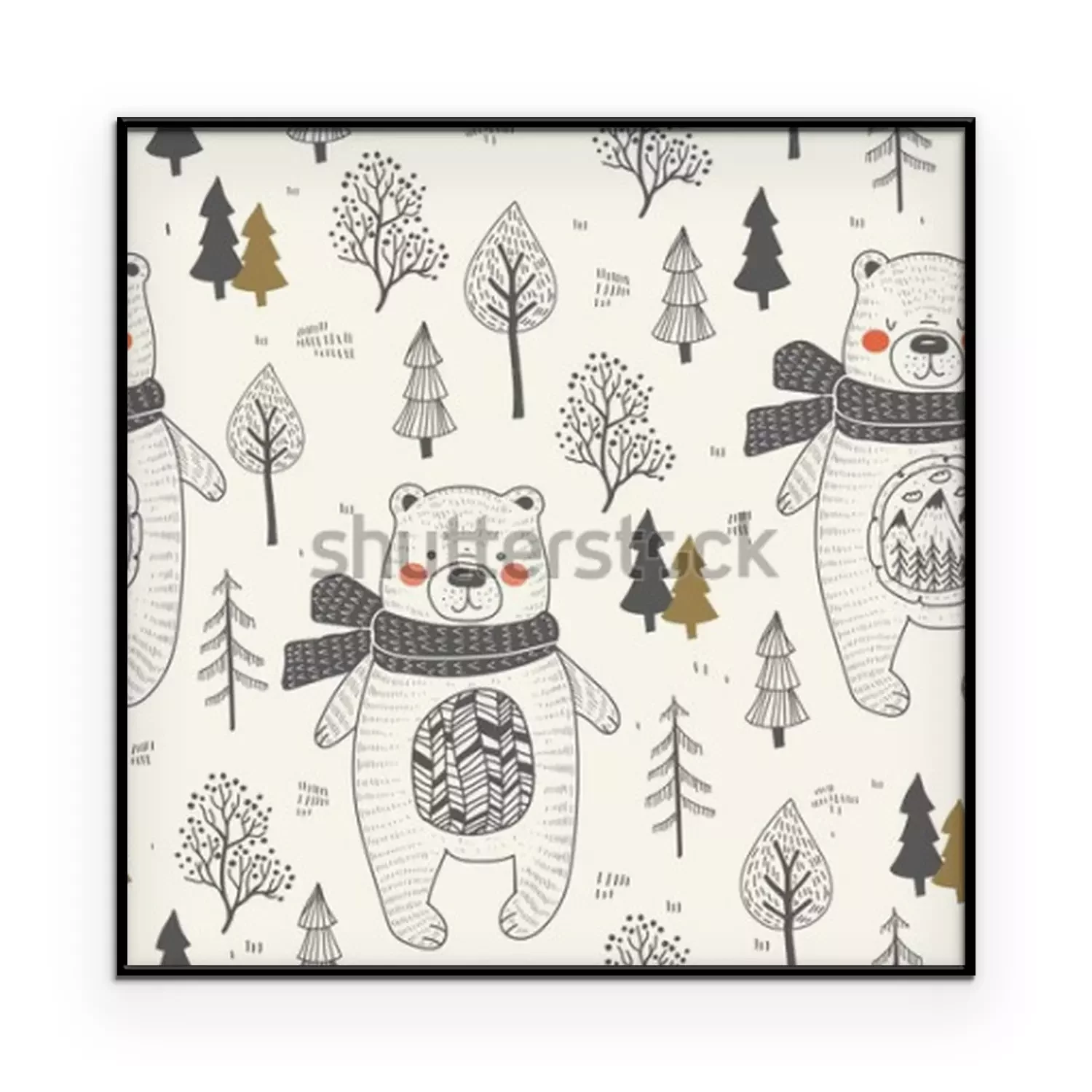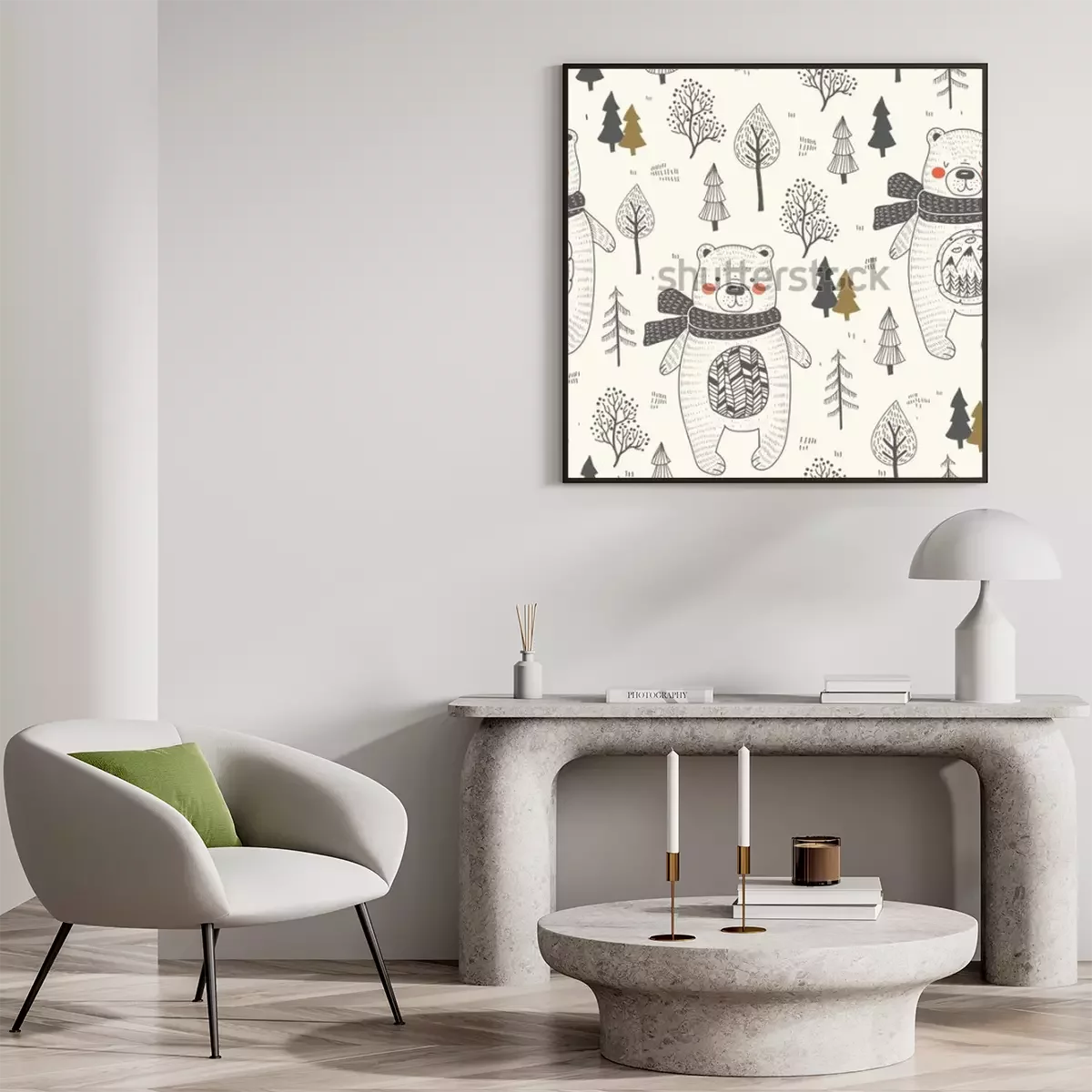 Poster: Skandinavische Grafik Bären und ein Weihnachtsbaum