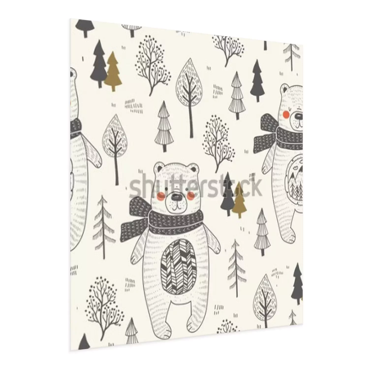 Poster Skandinavische Grafik Bären und ein Weihnachtsbaum