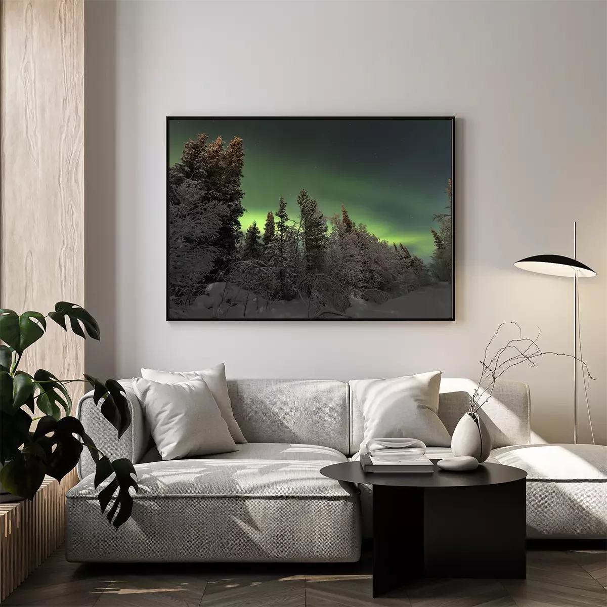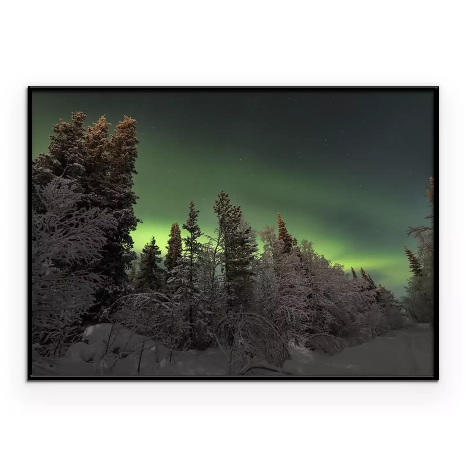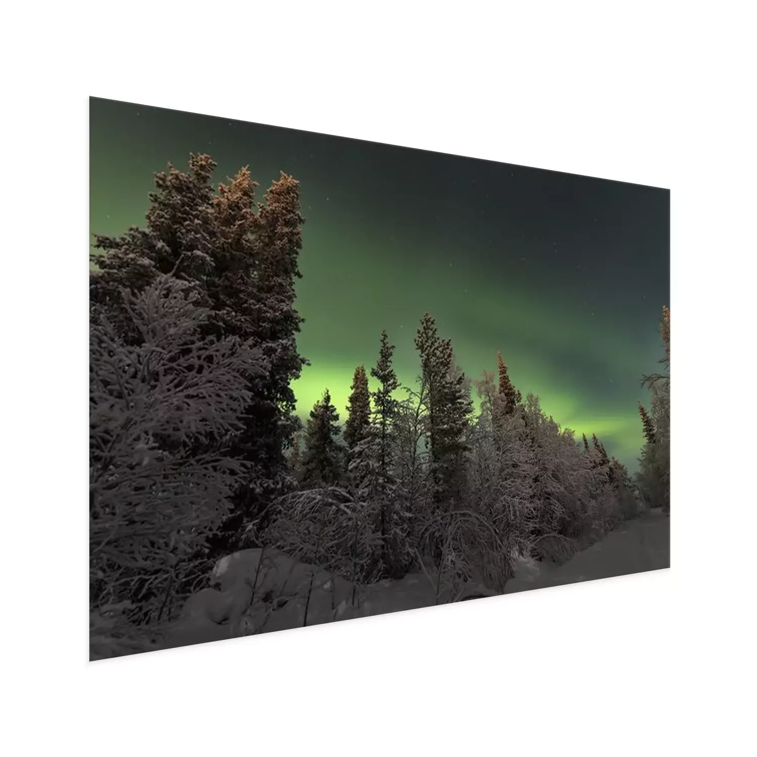 Poster: Skandinavischer Wald mit Blick auf Polarlicht