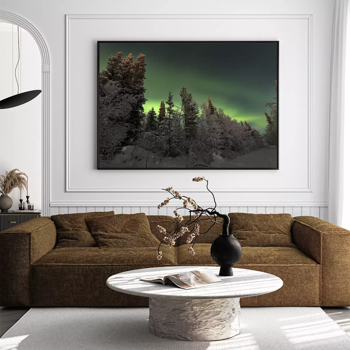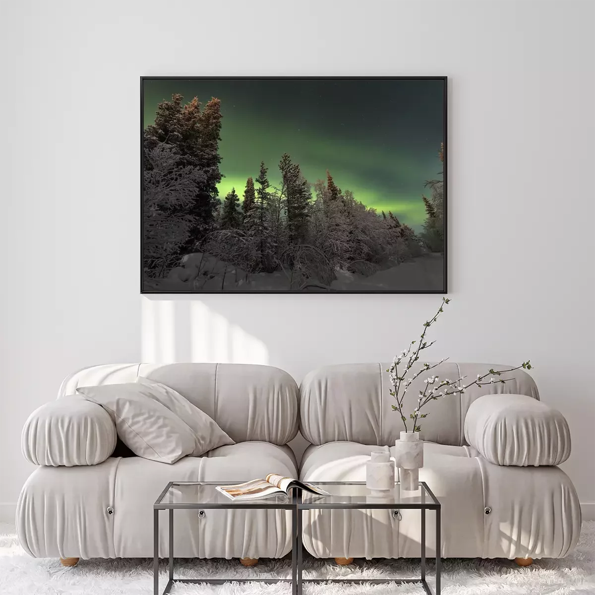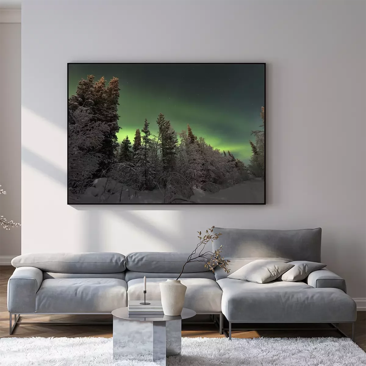 Poster: Skandinavischer Wald mit Blick auf Polarlicht