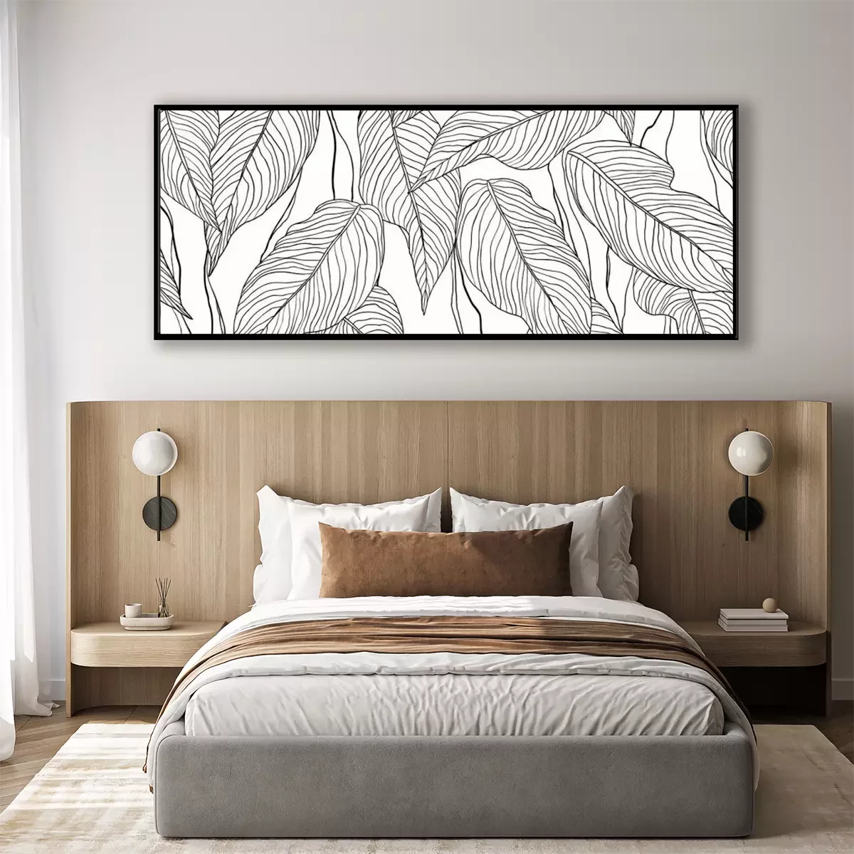 Schwarz-weiße Zeichnung mit Blättern einer tropischen Pflanze